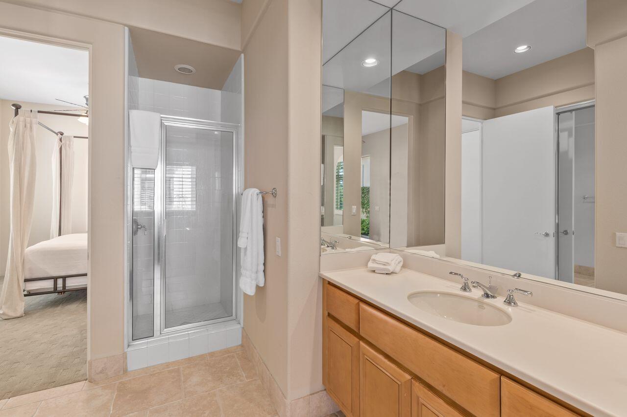 AVAILABLE May 25' through February 26'-Popular Encanto II Floor Plan at Rancho La Quinta Country Club has been recently refreshed and is ready for seasonal occupancy. This private golf course home enjoys long fairway, lake and mountain views. Totaling 3 bedrooms and 3 and 1/2 baths, the spacious interior of the property has 2 bedrooms each with their own bathroom plus a powder room. The detached casita offers another bedroom, bathroom and a living area with a pull-out sofa. The property is tastefully furnished with high end furnishings and has the best of modern conveniences including a new 75'' smart tv in the great room, sonos sound system, high speed internet and premium cable, fully stocked kitchen and outdoor entertaining area with pool/spa and built-in bbq. Centrally located in La Quinta, California and close to the Indian Wells Tennis Garden, Old Town La Quinta, Empire Polo Fields, Golf Courses, Hiking and more. This is truly a one of a kind vacation property. You won't want to leave! 30 day minimum rental required. Rates vary based on time of year and length of stay, advertised rate is for 'shoulder season.' ***NOTE- backyard has been fully remodeled as shown in photos***Interested in this Listing?