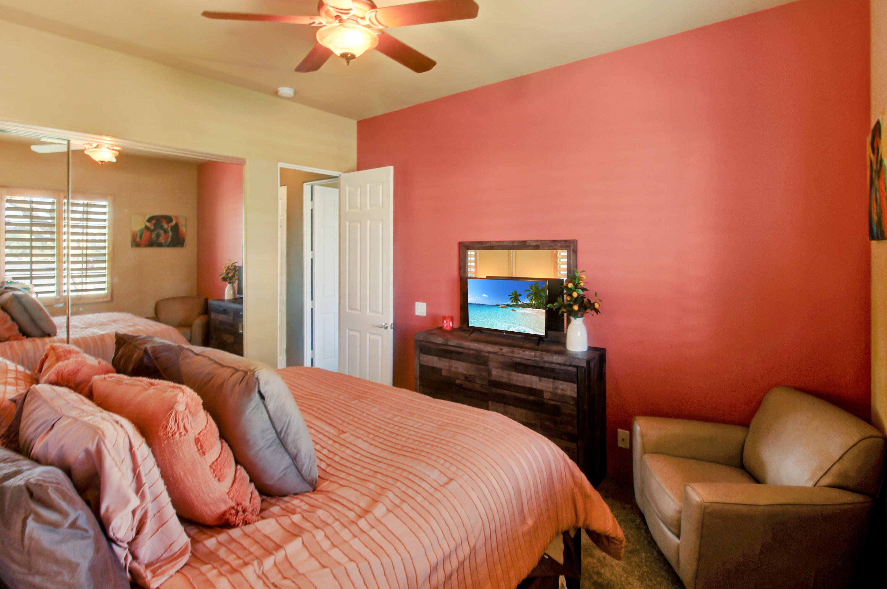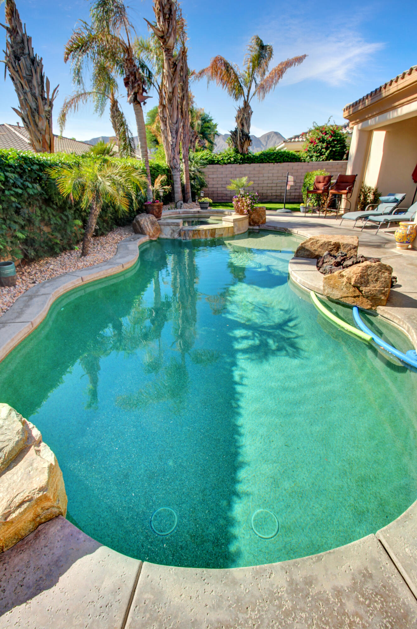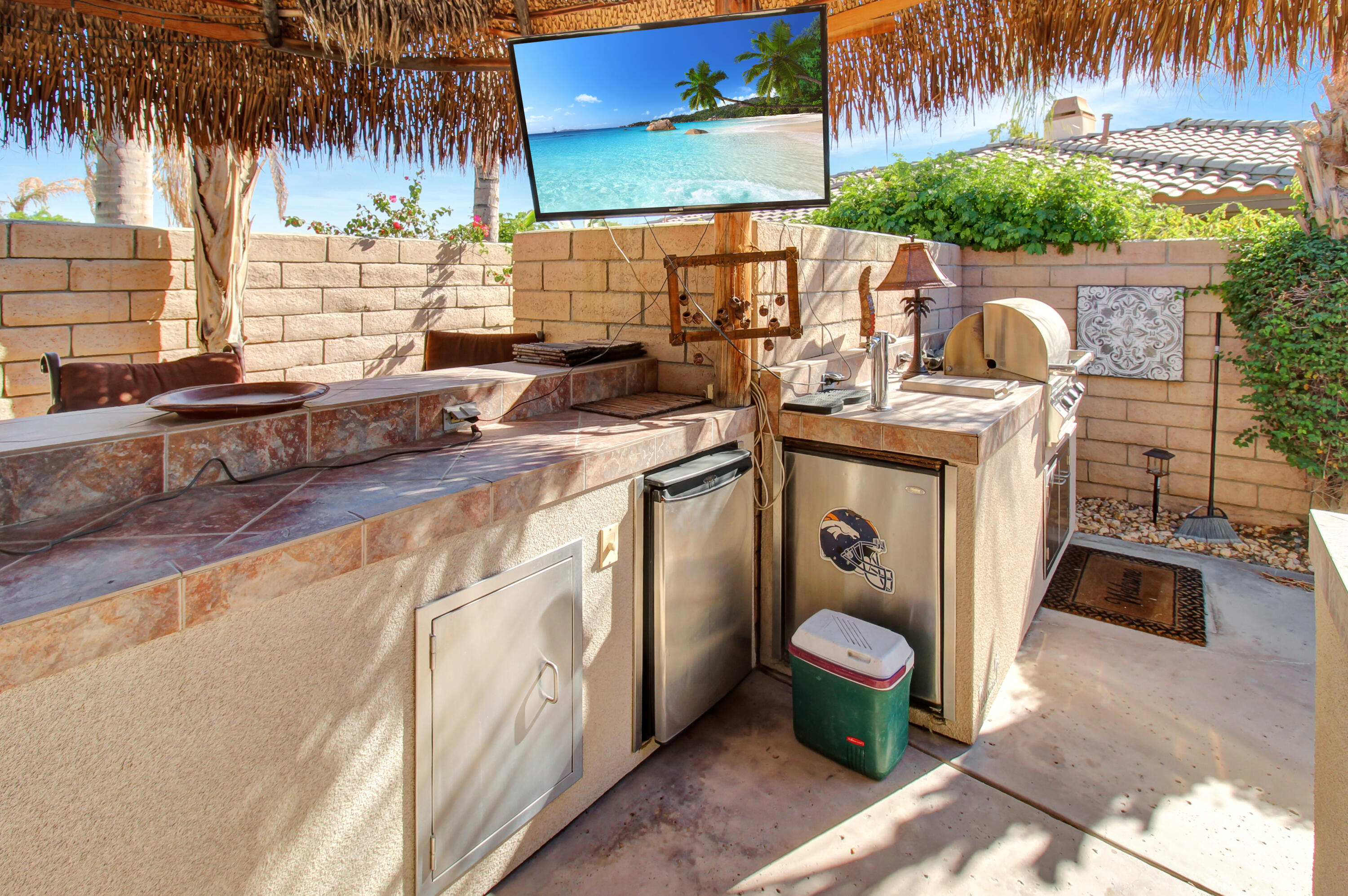 Home is Available this May through end of October for reduced rate of $4500. Not Available November, 2025 or January through end of April 2026. Let this Stunning Seasonal Rental become your Private Desert Oasis in the Prestigious Renaissance Gated Community. Privacy, Security and Serenity make this home a Rare Beauty. Light filled Open Concept Design leads perfectly to the Seamless Indoor-Outdoor living spaces. Interior luxury meets the Outdoor Retreat complete with an Oversized Palapa that Seats 12 with TV, a Full Bar & 2 Refrigerators complete with a Natural Gas Barbeque. Relax in the Pool with Tanning Shelf and Spa reminiscent of a Tropical Resort. The Gourmet kitchen features an Island Prep Counter, a Walk-in Pantry, Double Ovens and a 5 burner Gas Cooktop. All Bedrooms have Smart TV's with Roku hookup. Everything you need for a Very Enjoyable Stay in our Beautiful Desert!Interested in this Listing?