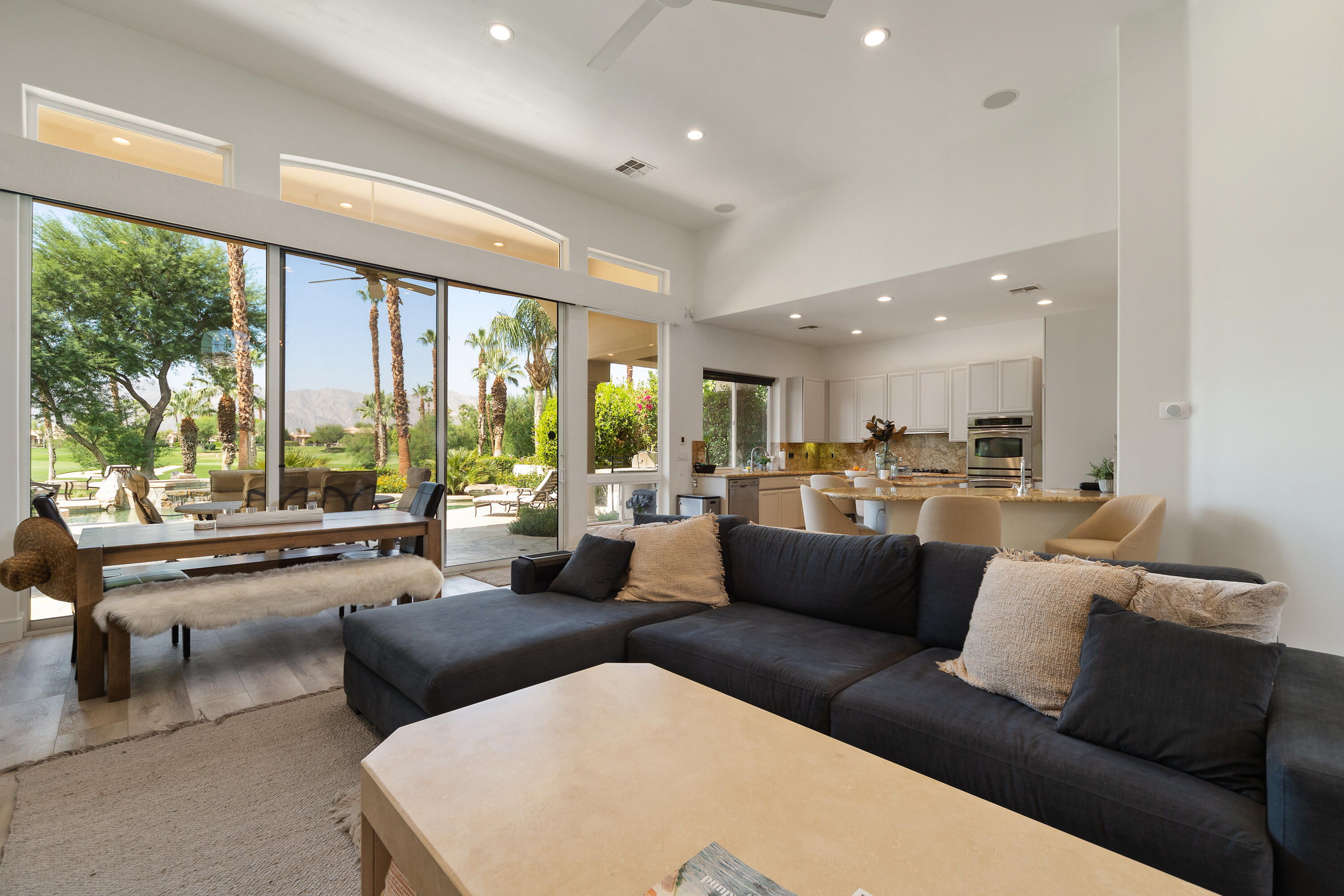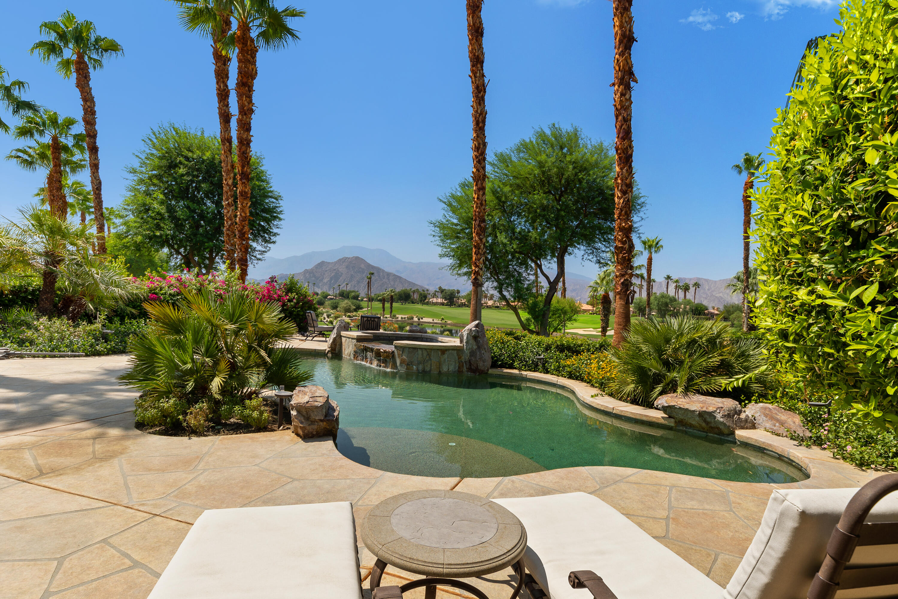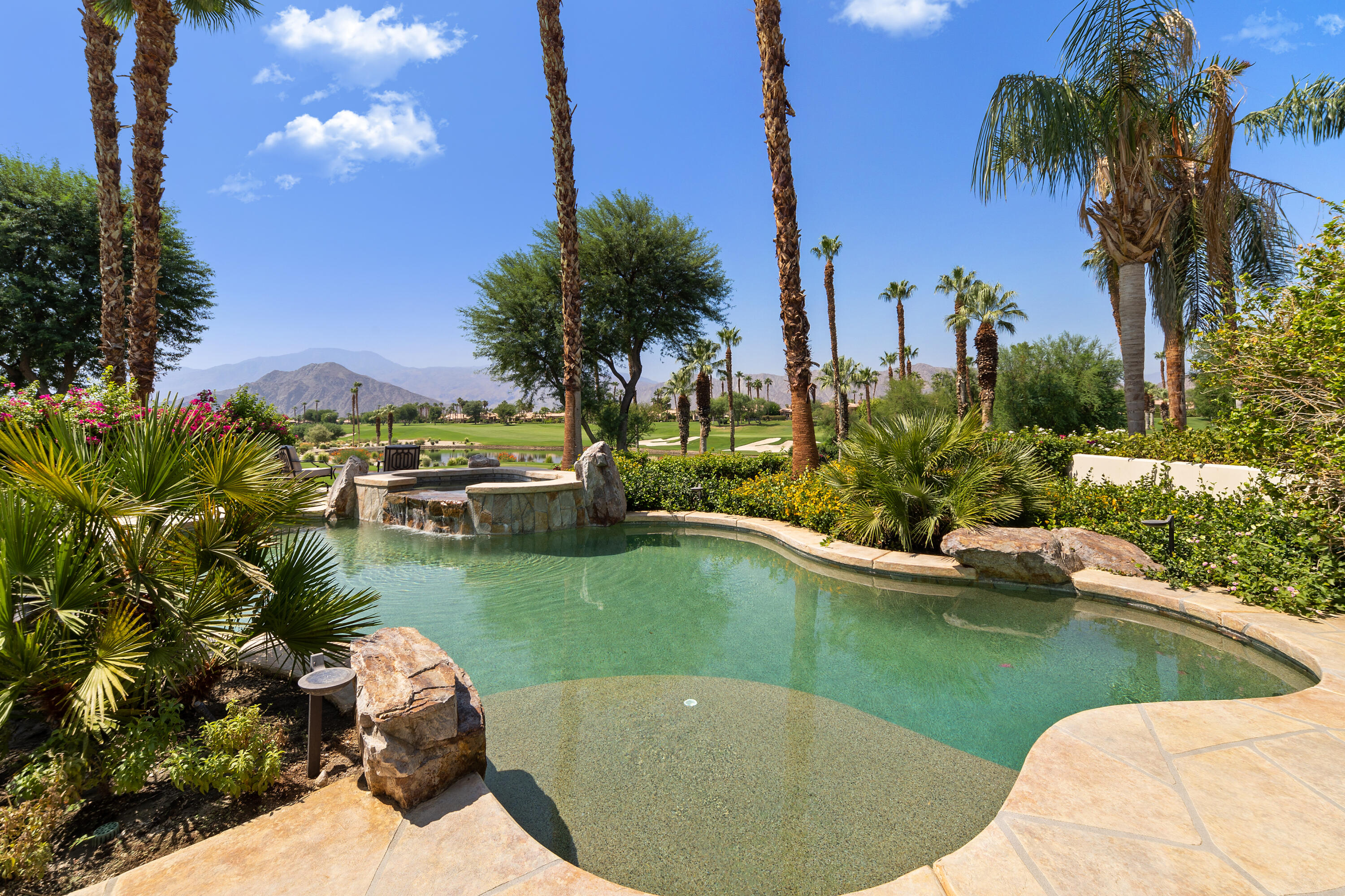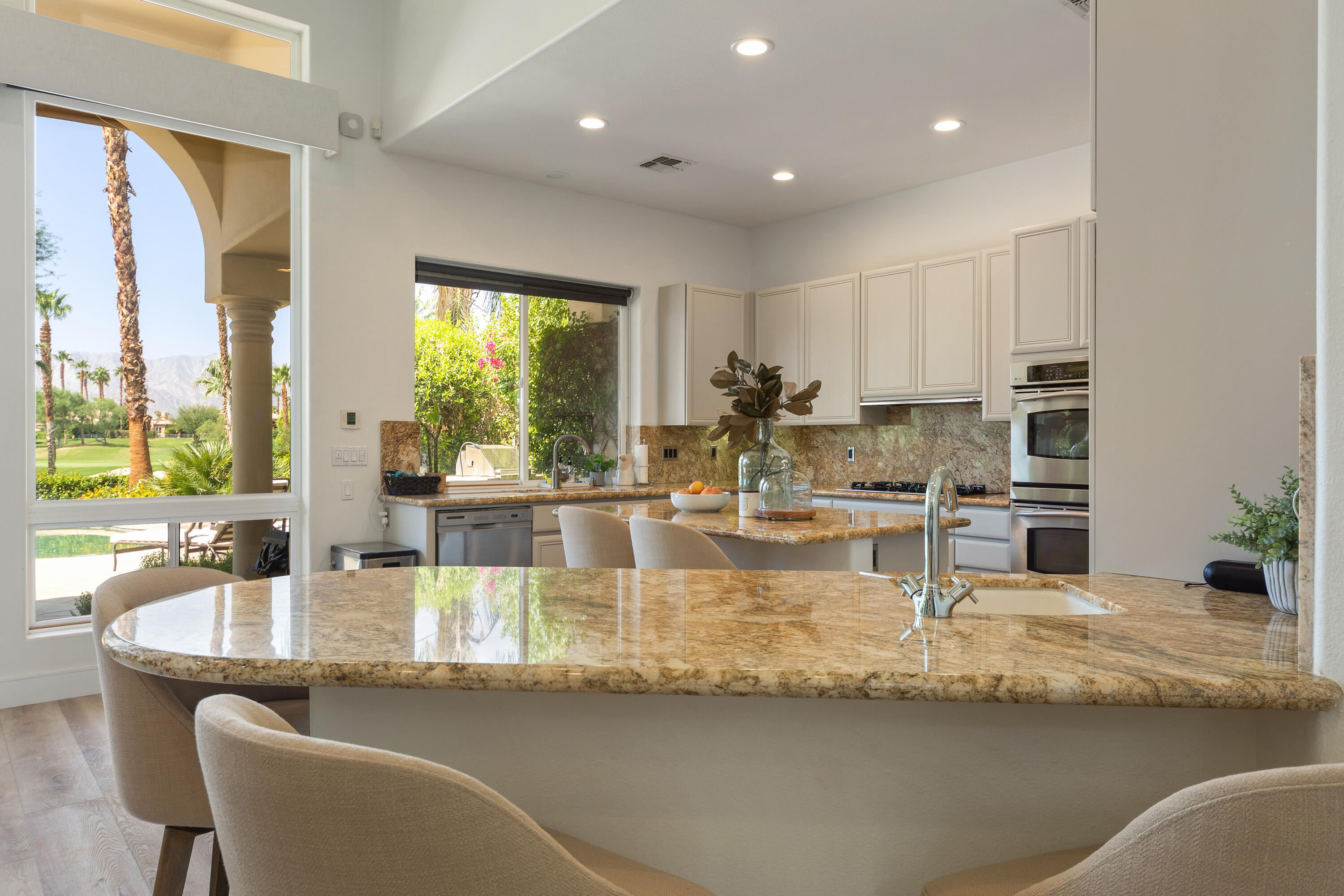 ***Next available May 1, 2025*** This beautifully updated estate offers the best of desert living with stunning South/West views over multiple fairways, a lake, and stream at exclusive Rancho La Quinta Country Club. The oversized lot includes a main home with 3 ensuite bedrooms and 3.5 baths. The third bedroom doubles as a media room with a pull-out sofa and oversized LoveSac bean bags. The primary suite and guest bedroom have king-sized beds. There is also a 'bunk room' featuring two sets of bunk beds. The open floor plan includes a great room and a fully equipped kitchen with island seating, blending indoor-outdoor living. The detached casita offers an additional bedroom, bathroom and living area. Outdoors, you'll find a lagoon-style pool, spa, fire pit, built-in barbecue, and stunning views of the Santa Rosa Mountains. Additional features include a putting green, bocce ball court. Recently updated with LVP flooring, fresh paint, new lighting, and furnishings, this 'beachy contemporary' home is offered turnkey furnished with a 30-day minimum. Rates may vary by season and length of stay.Interested in this Listing?