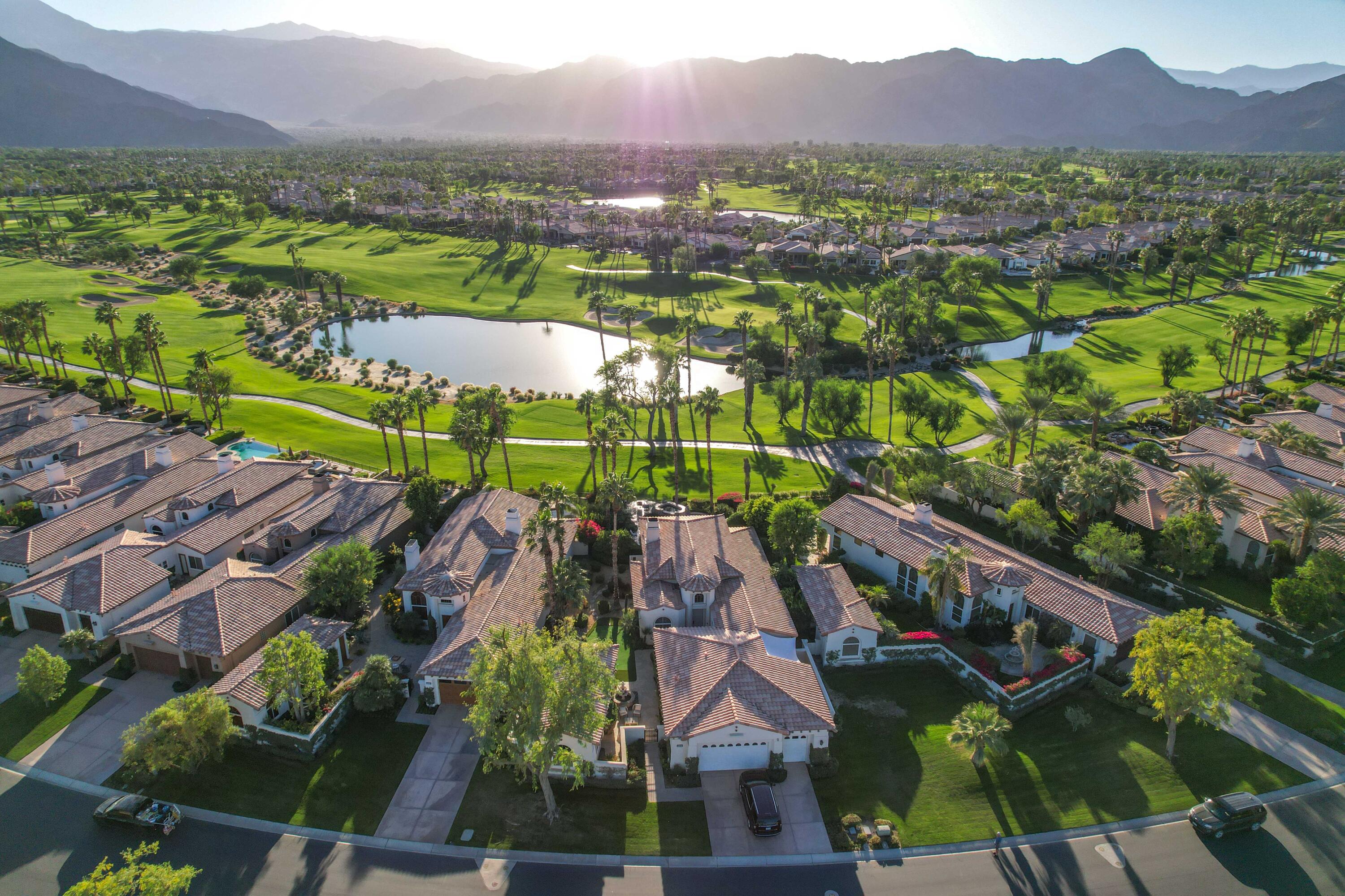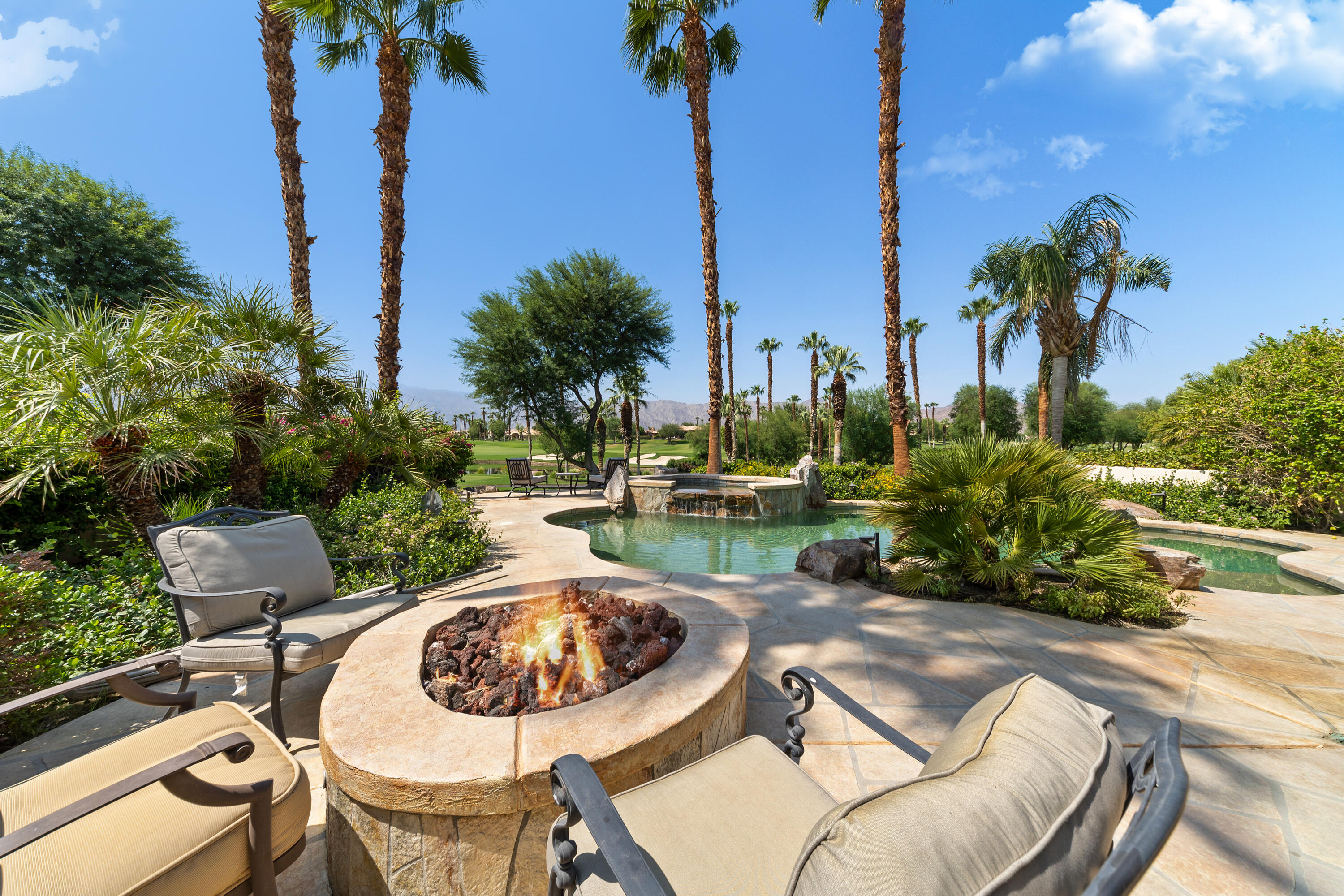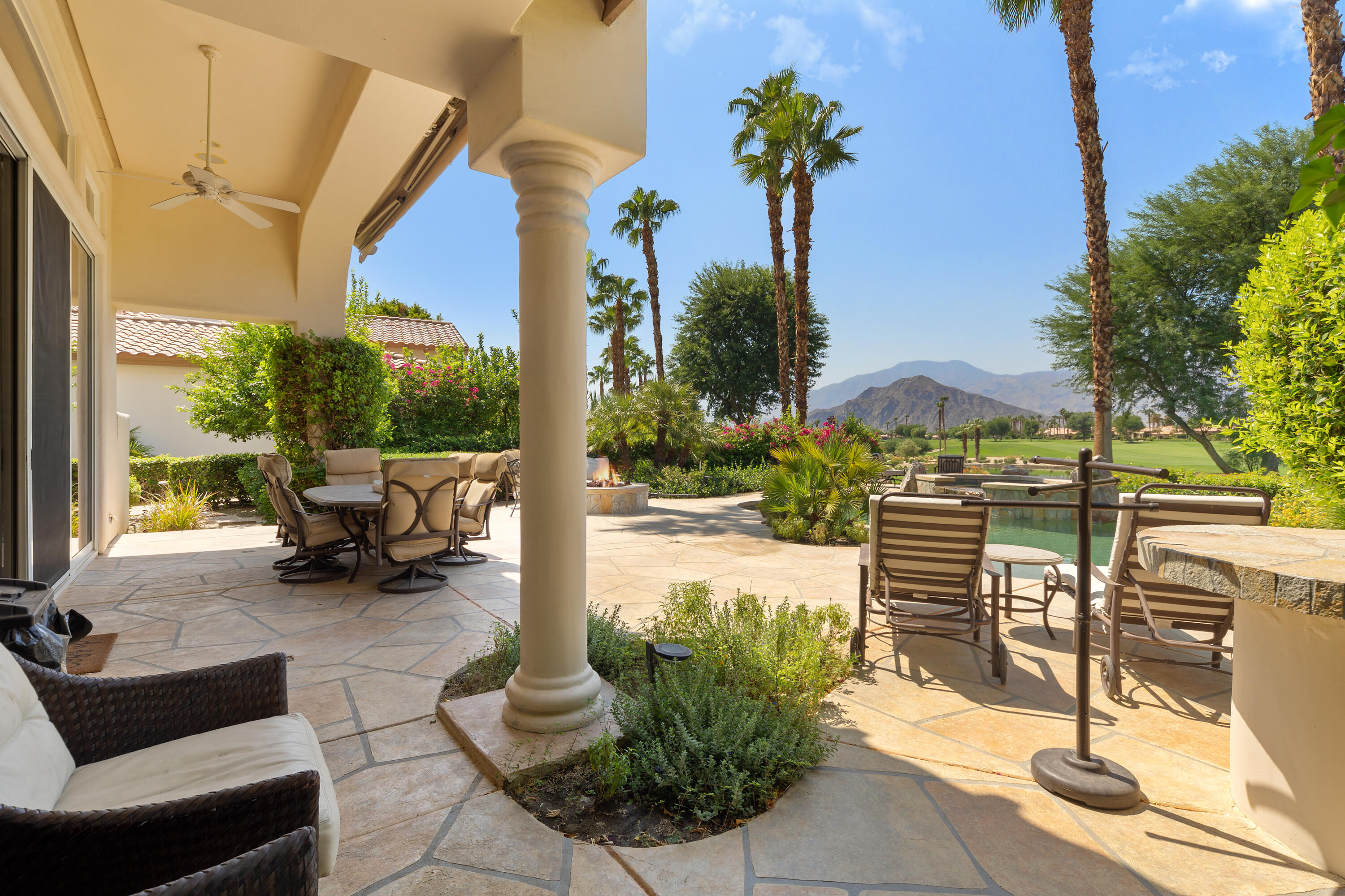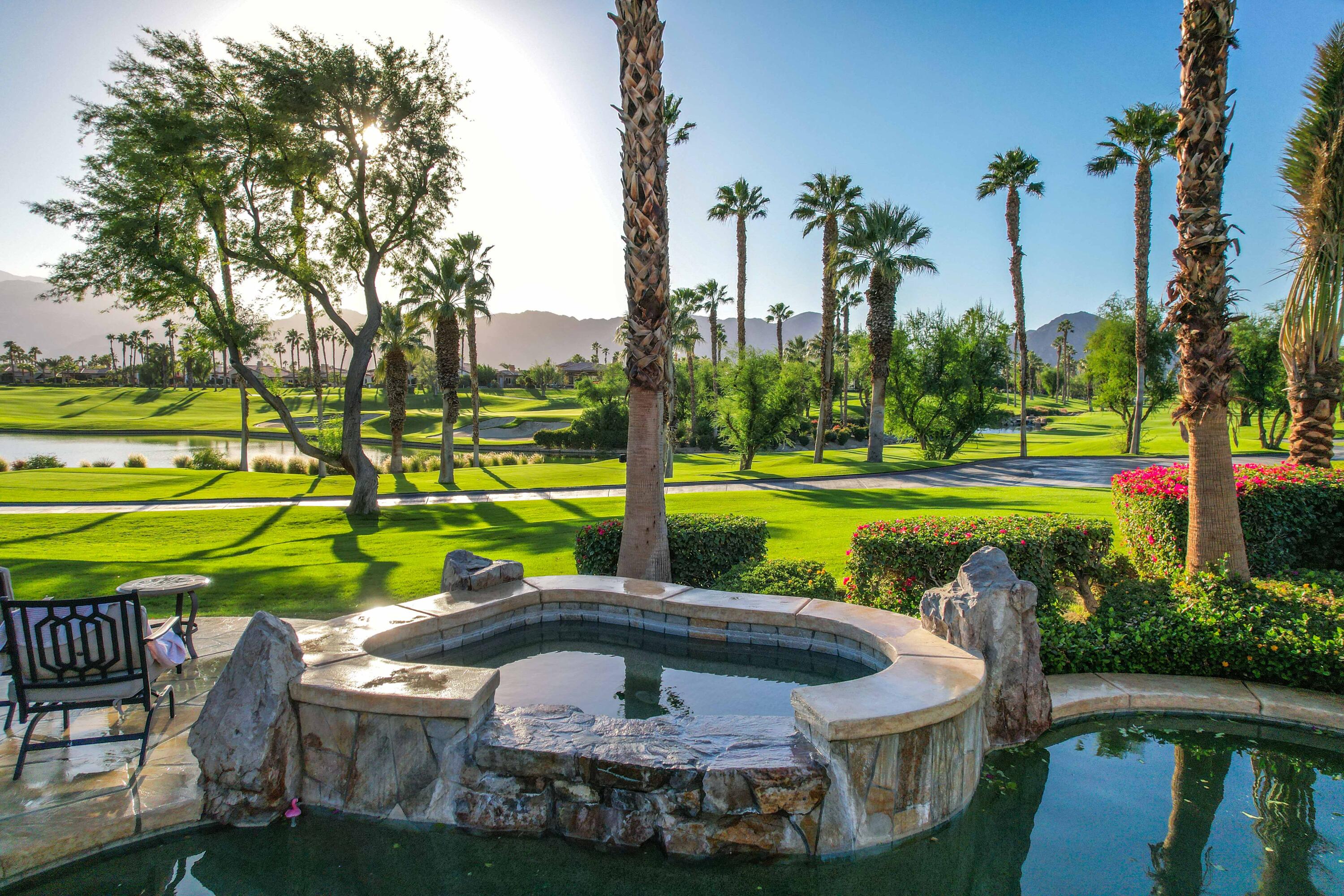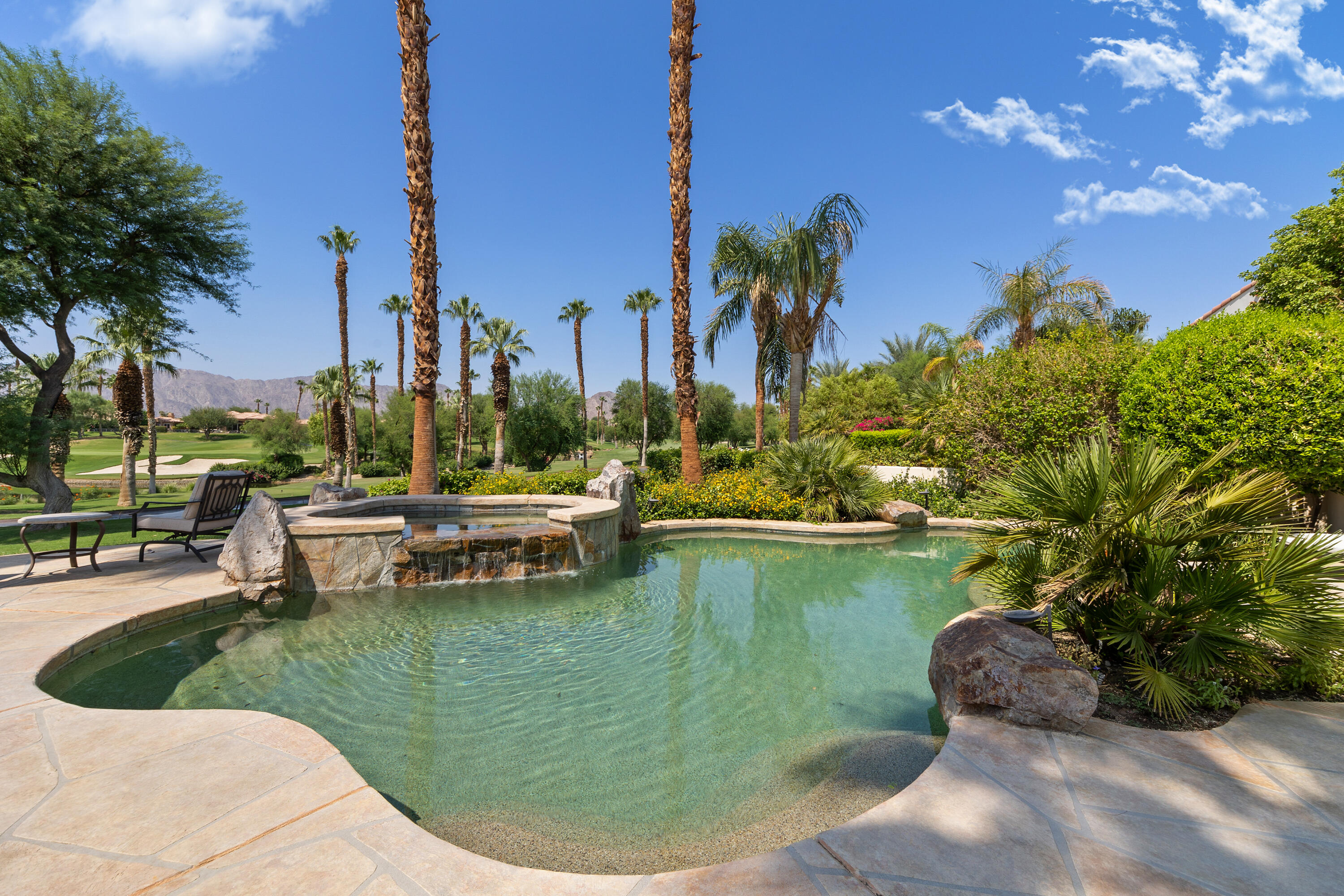 ***Next available May 1, 2025*** This beautifully updated estate offers the best of desert living with stunning South/West views over multiple fairways, a lake, and stream at exclusive Rancho La Quinta Country Club. The oversized lot includes a main home with 3 ensuite bedrooms and 3.5 baths. The third bedroom doubles as a media room with a pull-out sofa and oversized LoveSac bean bags. The primary suite and guest bedroom have king-sized beds. There is also a 'bunk room' featuring two sets of bunk beds. The open floor plan includes a great room and a fully equipped kitchen with island seating, blending indoor-outdoor living. The detached casita offers an additional bedroom, bathroom and living area. Outdoors, you'll find a lagoon-style pool, spa, fire pit, built-in barbecue, and stunning views of the Santa Rosa Mountains. Additional features include a putting green, bocce ball court. Recently updated with LVP flooring, fresh paint, new lighting, and furnishings, this 'beachy contemporary' home is offered turnkey furnished with a 30-day minimum. Rates may vary by season and length of stay.Interested in this Listing?