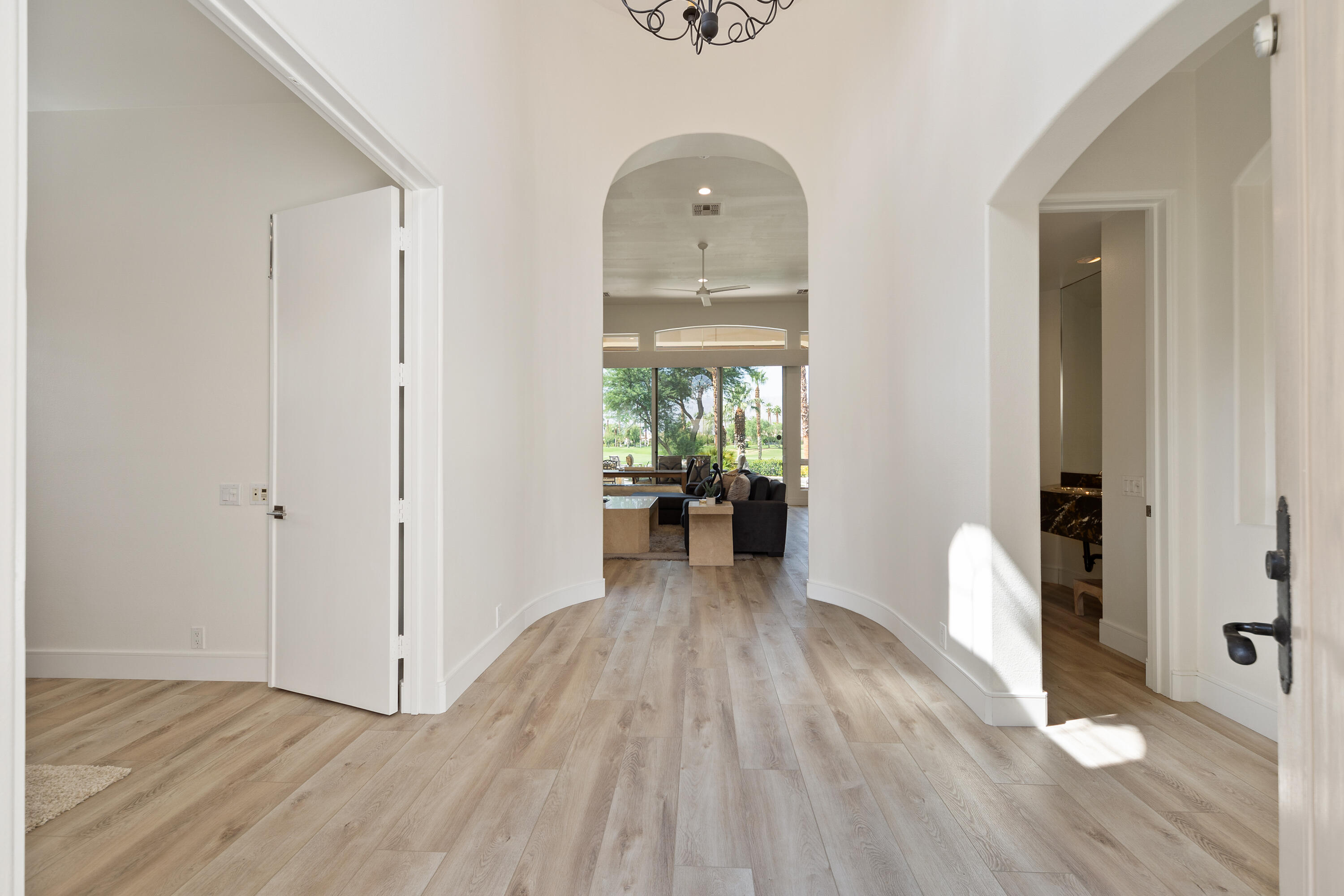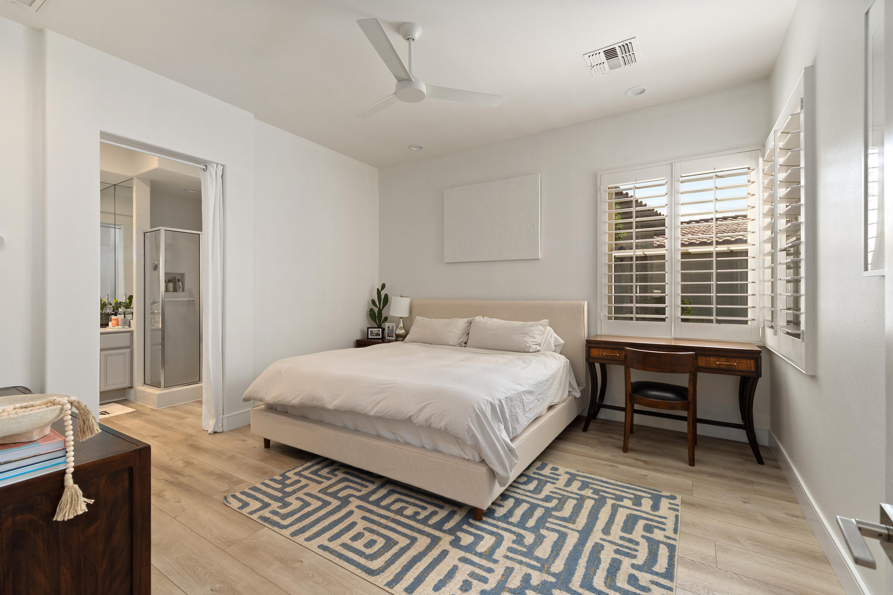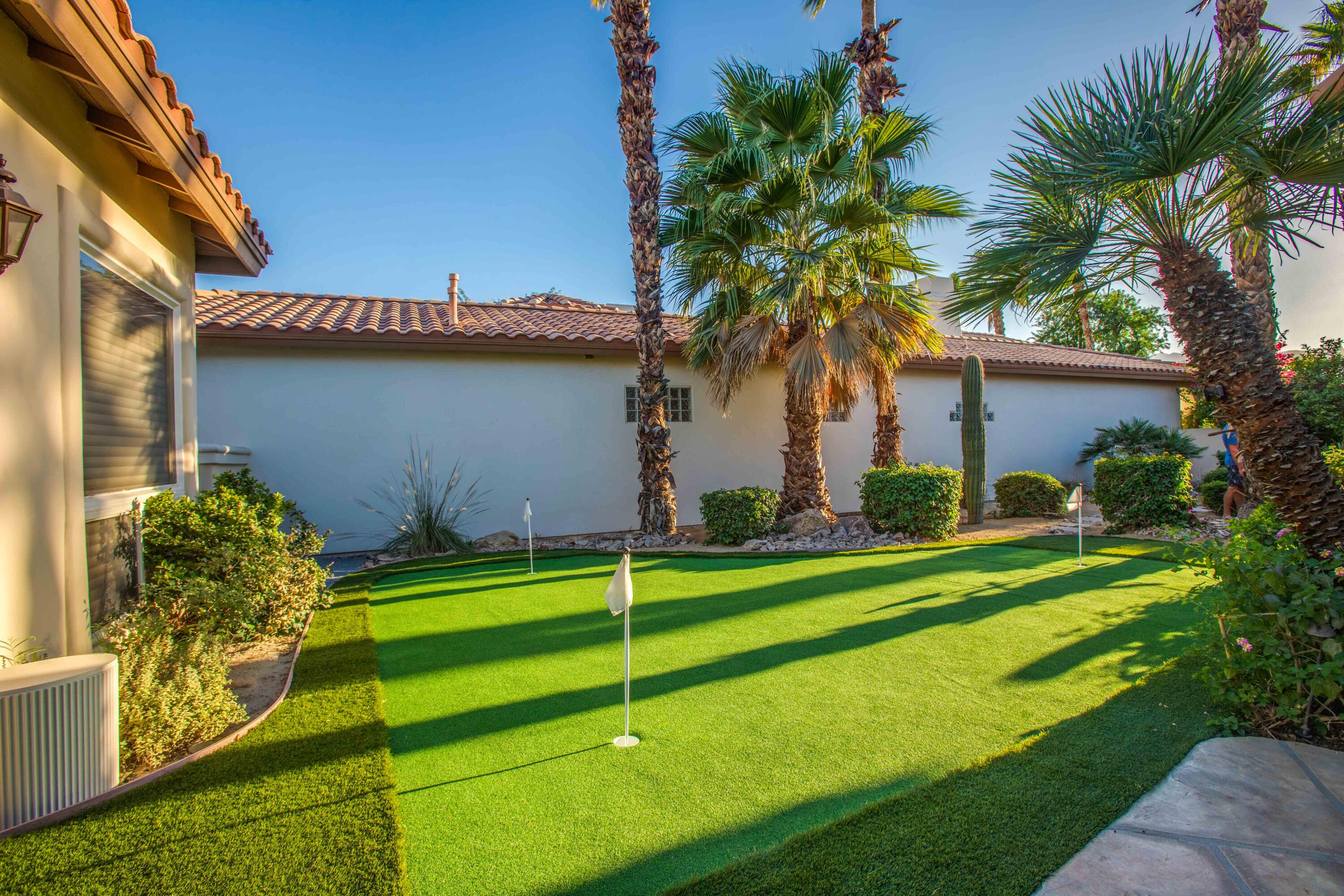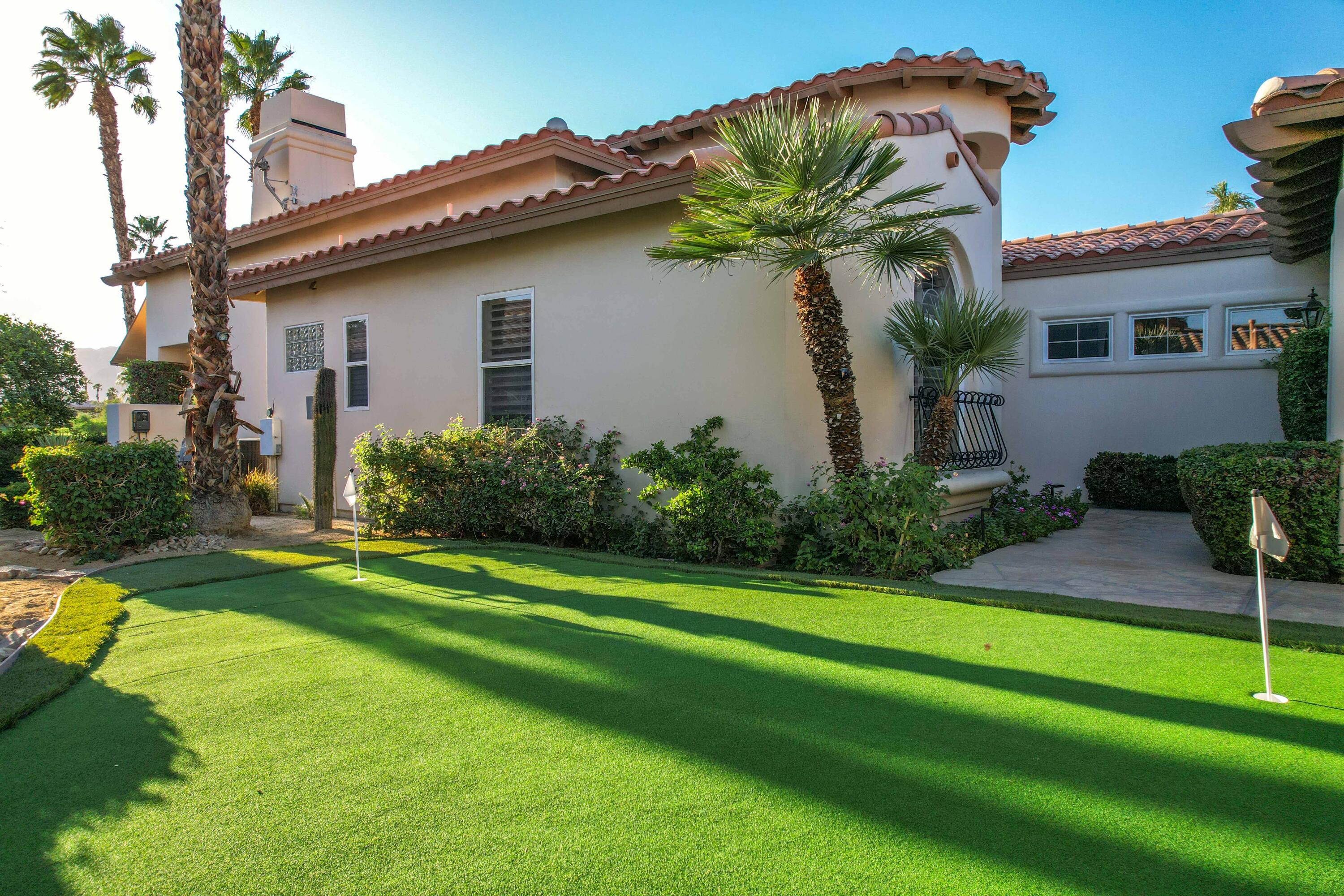 ***Next available May 1, 2025*** This beautifully updated estate offers the best of desert living with stunning South/West views over multiple fairways, a lake, and stream at exclusive Rancho La Quinta Country Club. The oversized lot includes a main home with 3 ensuite bedrooms and 3.5 baths. The third bedroom doubles as a media room with a pull-out sofa and oversized LoveSac bean bags. The primary suite and guest bedroom have king-sized beds. There is also a 'bunk room' featuring two sets of bunk beds. The open floor plan includes a great room and a fully equipped kitchen with island seating, blending indoor-outdoor living. The detached casita offers an additional bedroom, bathroom and living area. Outdoors, you'll find a lagoon-style pool, spa, fire pit, built-in barbecue, and stunning views of the Santa Rosa Mountains. Additional features include a putting green, bocce ball court. Recently updated with LVP flooring, fresh paint, new lighting, and furnishings, this 'beachy contemporary' home is offered turnkey furnished with a 30-day minimum. Rates may vary by season and length of stay.Interested in this Listing?