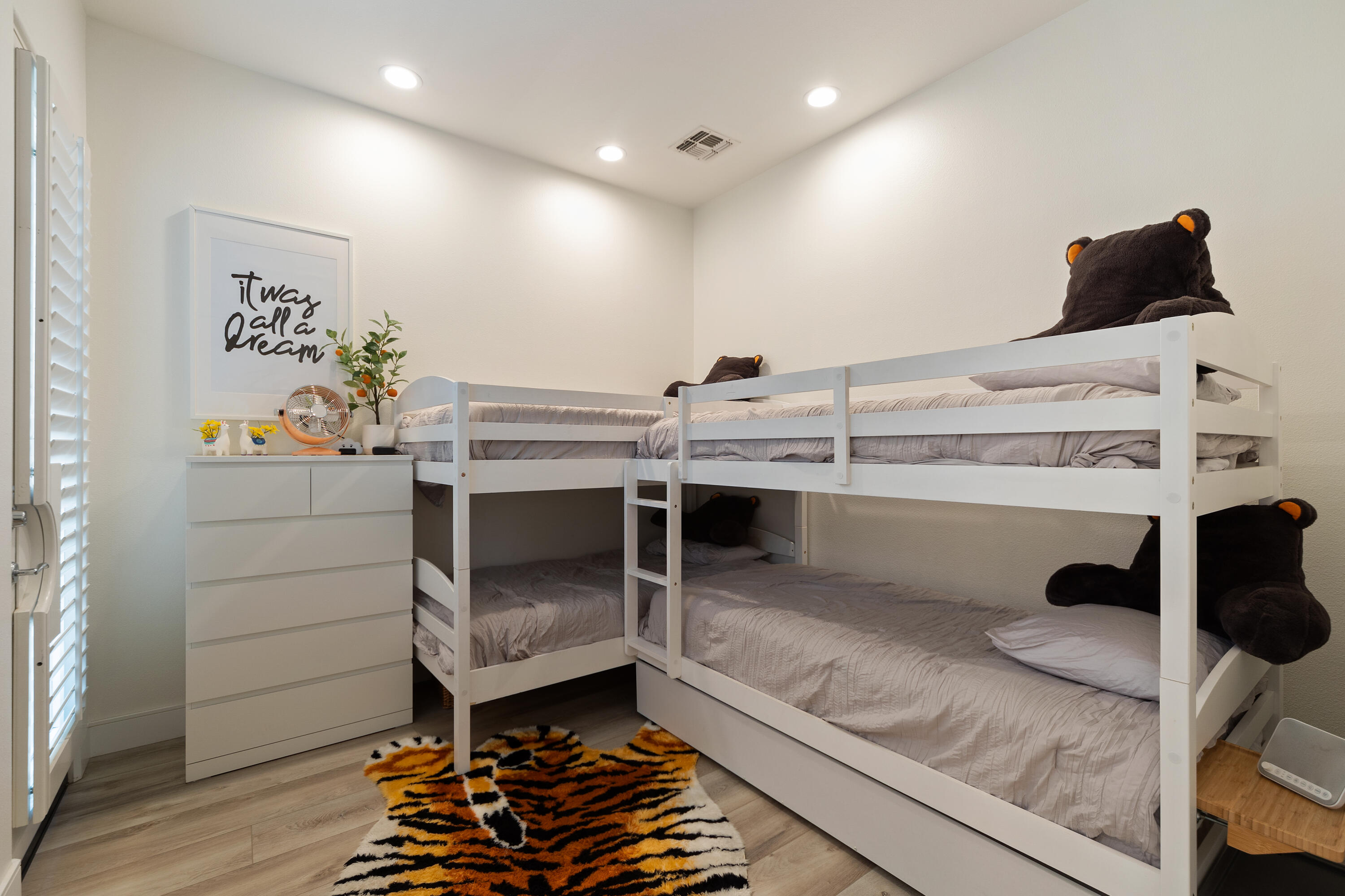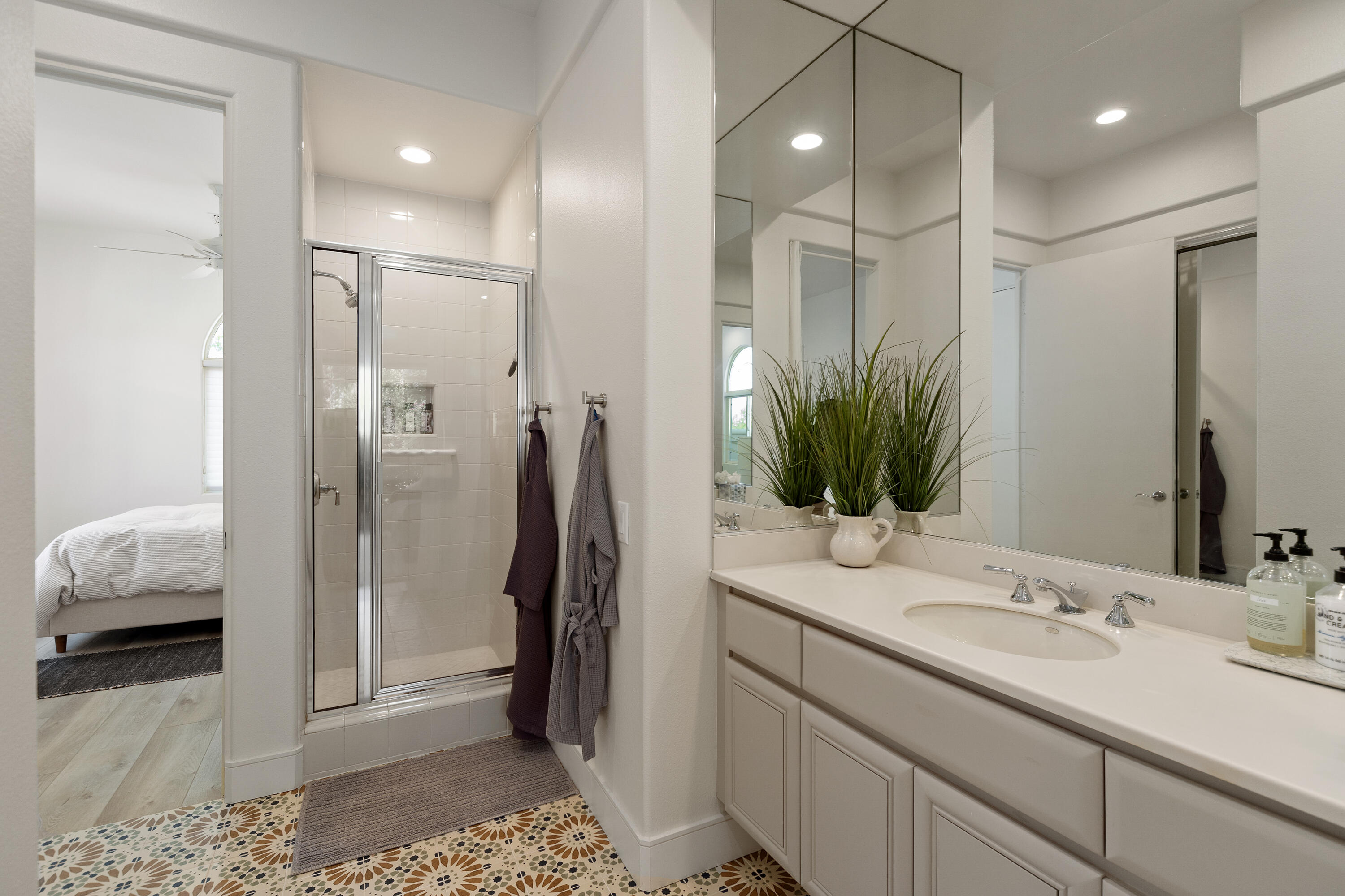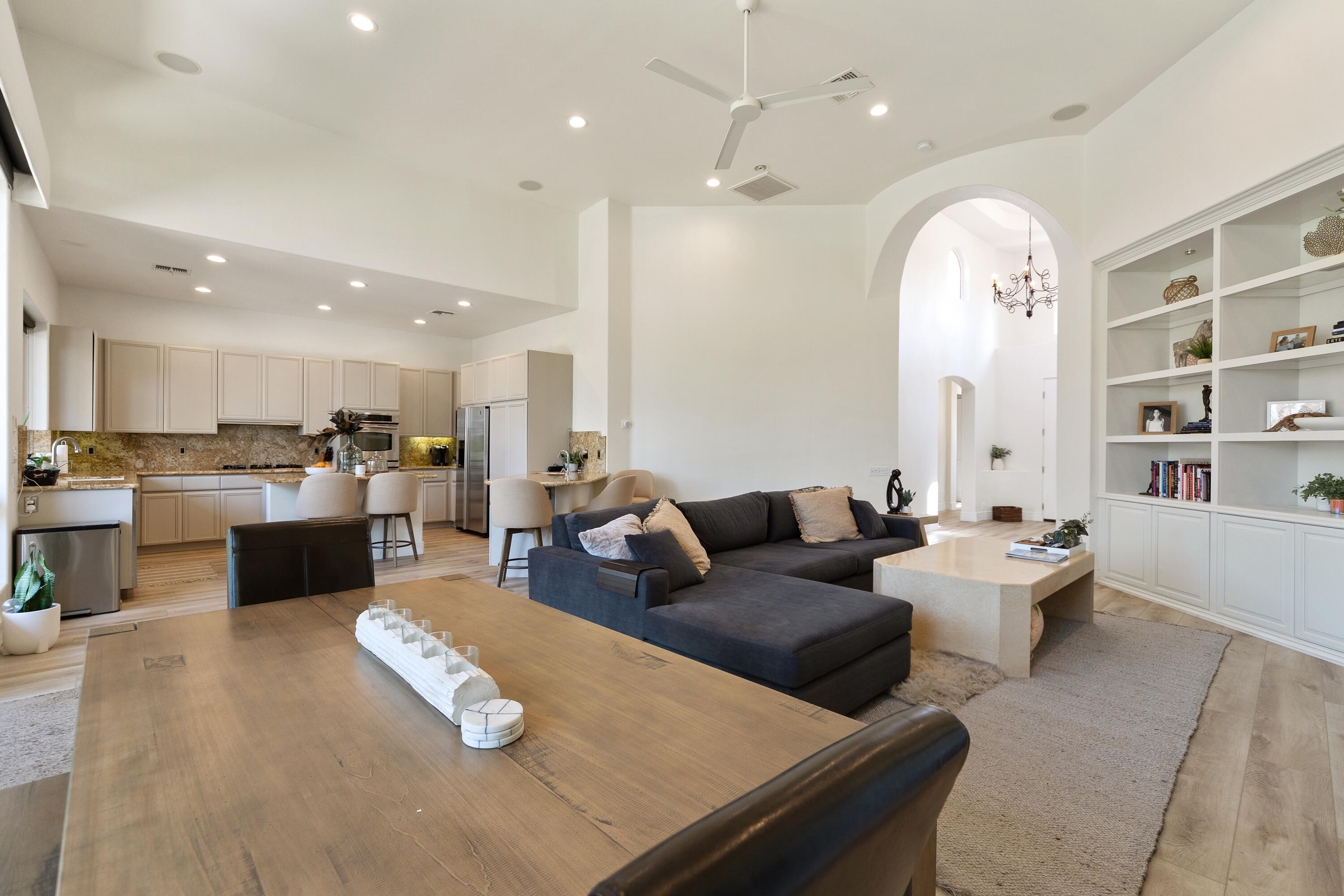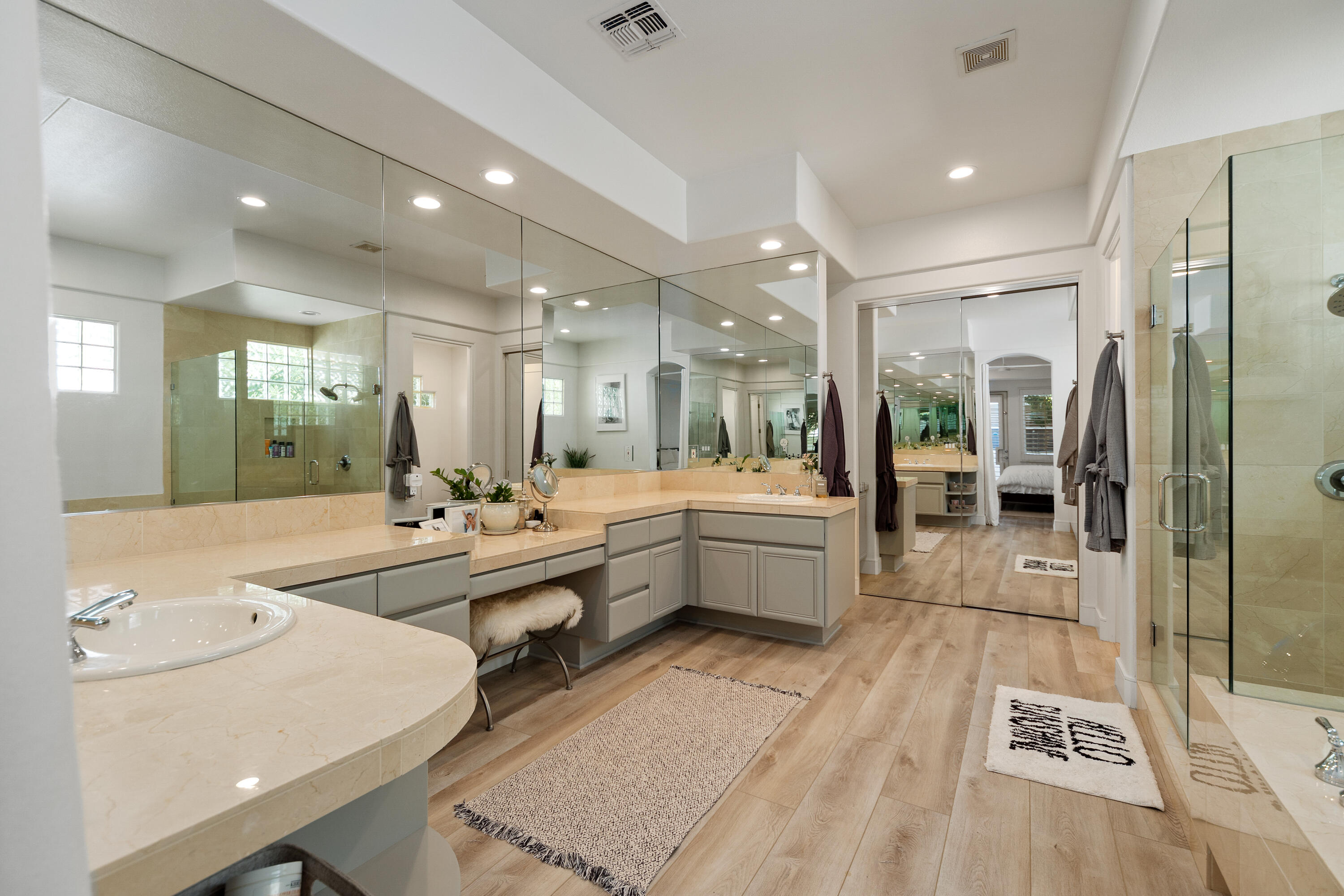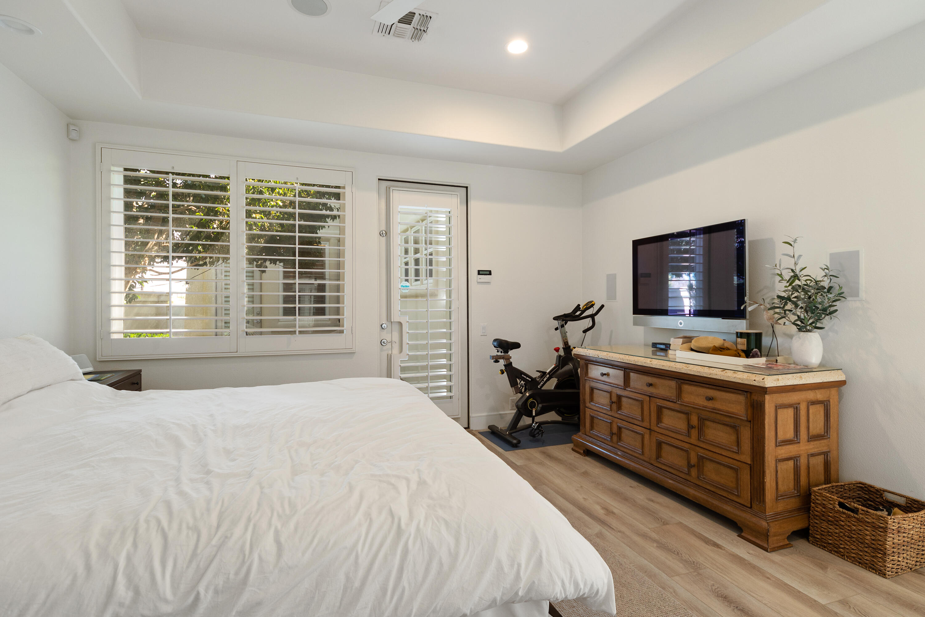 ***Next available May 1, 2025*** This beautifully updated estate offers the best of desert living with stunning South/West views over multiple fairways, a lake, and stream at exclusive Rancho La Quinta Country Club. The oversized lot includes a main home with 3 ensuite bedrooms and 3.5 baths. The third bedroom doubles as a media room with a pull-out sofa and oversized LoveSac bean bags. The primary suite and guest bedroom have king-sized beds. There is also a 'bunk room' featuring two sets of bunk beds. The open floor plan includes a great room and a fully equipped kitchen with island seating, blending indoor-outdoor living. The detached casita offers an additional bedroom, bathroom and living area. Outdoors, you'll find a lagoon-style pool, spa, fire pit, built-in barbecue, and stunning views of the Santa Rosa Mountains. Additional features include a putting green, bocce ball court. Recently updated with LVP flooring, fresh paint, new lighting, and furnishings, this 'beachy contemporary' home is offered turnkey furnished with a 30-day minimum. Rates may vary by season and length of stay.Interested in this Listing?