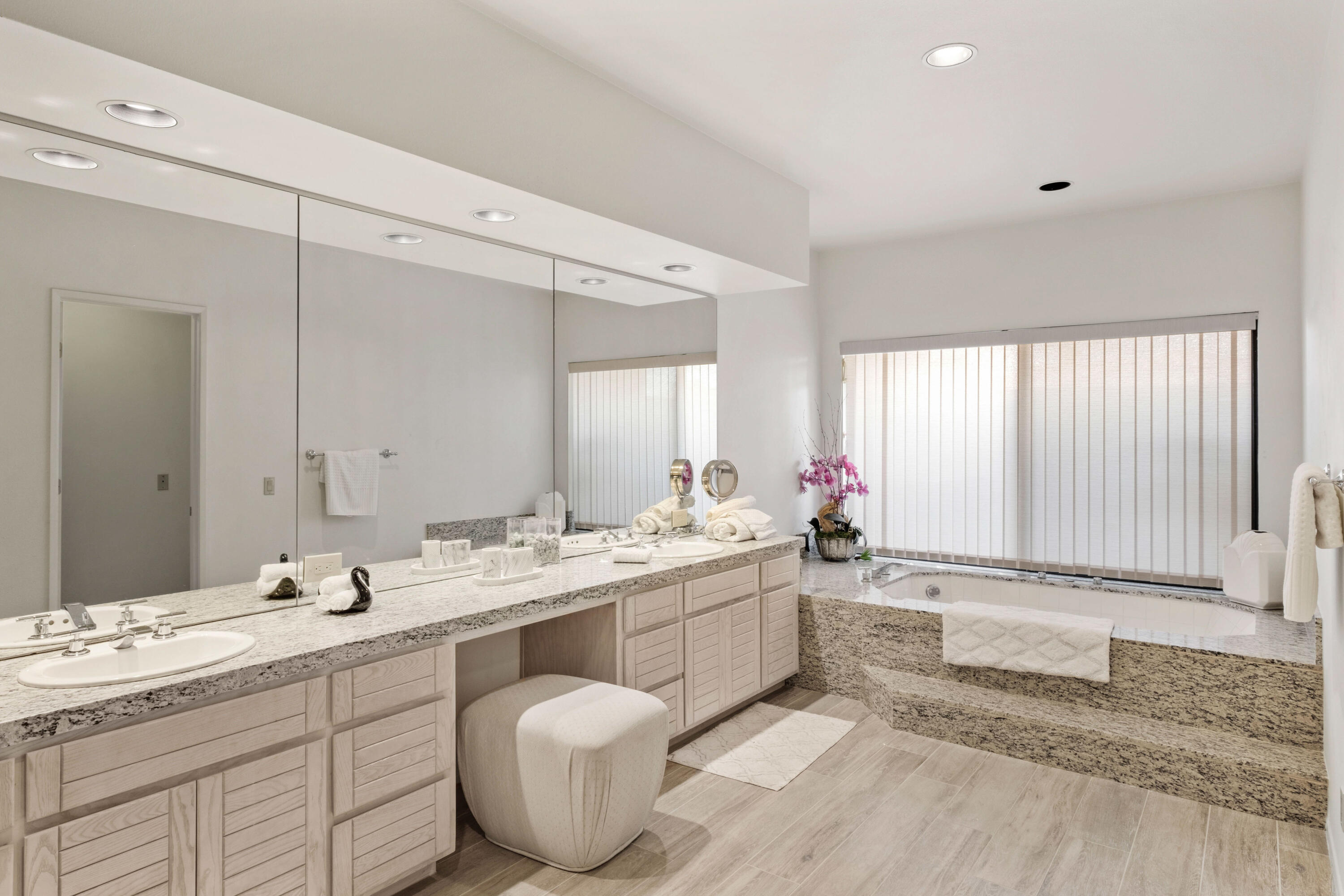 Beautifully designed and maintained condo overlooking the Santa Rosa mountains, located on the 9th hole of the Nicklaus Private golf course in PGA West, perfect desert gateway. This is a Legend 40 model with 3 bedrooms and 3 1/2 baths with new wooden floors to enhance the open floor plan. High ceilings, bright, spacious great room and dining room with fantastic mountain views. Primary bedroom with large walk-in closet and double sinks. Fully furnished and ready for immediate move-in. Private pool & spa, BBQ and short walk to club house, sports bar, and tennis courts. 2car + golf cart garage. 24 hour guard service, Long-term lease, the tenant pays utilities and landlord pays HOA, gardener, pool, basic cable, and trash. 5 Months for season lease price is $12,000. Home is also available for long term lease at $8,000 year or more.Interested in this Listing?