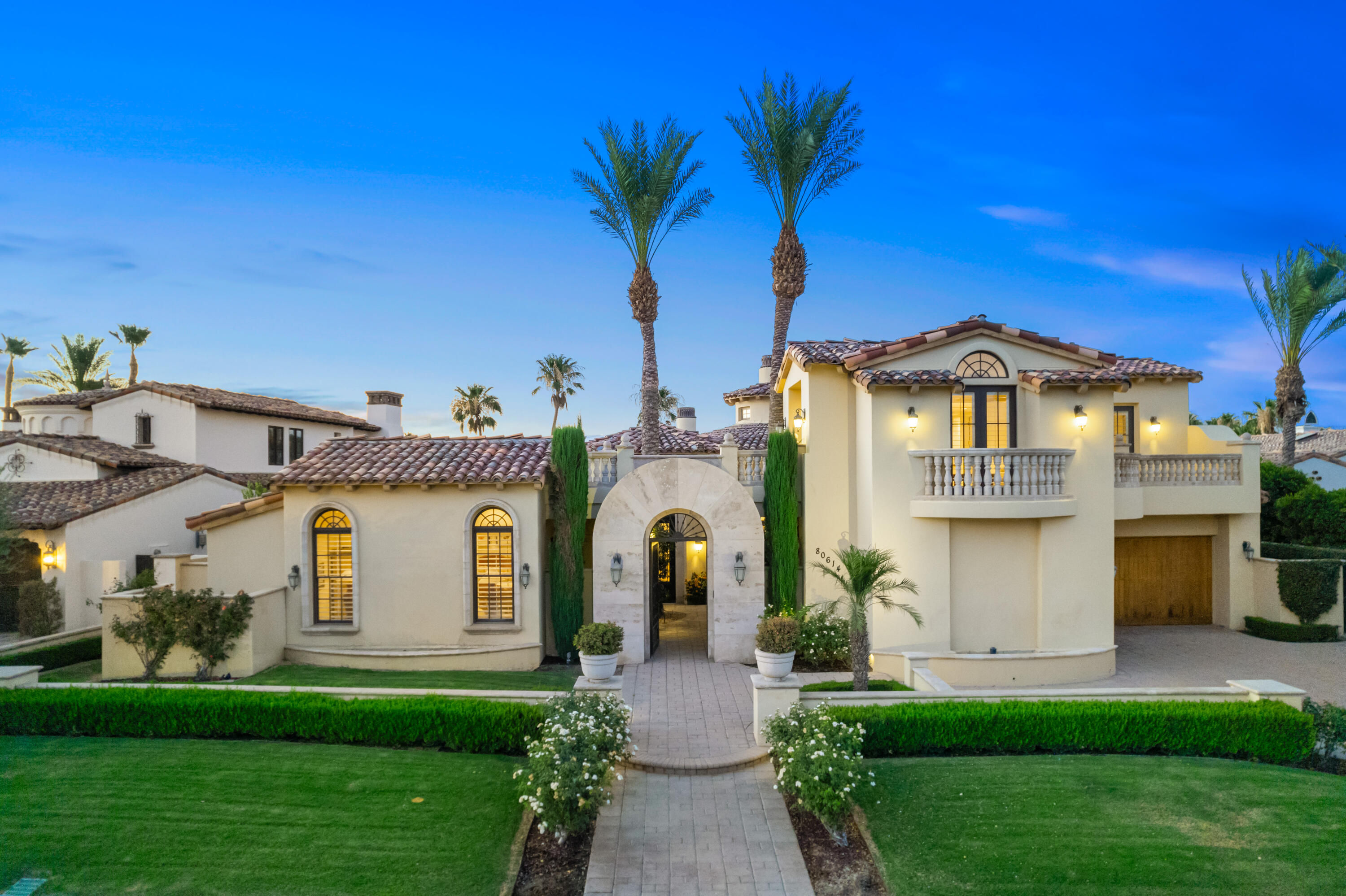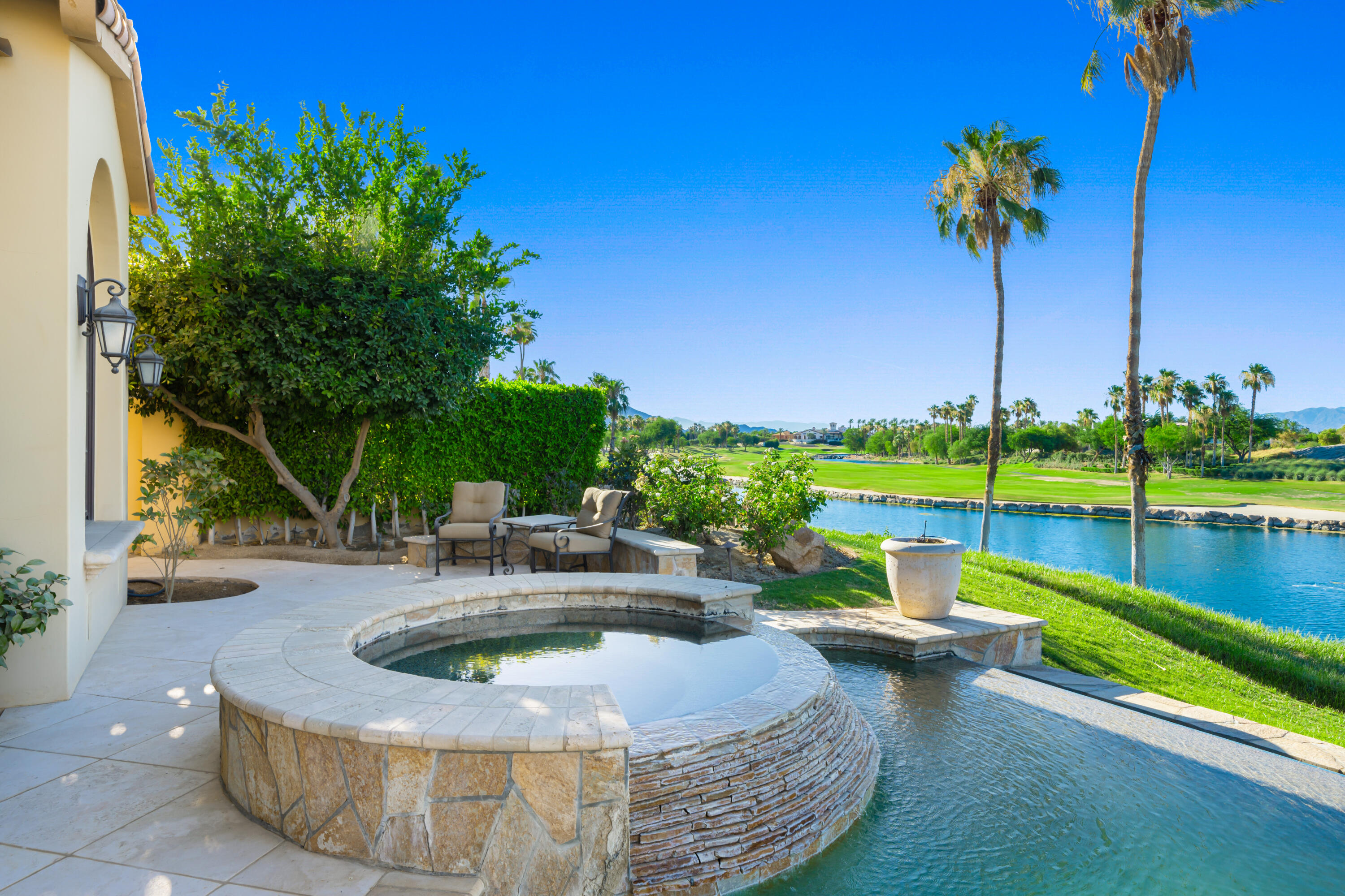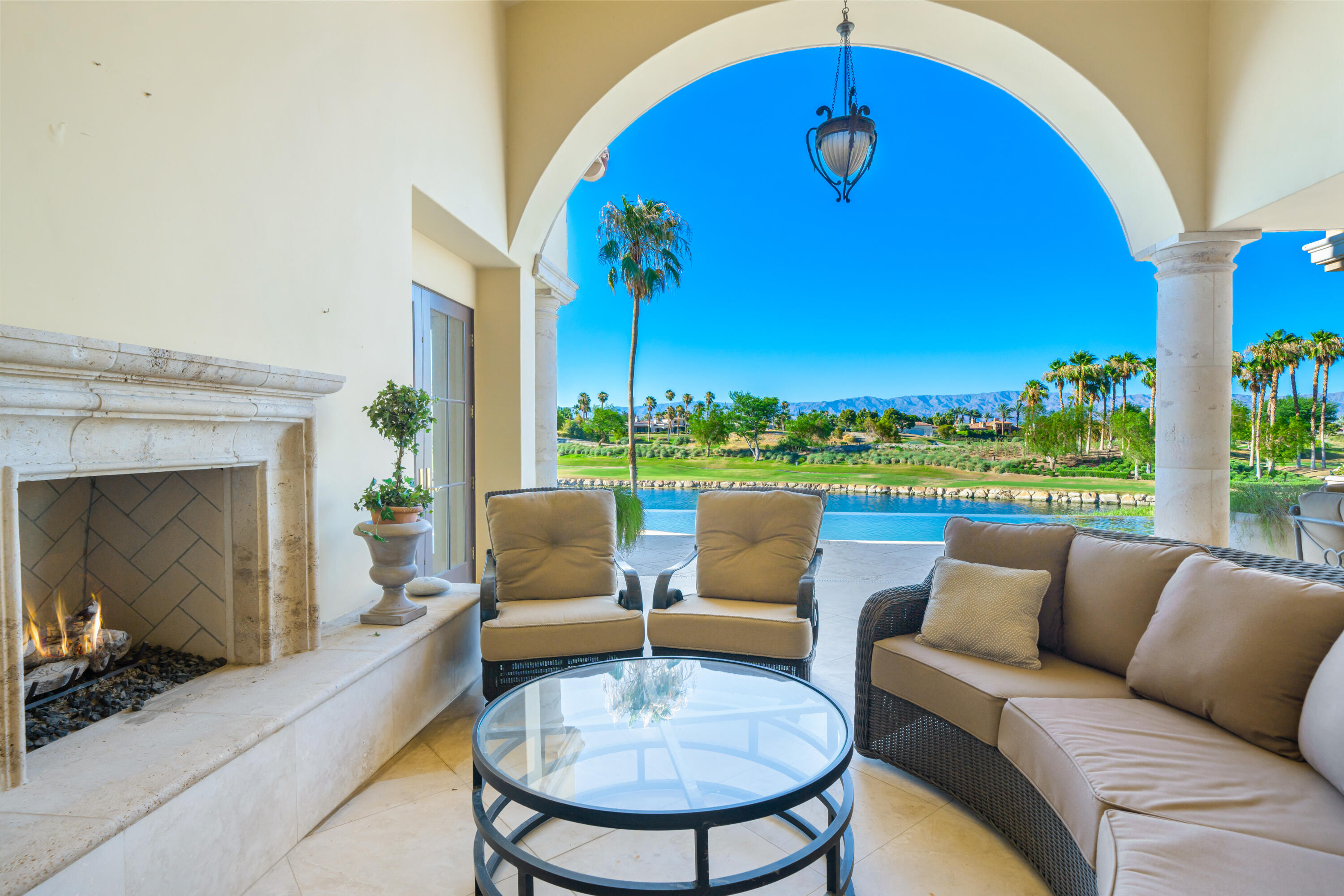 Located in the heart of the community with an incredible elevated setting & panoramic views of the Hideaway Clubhouse, this 5 bedrooms, 4.5 bathrooms Mediterranean masterpiece offers 5,630 sqft of sophisticated living space & elegant design. As you step through the private courtyard, a stunning rotunda entryway leads you into a grand great room with soaring ceilings & a see-through fireplace - a focal point for both warmth & conversation. The elegant dining room is conveniently located near the kitchen which is fully equipped with Miele appliances, two dishwashers, and a walk-in pantry. The adjacent family room is a place to gather & enjoy the spectacular lake views. With ample room for both a generous desk and seating area, the office is a sanctuary to reflect upon your day's achievements. The primary bedroom is an inviting retreat, with a spa-like bath that mirrors the home's elegance. The guest bedroom wing features its own living room and access from the courtyard, offering privacy & comfort. Ascend to the second level where 3 spacious guest bedrooms await, with mesmerizing Santa Rosa Mountains views and balcony entrance. The tranquil outdoor entertainment area boasts a large covered veranda, outdoor dining, a BBQ island and an infinity pool and spa, set against the backdrop of amazing views of both the 18th fairway and 17th green of the renowned Pete Dye Golf Course. This beautiful home is being offered for lease starting in March 2025 for 1 to 3 months (30 days min)Interested in this Listing?