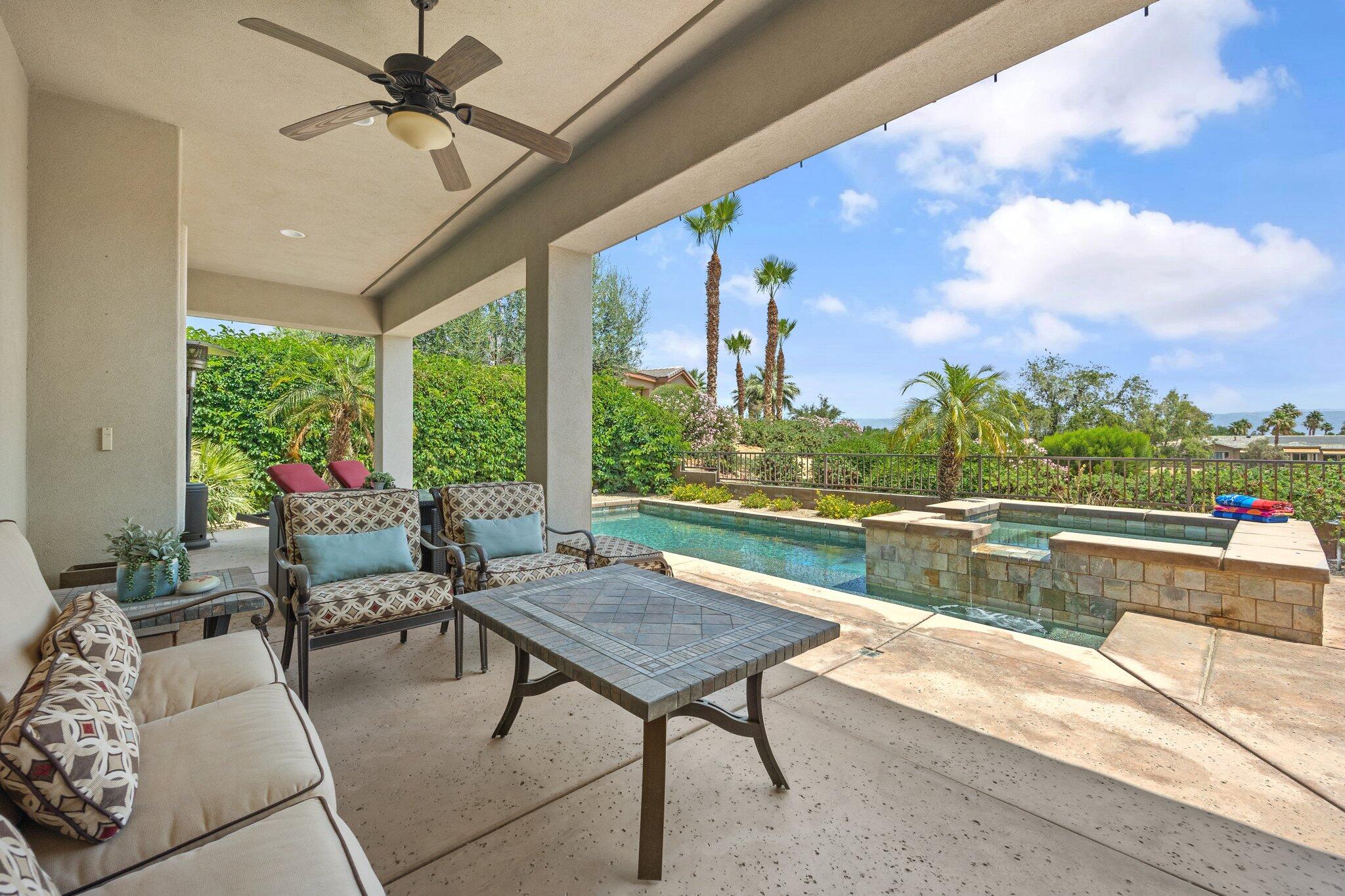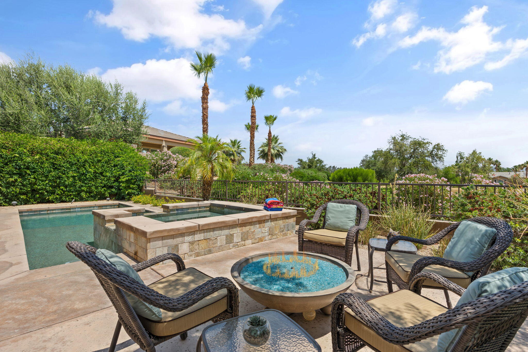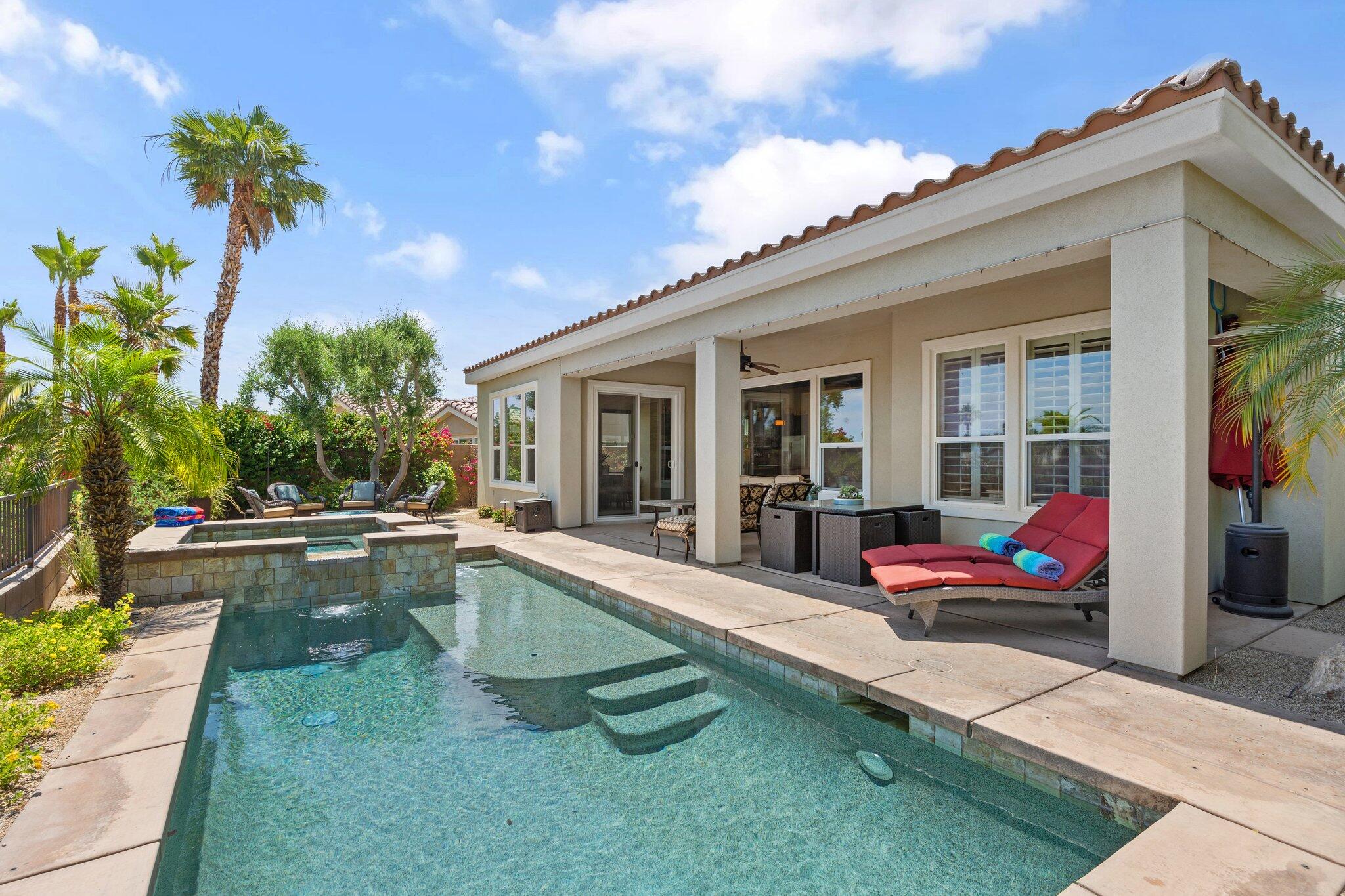 BOOKED JAN/FEB 2025. RENTED 1-126 thru 2-28-26. Owner rents property each JAN/FEB only. Set against the backdrop of the beautiful Coral Mountain, home away from home is welcoming you to Trilogy La Quinta a 55 and older community, one of the top in the valley. The amenities abound and the beauty is breathtaking. This warm and inviting home is well equipped with everything you will need to enjoy your get away. The kitchen and living room are so inviting and great for entertaining. Featuring a double oven, gas stovetop, a wine refrig, a Bose stereo and surround sound for your TV viewing. The master bedroom is a sanctuary unto itself. Decorated with light colors it is peaceful setting to open a book or take a nap whatever your heart desires. The spare bedroom is also a great place to rest and relax with its own convenient bathroom. The third bedroom, the casita, is detached and private and also decorated for optimal relaxation. With a TV, Refrigerator and its own bathroom. Open the sliding door to your own vacation oasis where you will be enticed by the beautiful pool and spa and mesmerized at the sunsets and star filled skies as you enjoy them sitting at a cozy firepit. The front door view is of Coral Mountain and never disappoints with its dramatic peaks against a truly mesmerizing clear blue sky.Interested in this Listing?