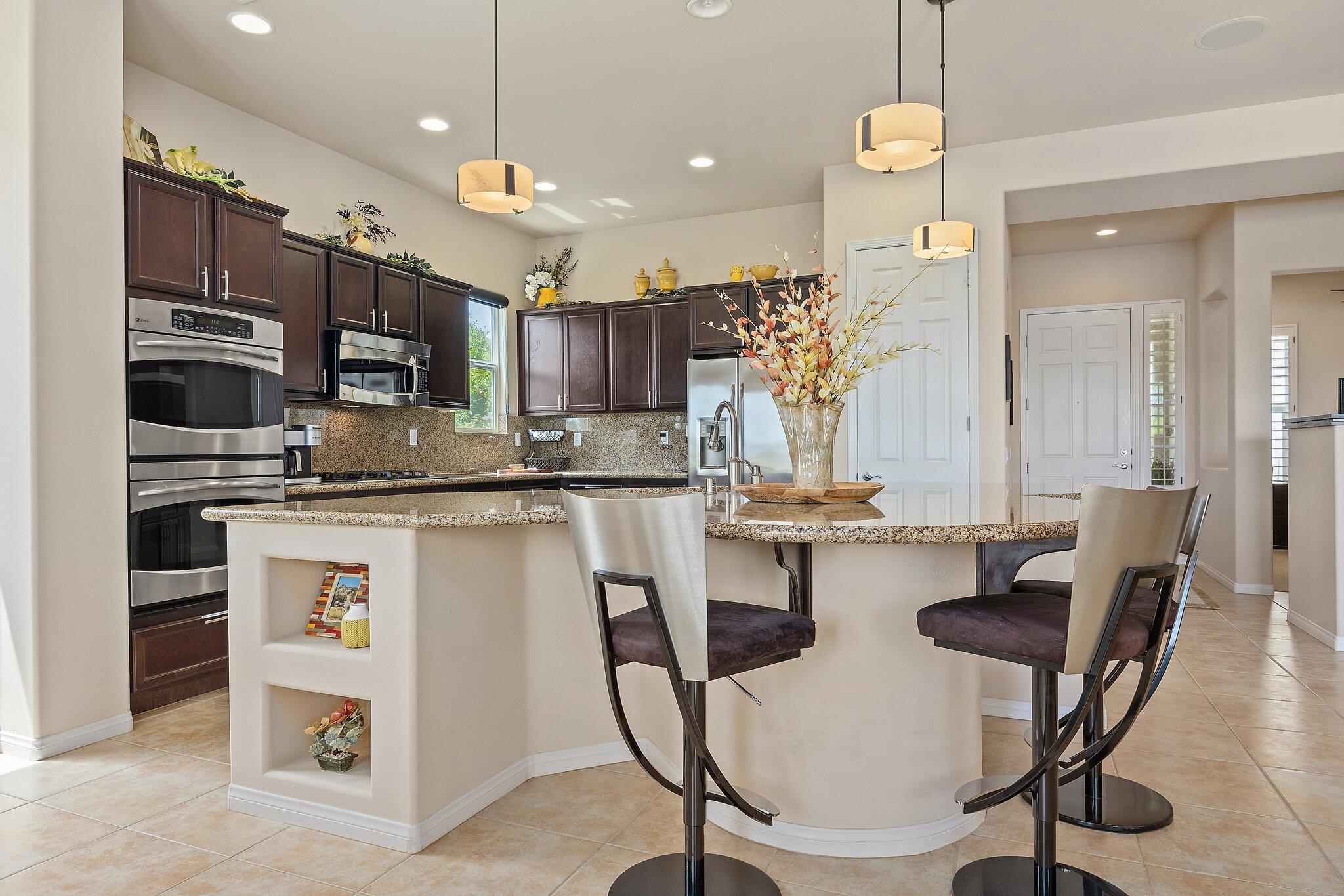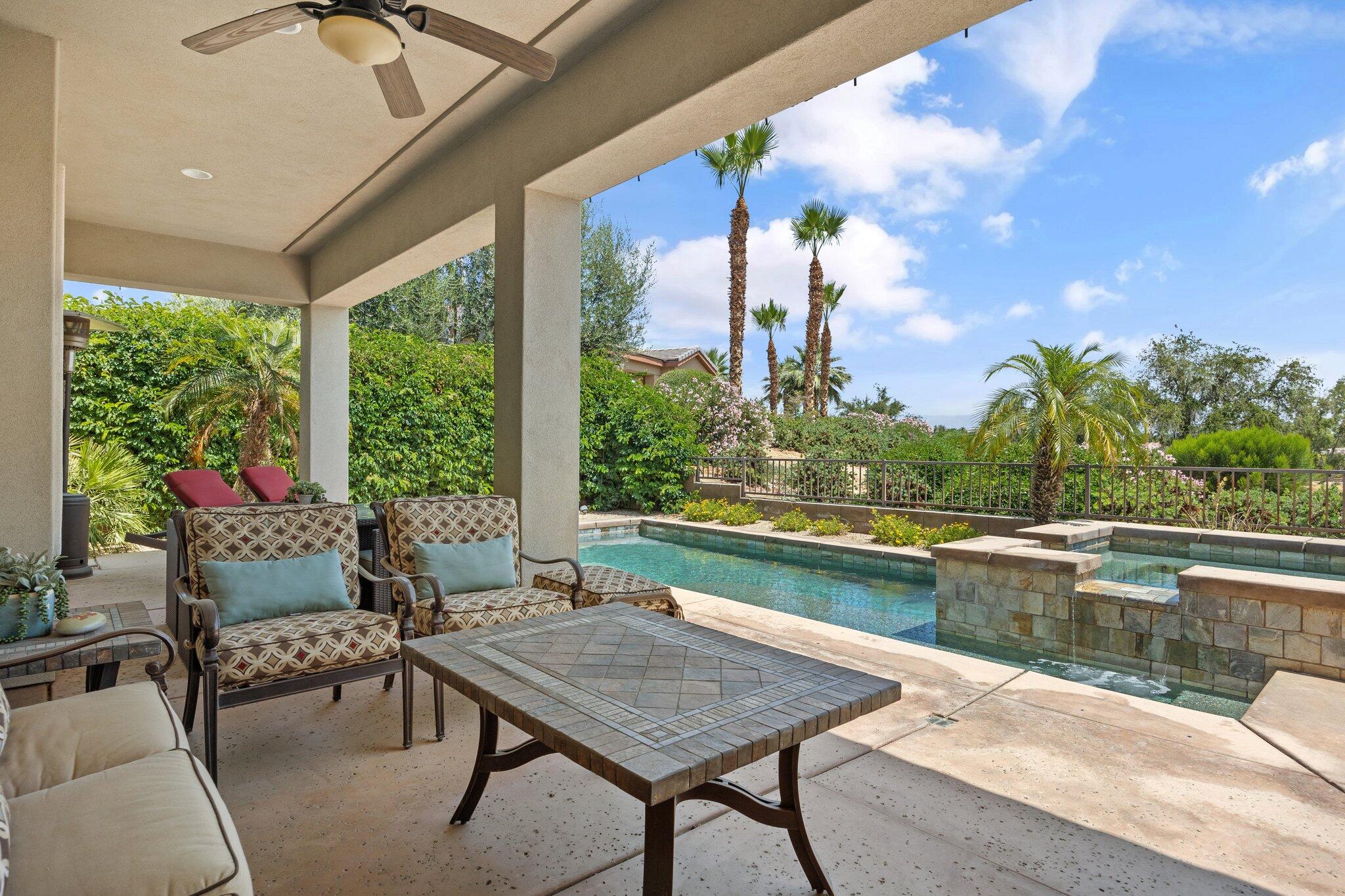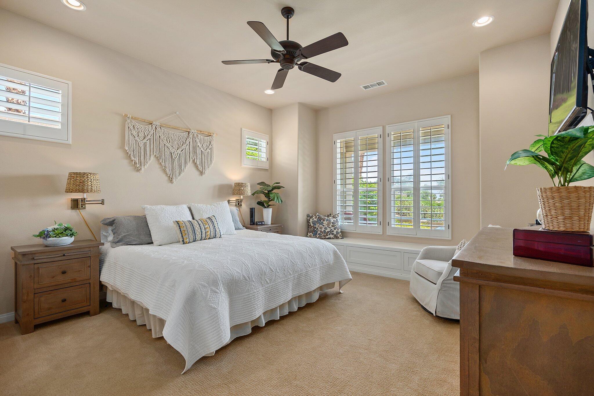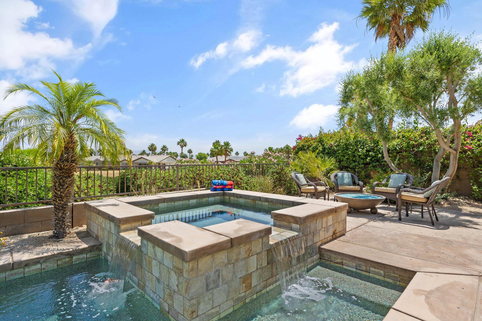 BOOKED JAN/FEB 2025. RENTED 1-126 thru 2-28-26. Owner rents property each JAN/FEB only. Set against the backdrop of the beautiful Coral Mountain, home away from home is welcoming you to Trilogy La Quinta a 55 and older community, one of the top in the valley. The amenities abound and the beauty is breathtaking. This warm and inviting home is well equipped with everything you will need to enjoy your get away. The kitchen and living room are so inviting and great for entertaining. Featuring a double oven, gas stovetop, a wine refrig, a Bose stereo and surround sound for your TV viewing. The master bedroom is a sanctuary unto itself. Decorated with light colors it is peaceful setting to open a book or take a nap whatever your heart desires. The spare bedroom is also a great place to rest and relax with its own convenient bathroom. The third bedroom, the casita, is detached and private and also decorated for optimal relaxation. With a TV, Refrigerator and its own bathroom. Open the sliding door to your own vacation oasis where you will be enticed by the beautiful pool and spa and mesmerized at the sunsets and star filled skies as you enjoy them sitting at a cozy firepit. The front door view is of Coral Mountain and never disappoints with its dramatic peaks against a truly mesmerizing clear blue sky.Interested in this Listing?