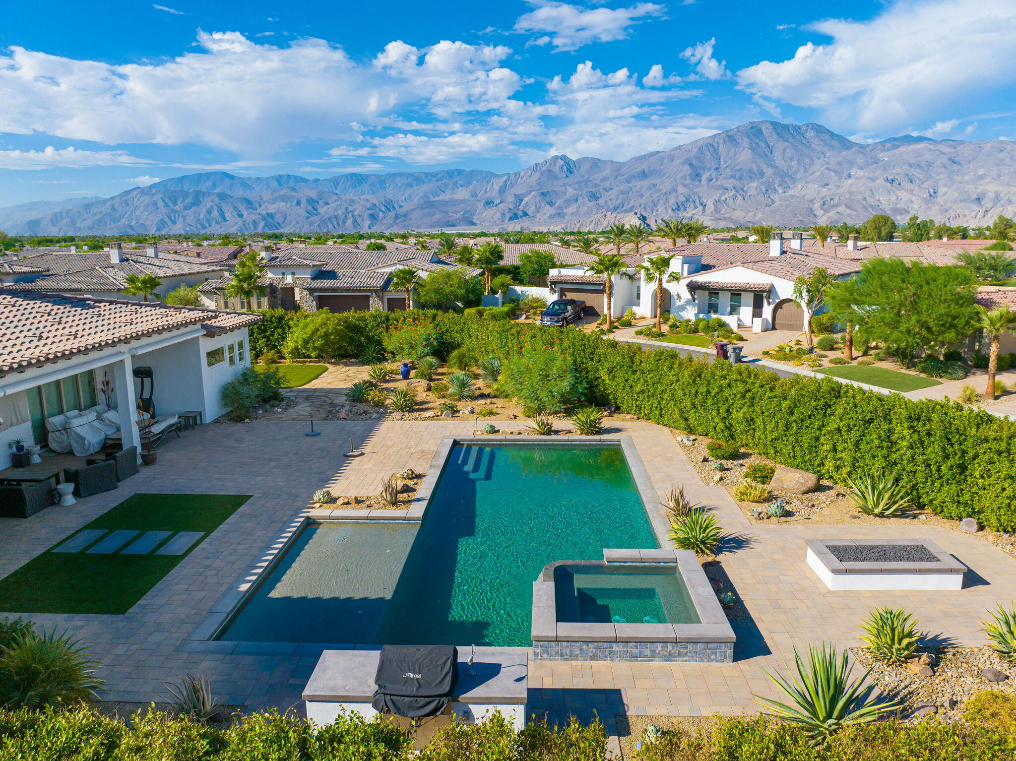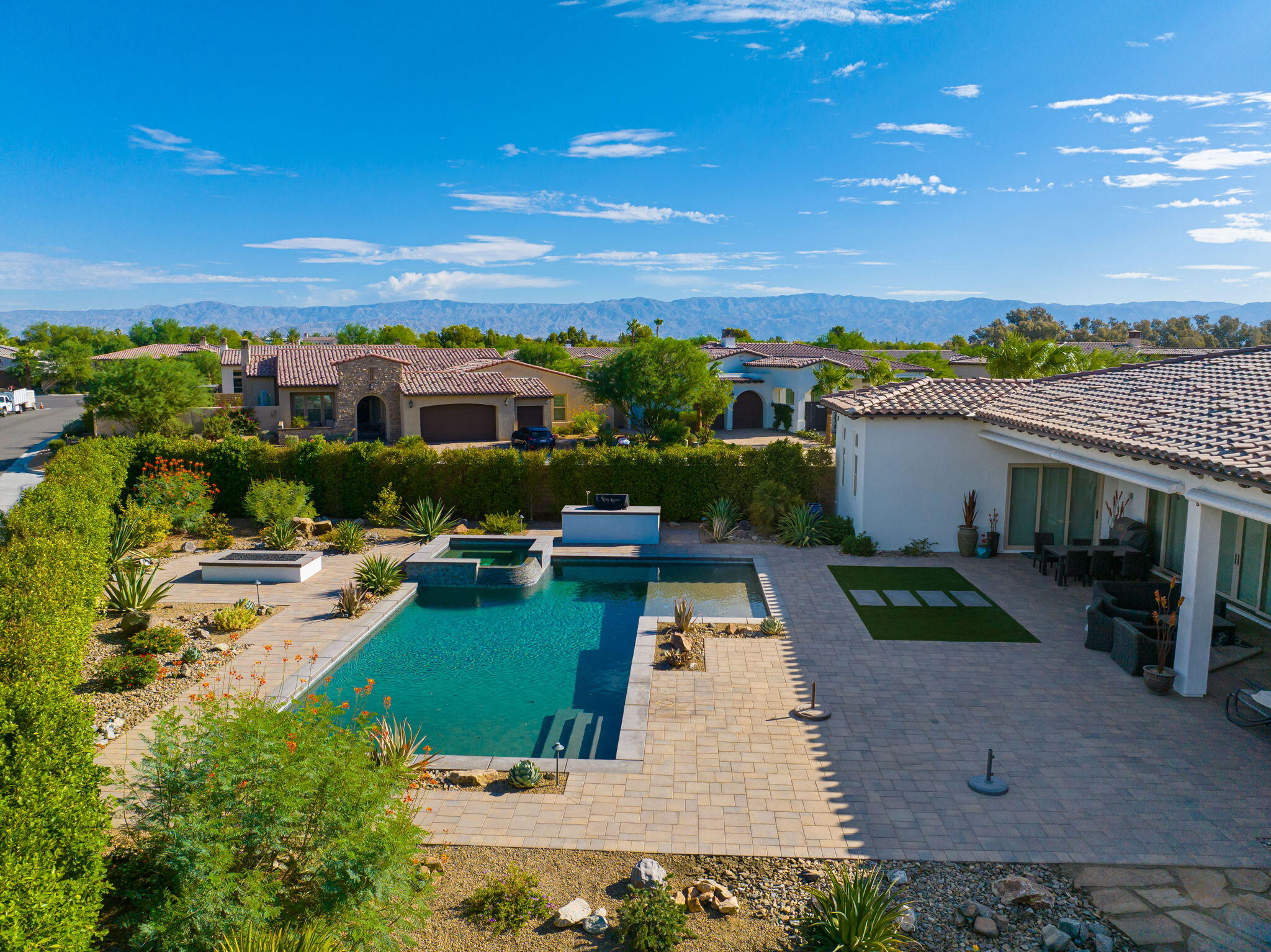 Step inside this beautiful contemporary home. The wide open floor plan is perfect for entertaining guests and hosting your friends and family. The 3,818 sq ft includes 4 bedrooms all with their own en suite bath for ideal resort living. The kitchen is stocked with Grade A stainless steel appliances and equipped with everything you could possibly need during your stay. Just off the back of the living room you will find glass pocket doors leading out to the incredible backyard. Your own private desert oasis featuring: a salt water pool and spa, a built in BBQ, an outdoor TV, built in fire pit, and 360 degree views of the Santa Rosa Mountains. Tenants also have full access to Griffin Ranch amenities: clubhouse, tennis and pickle ball courts, gym, community pool, and bocce.$20,000/month for November and December: $10,000/month for any summer months, May-September; October $15,000.**Rented 1.1.26 thru 3.31.26**Interested in this Listing?