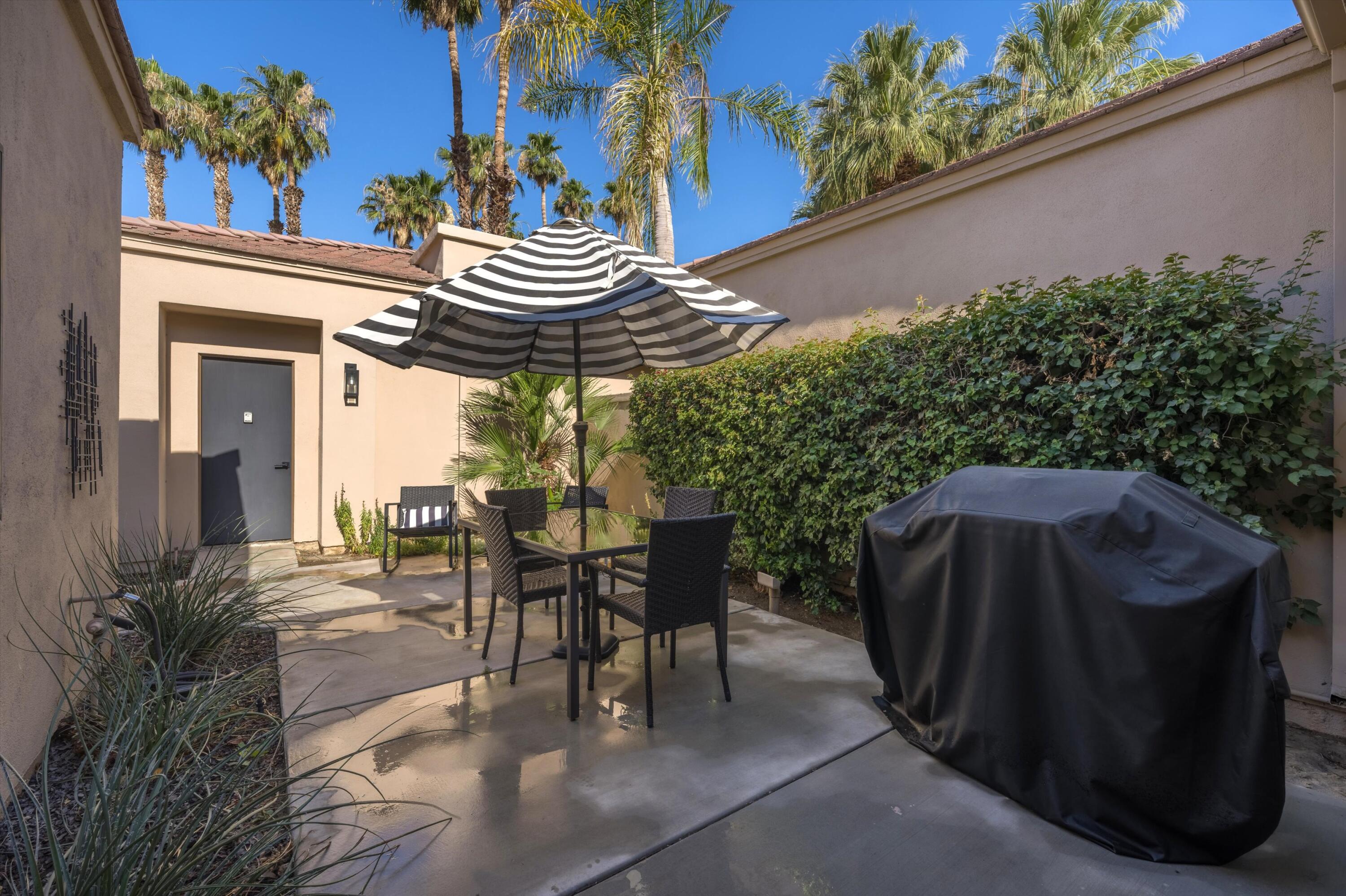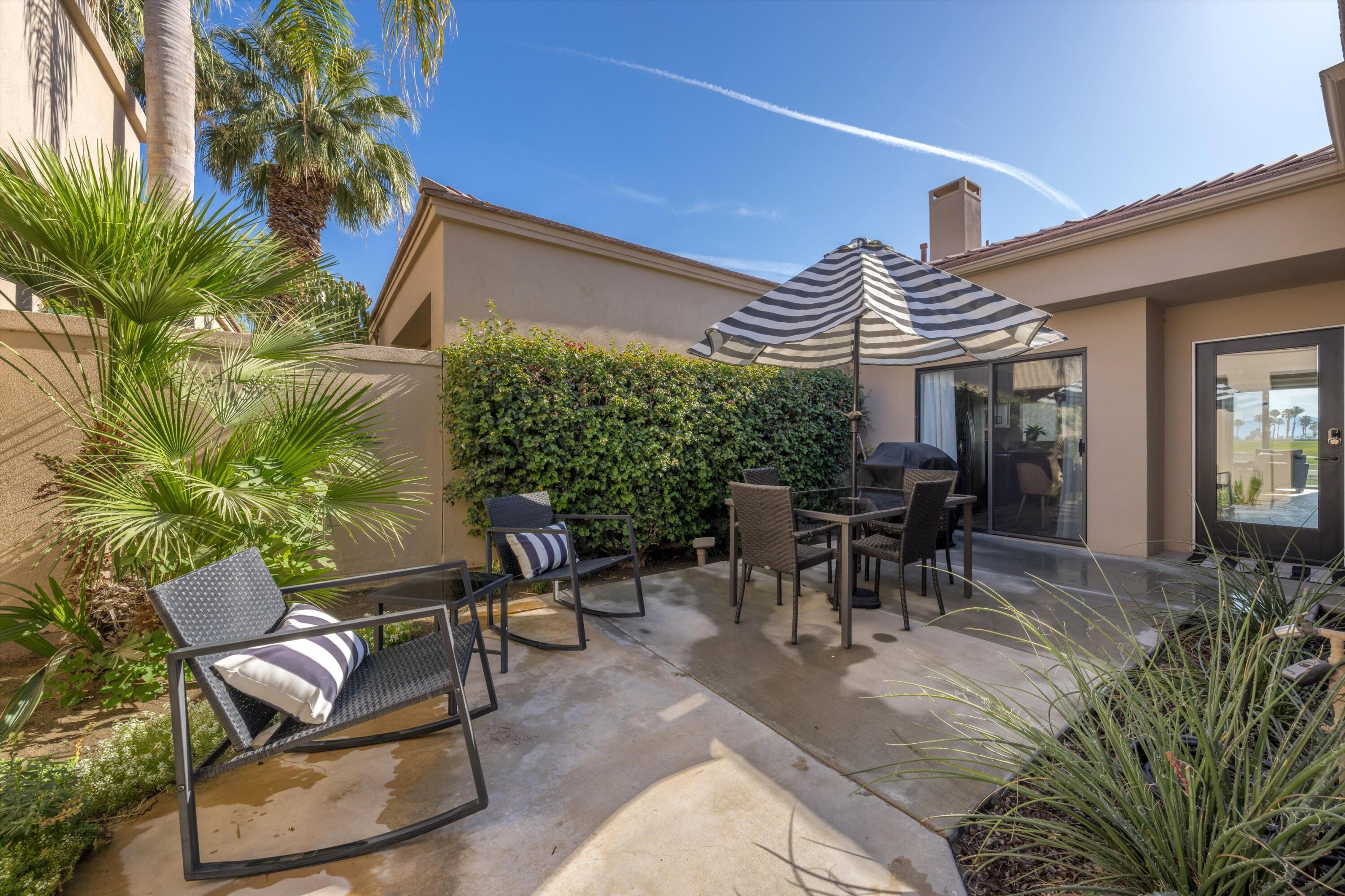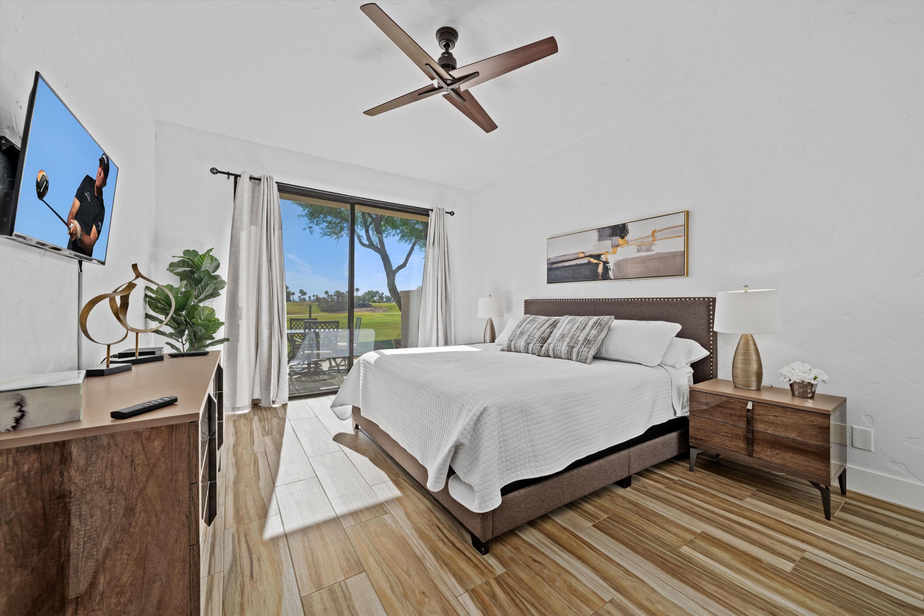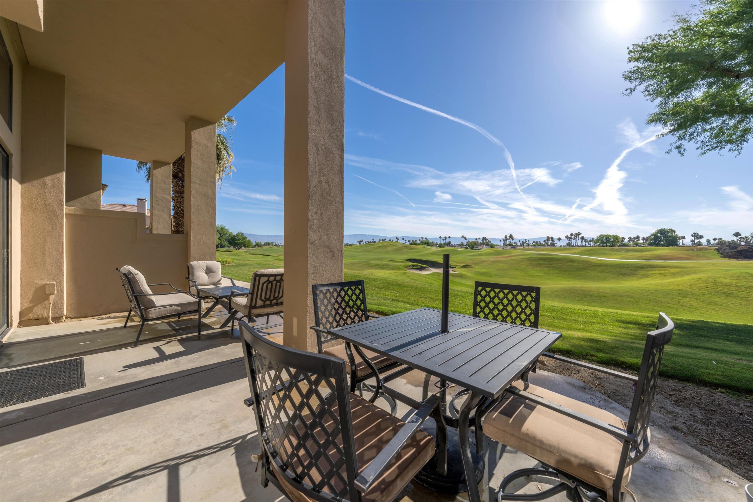 Welcome to this gorgeous, completely renovated 2 bed 2 bath 1330 sq ft condo located on the 11th hole of the TPC Stadium Course at World Famous PGA West! A spacious side entry brings you into patio area complete w/ dining table, umbrella & BBQ. Modern front door welcomes you w/ updated ceramic tile wood accent floors into a gourmet kitchen w/ custom cabinetry, granite counters, SS appliances & breakfast area. Moving into the living room area that has bright paint tones, high ceilings, trendy lighting, furniture & wall art along w/ large patio door for amazing light looking onto the back patio and golf course views. Spacious bedrooms are both highlighted w/ custom designed bathrooms that has all the modern trends and feel to them. Full tile showers, upgraded vanities make the space very light and fresh. The back patio has all the views and feel of what you would expect from a championship style golf course. Pride in ownership and attention to detail shows throughout this home. Community pool/spa area is just a short distance away along w/ main gate access. Old Town La Quinta dining & shopping area, Eldorado polo fields which is home to Coachella/Stagecoach music festivals and world famous La Quinta Resort are all nearby. Don't forget to visit Ernies clubhouse w/ recently updated bar/ restaurant inside the gates of PGA West.