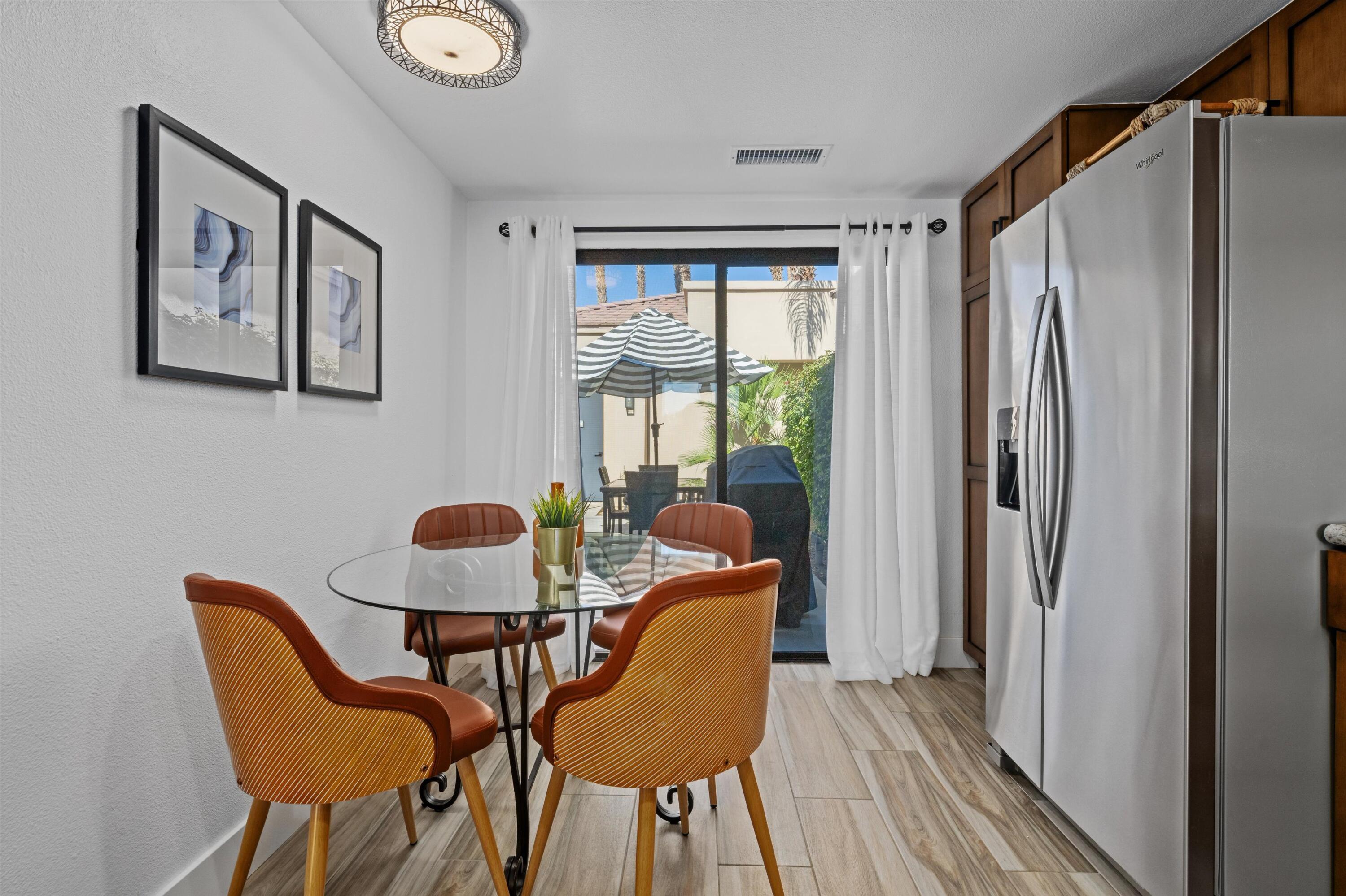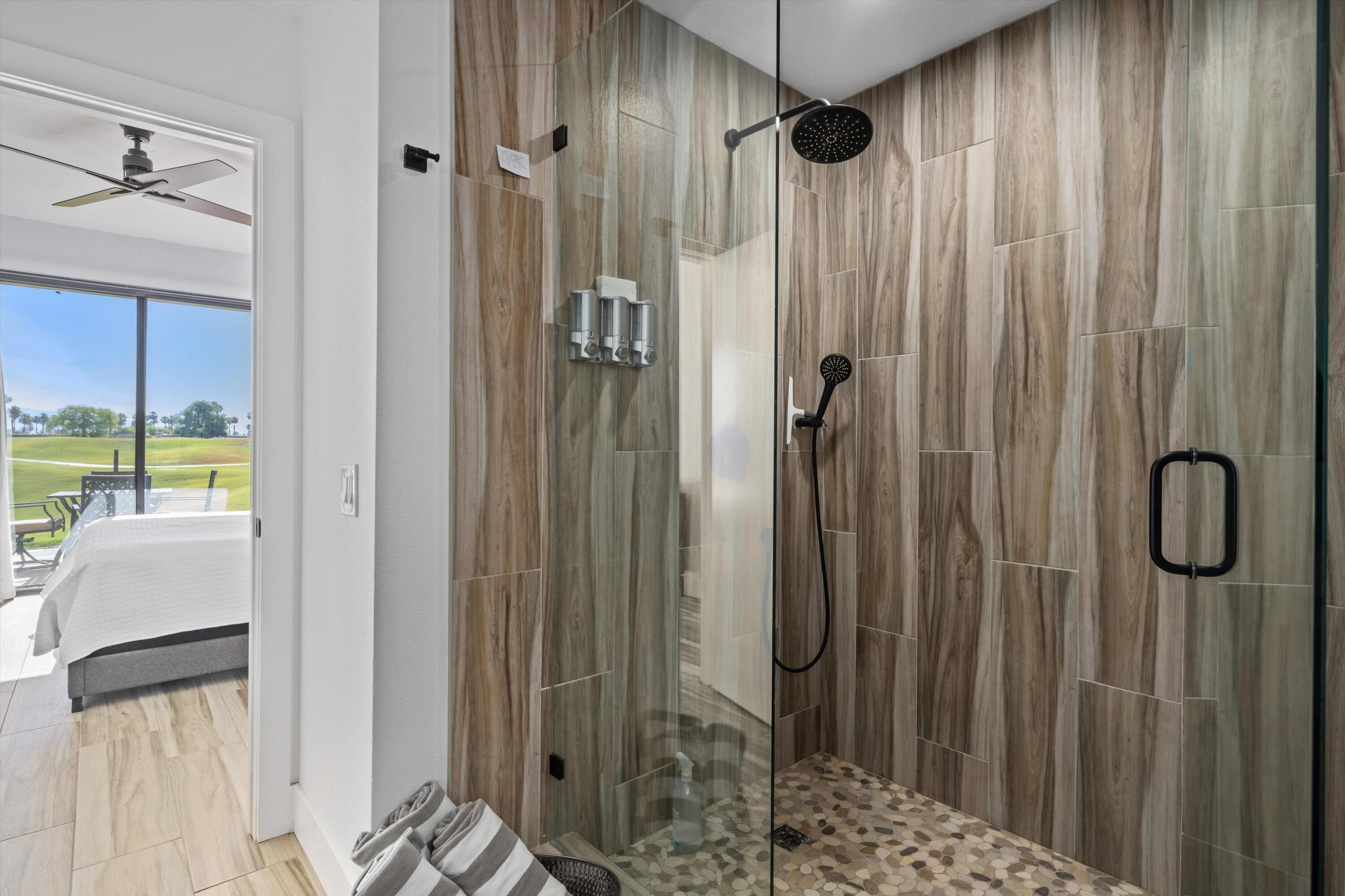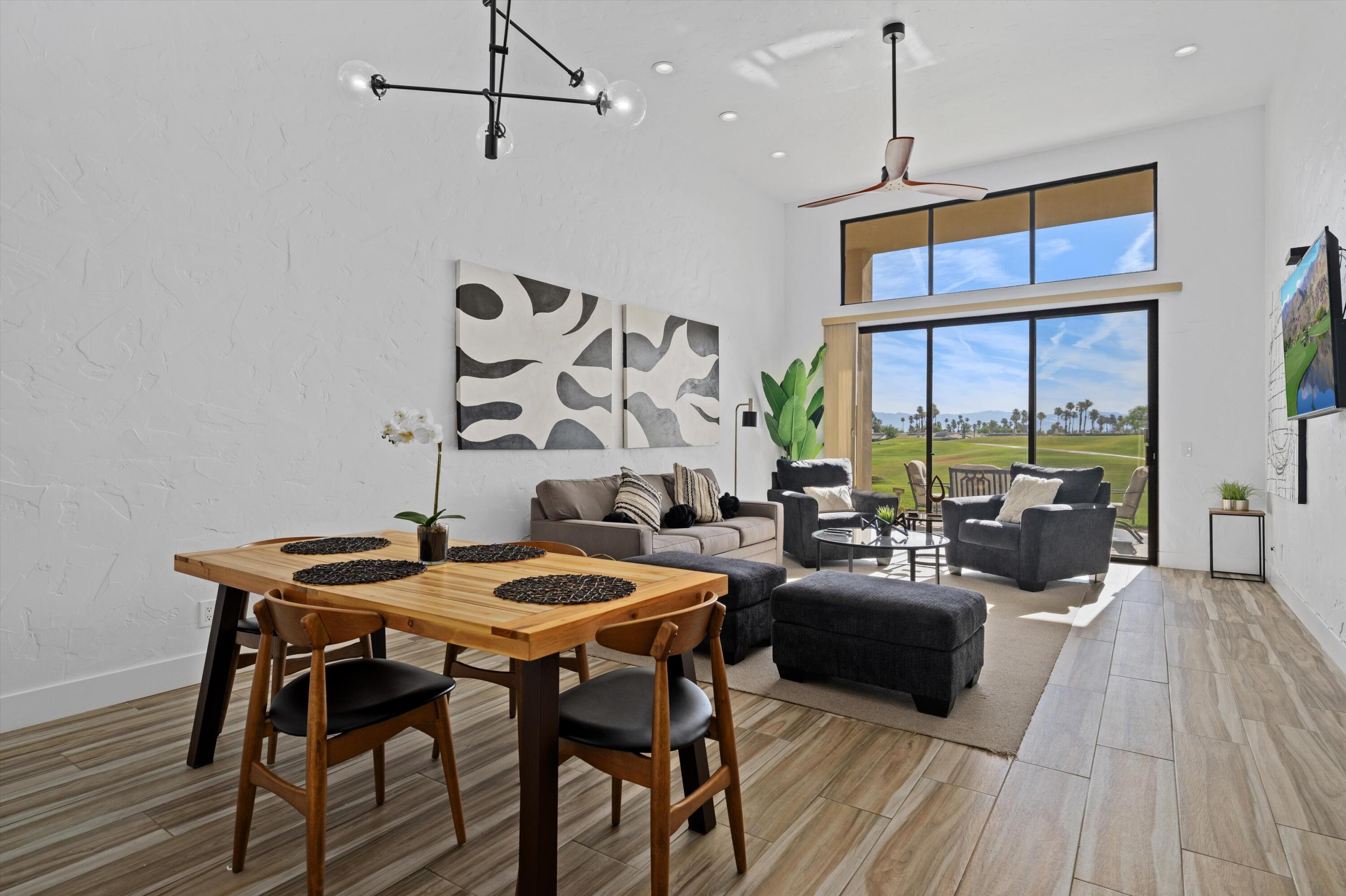 Welcome to this gorgeous, completely renovated 2 bed 2 bath 1330 sq ft condo located on the 11th hole of the TPC Stadium Course at World Famous PGA West! A spacious side entry brings you into patio area complete w/ dining table, umbrella & BBQ. Modern front door welcomes you w/ updated ceramic tile wood accent floors into a gourmet kitchen w/ custom cabinetry, granite counters, SS appliances & breakfast area. Moving into the living room area that has bright paint tones, high ceilings, trendy lighting, furniture & wall art along w/ large patio door for amazing light looking onto the back patio and golf course views. Spacious bedrooms are both highlighted w/ custom designed bathrooms that has all the modern trends and feel to them. Full tile showers, upgraded vanities make the space very light and fresh. The back patio has all the views and feel of what you would expect from a championship style golf course. Pride in ownership and attention to detail shows throughout this home. Community pool/spa area is just a short distance away along w/ main gate access. Old Town La Quinta dining & shopping area, Eldorado polo fields which is home to Coachella/Stagecoach music festivals and world famous La Quinta Resort are all nearby. Don't forget to visit Ernies clubhouse w/ recently updated bar/ restaurant inside the gates of PGA West.