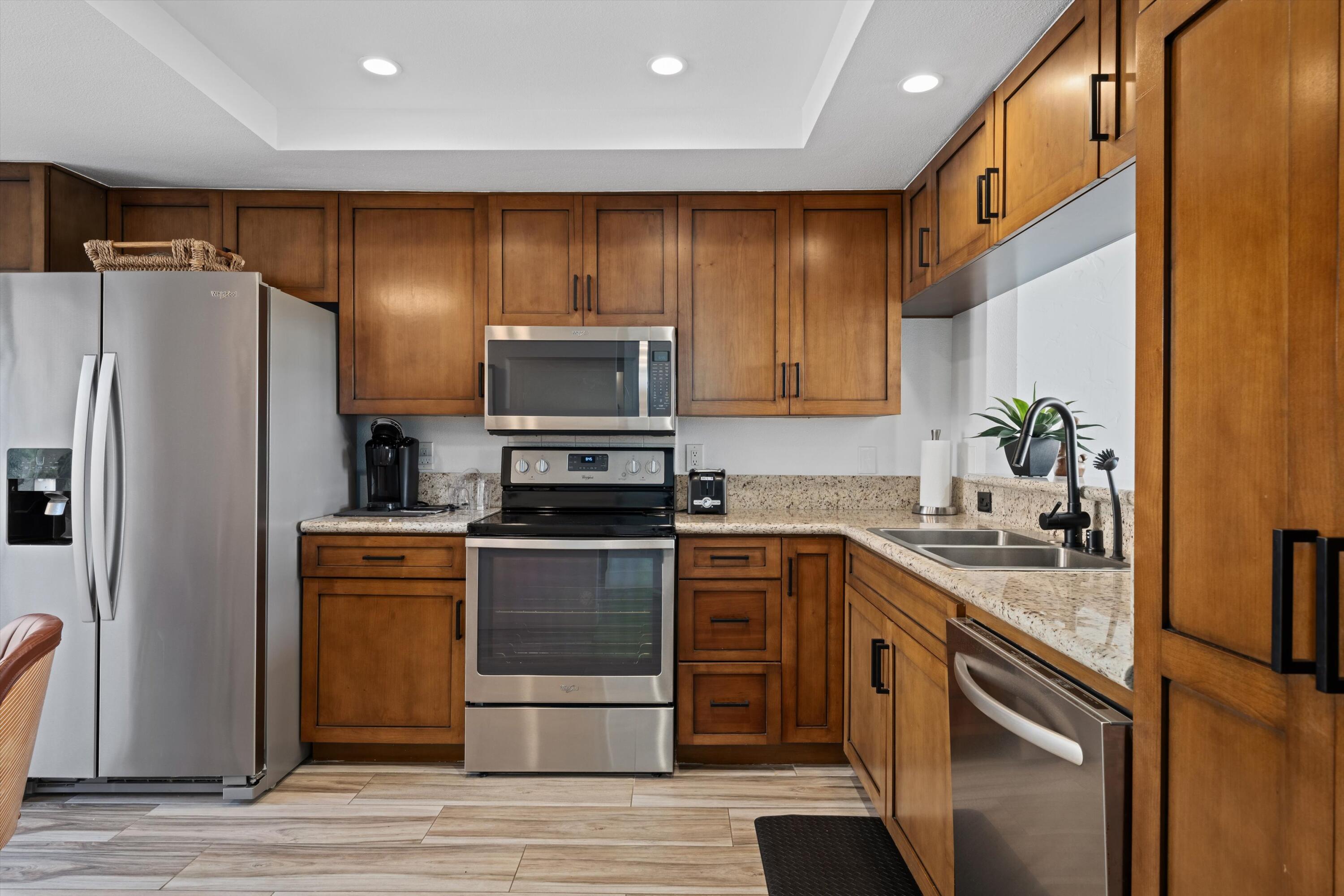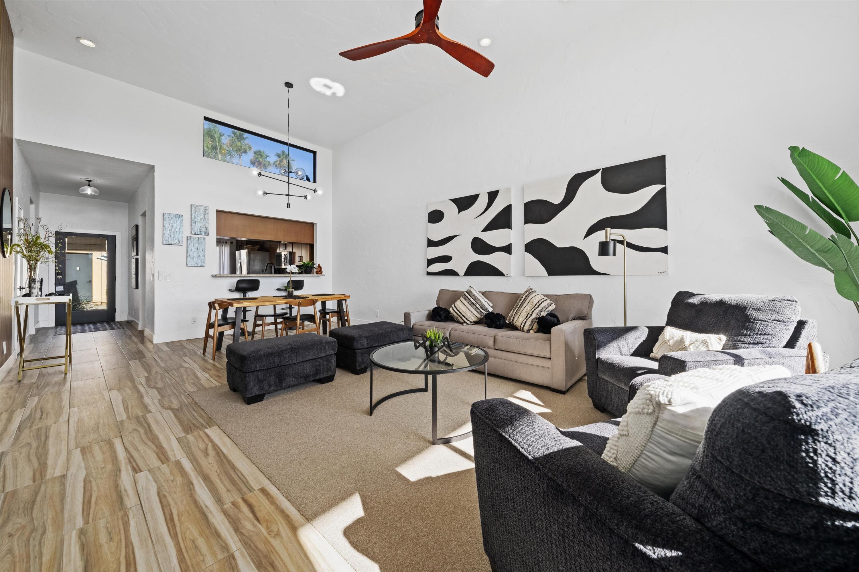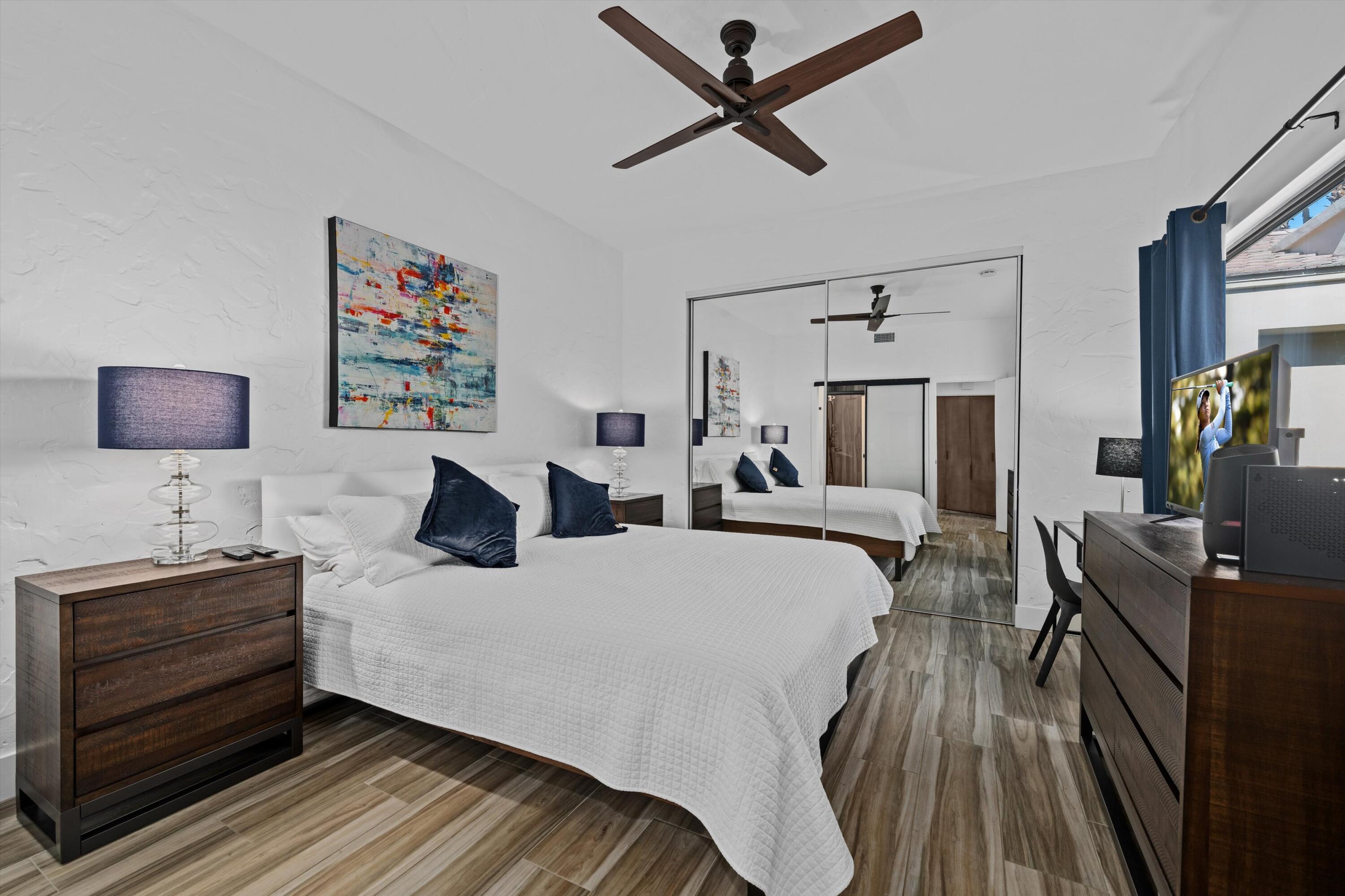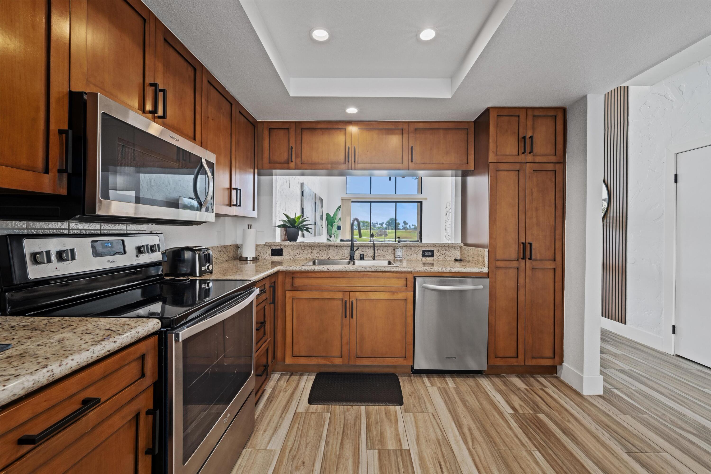 Welcome to this gorgeous, completely renovated 2 bed 2 bath 1330 sq ft condo located on the 11th hole of the TPC Stadium Course at World Famous PGA West! A spacious side entry brings you into patio area complete w/ dining table, umbrella & BBQ. Modern front door welcomes you w/ updated ceramic tile wood accent floors into a gourmet kitchen w/ custom cabinetry, granite counters, SS appliances & breakfast area. Moving into the living room area that has bright paint tones, high ceilings, trendy lighting, furniture & wall art along w/ large patio door for amazing light looking onto the back patio and golf course views. Spacious bedrooms are both highlighted w/ custom designed bathrooms that has all the modern trends and feel to them. Full tile showers, upgraded vanities make the space very light and fresh. The back patio has all the views and feel of what you would expect from a championship style golf course. Pride in ownership and attention to detail shows throughout this home. Community pool/spa area is just a short distance away along w/ main gate access. Old Town La Quinta dining & shopping area, Eldorado polo fields which is home to Coachella/Stagecoach music festivals and world famous La Quinta Resort are all nearby. Don't forget to visit Ernies clubhouse w/ recently updated bar/ restaurant inside the gates of PGA West.