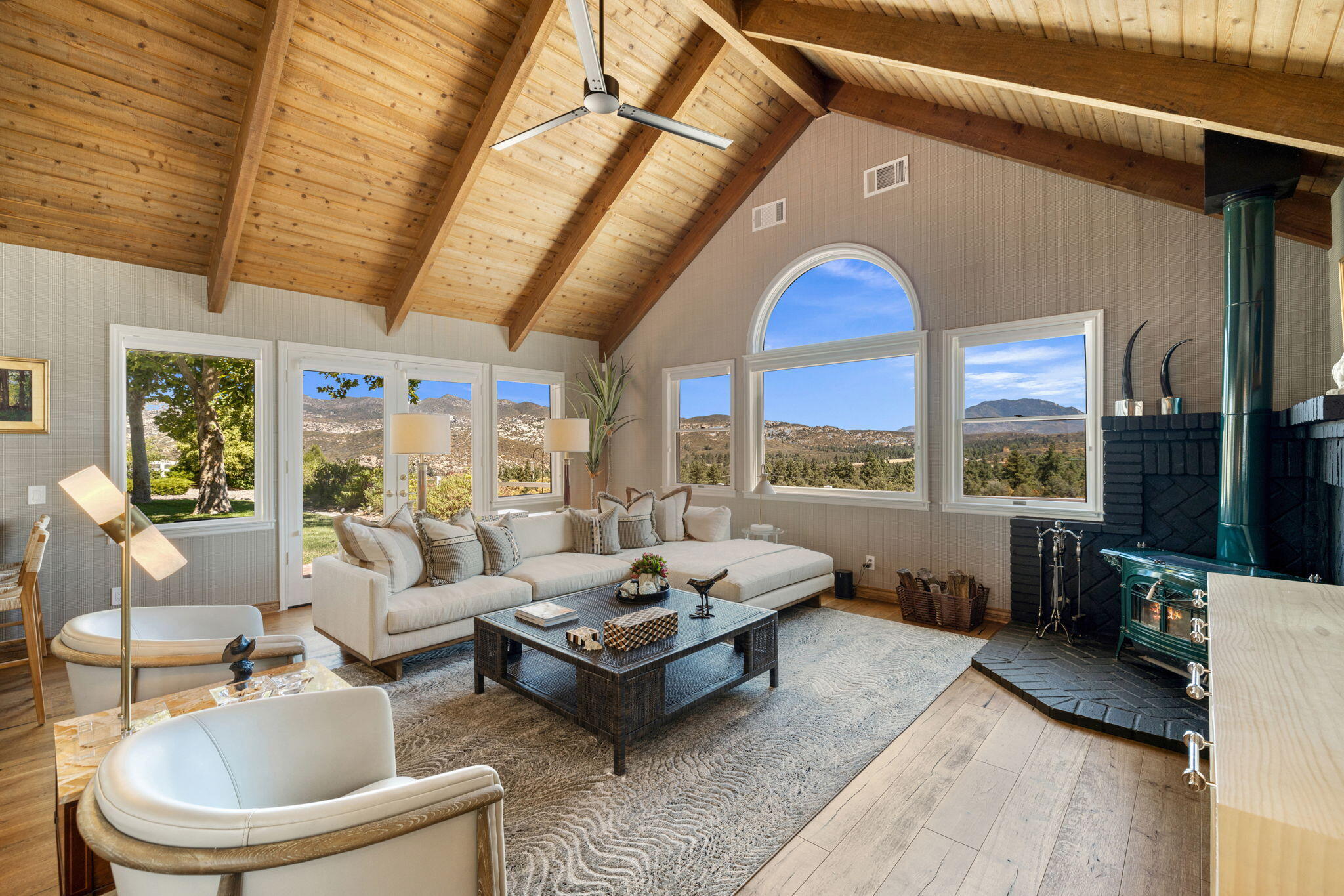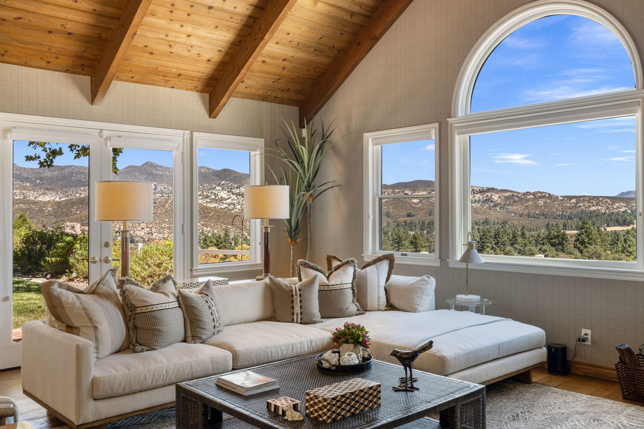 Welcome to your Garner Valley dream home, where luxury meets tranquility. This expansive 3,423 sqft home with endless potential is perfectly situated on 11.89 acres, offering the possibility for 5 bedrooms and 5 bathrooms. The property backs up to the San Bernardino National Forest, providing unparalleled privacy and breathtaking views. The second parcel offers endless possibilities, whether you envision a guest house, a barn, or something else entirely. Inside, you'll find designer finishes throughout by the renowned Richard Read Interiors. The main suite, located on the main floor, presents a hotel-like retreat with sweeping mountain views, a luxurious bath featuring a shower/soaking tub combo, and every detail thoughtfully designed. The chef's dream kitchen is equipped with top-of-the-line appliances, a farm sink, compactor, and stunning quartz countertops. Upstairs, four additional bedrooms and two full baths provide ample space for family and guests. Recent updates include new window treatments, built-in TVs, and a state-of-the-art Sonos sound system throughout the home. Additional features include a newly epoxied 2-car garage, a detached 2-car garage, and covered RV parking with hookups for two RVs. The attached garage includes a Tesla charging system and abundant storage. The property also boasts a central vacuum system and new central heating and air systems for ultimate year-round comfort. Every detail has been carefully crafted to offer the pinnacle of luxury living in Garner Valley.Interested in this Listing?