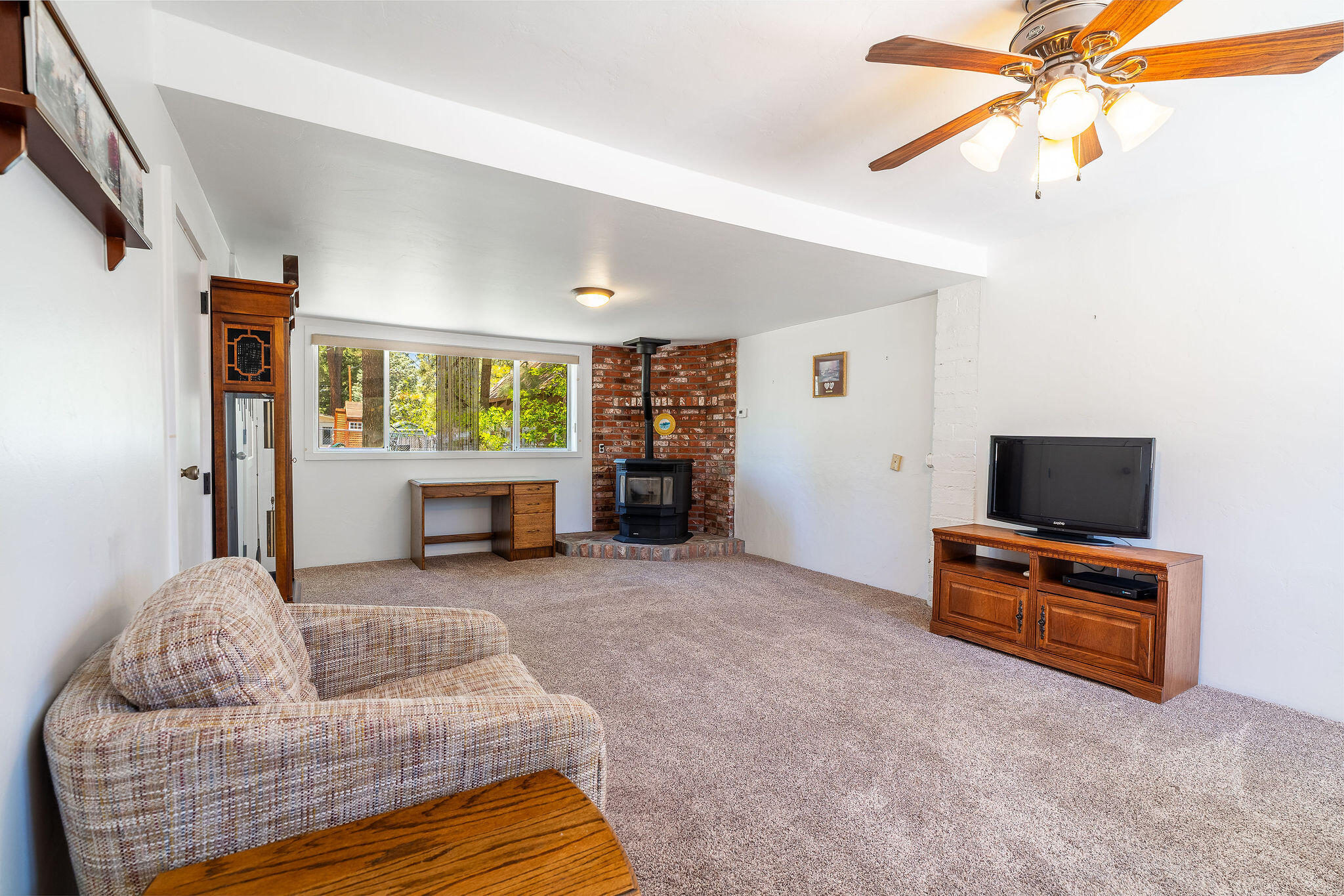 Don't miss this unique opportunity to own a well-maintained 1-bedroom, 1-bathroom home situated on a fully fenced 0.20-acre corner lot. Ideal for downsizers, first-time buyers, or anyone looking for a manageable home with extra space to work, store, and play. Step inside to find a cozy living space warmed by a pellet stove, a walk-in closet, a dedicated laundry room, and all appliances included for your convenience. The layout is functional and efficient, making it easy to maintain and enjoy. Outside, the property truly shines with a large storage shed, a carport, a small workshop-perfect for hobbies or projects-and RV storage with plenty of room to park your toys or tools. The fully fenced yard offers privacy, security, and space for pets, gardening, or entertaining. Whether you're seeking a quiet retreat or a low-maintenance home base with bonus features, this versatile property checks all the boxes. Schedule your tour today!Interested in this Listing?