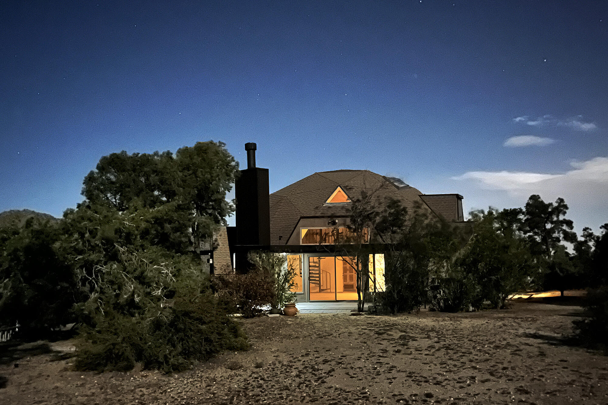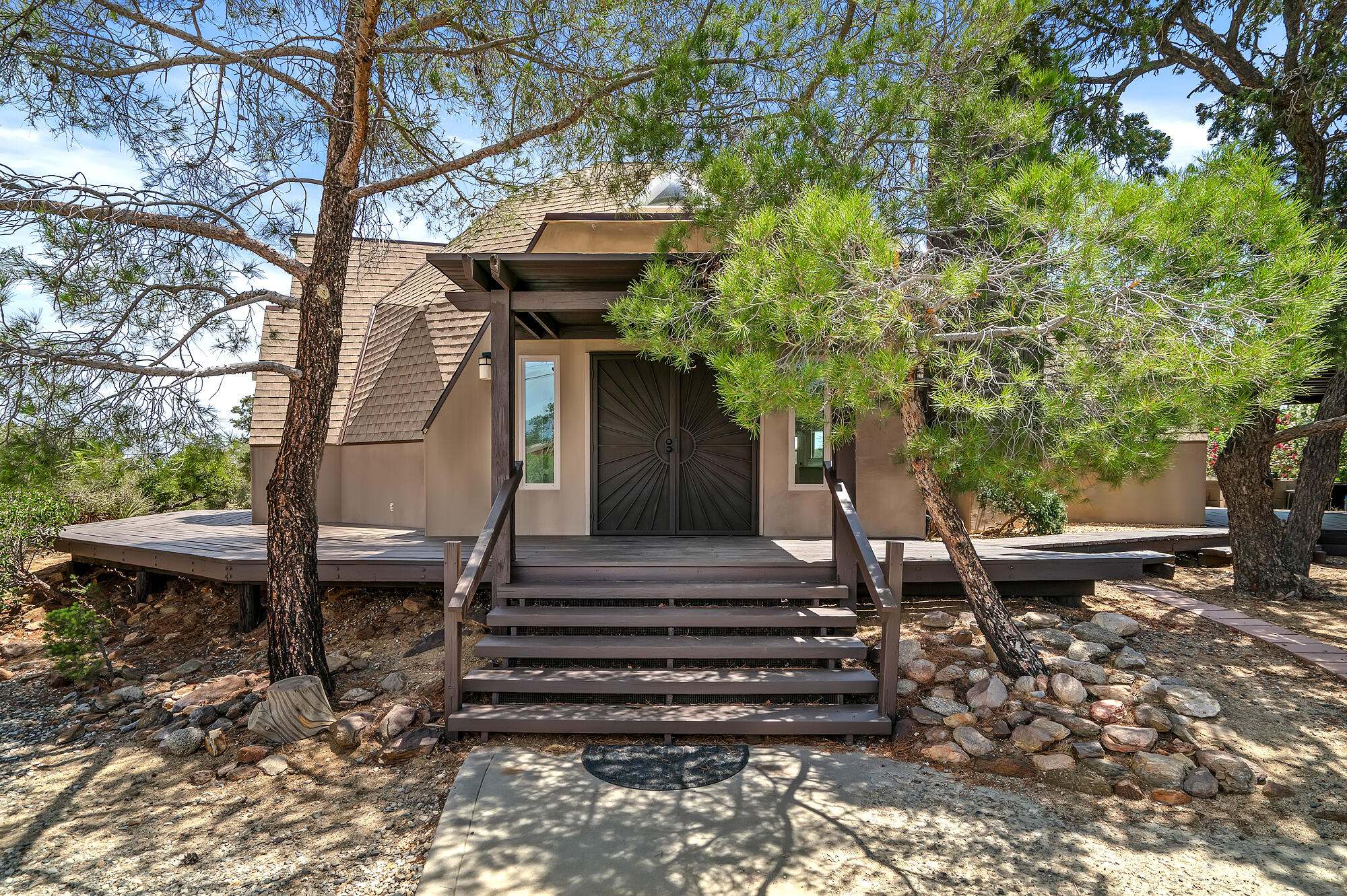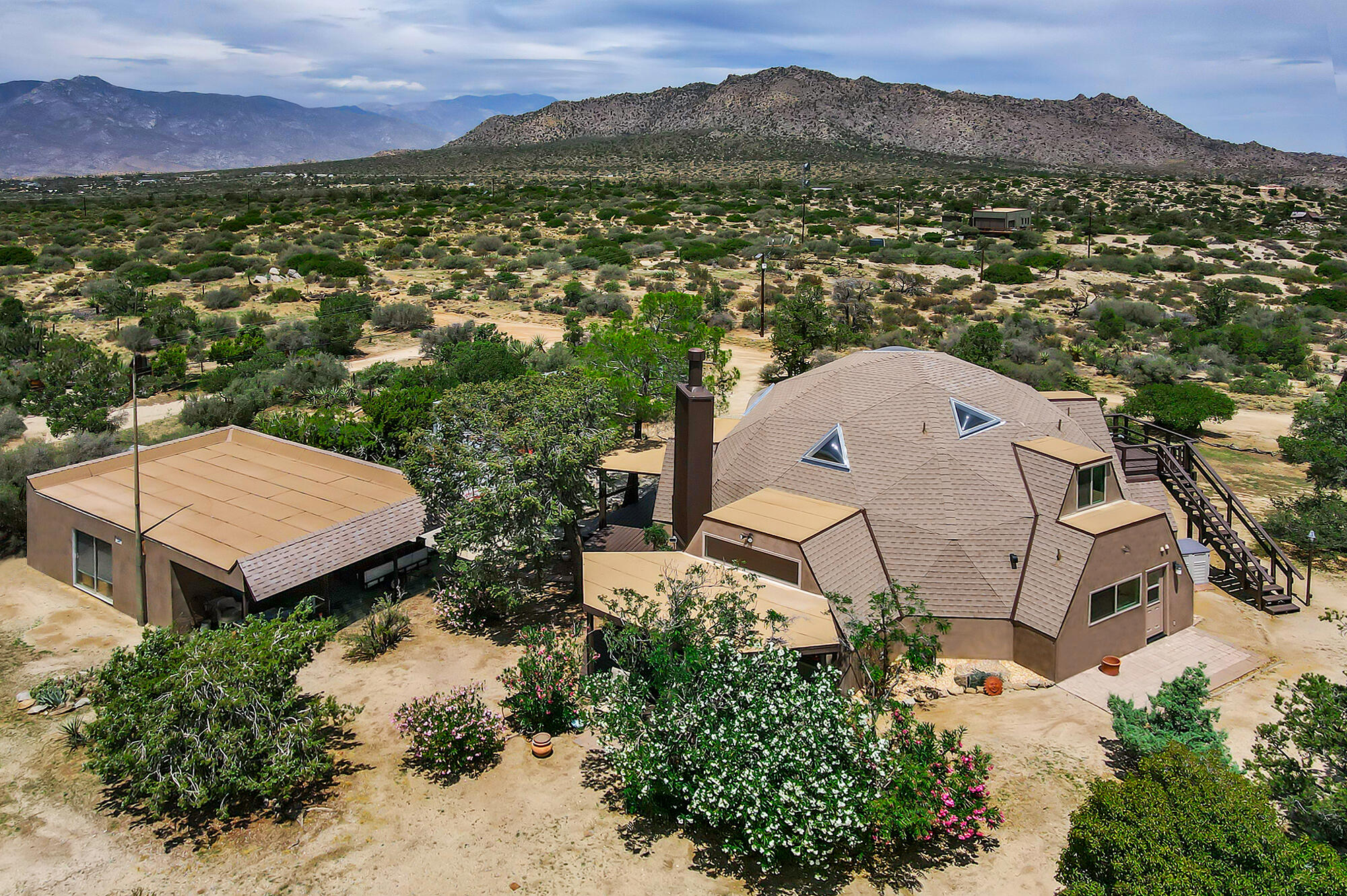 New Price Correction! Looking for an absolutely stunning, one of a kind view home on over an acre of beautiful, natural land, with all the amenities you would expect in an eclectic, modern, architect home? It resides in a national monument with breathtaking mountain and desert views wherever you turn your gaze. Just a 20 minute drive up scenic Hwy 74 from the desert cities below and you will enter the private community of Pinyon Crest. A different world awaits your arrival, one with fresh, clean mountain breezes 10-20 cooler than the myriad desert cities below. This upscale enclave owns its own community-shared water wells providing pure, clear water to all residents, graded roads, mailboxes and locking gates for security and privacy. This home is a classic design by renown architect R. Buckminster Fuller and is truly a standout property of this community. Recently completely and thoughtfully renewed inside and out, this iconic geodesic dome house flows with the land, while clear skylights and all new windows bathe the spacious interior in natural light. All of the generous living spaces are complete with outside views from every room. On your upper deck you are entranced as you watch sunsets paint day into dusk, experience crystal clear starry nights, planets, infinite galaxies of light that touch your soul, shooting stars streak across the night skies. You'll sleep with windows open to fresh, cool breezes, secure in the secluded sanctuary of the mountains. Come enjoy the peace of being one with the Universe in your beautiful new mountain home.Interested in this Listing?