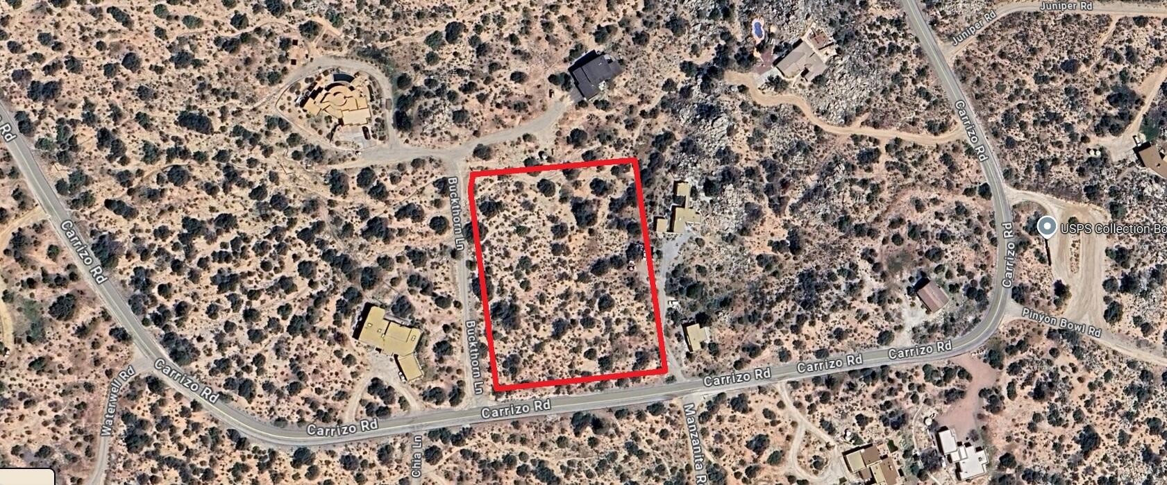 2.5 Acre Building Site, one of last few available lots on paved Carrizo Road. *** VERY MOTIVATED SELLER! *** Located in the middle of Pinyon Crest private community, just 12 miles from El Paseo in Palm Desert. Quiet and private mountain location. Cooler temperatures at elevation 3,800 feet above Palm Desert. Starry sky and mountain views. Access to electricity and community water is already at the property.The set of building drawings shown and renderings are available.The design is inspired by Midcentury Architect William Krisel.The street address of proposed building will be 60080 Carrizo Rd.HOA Fees $1,090 per yearHOA Association is 'Pinyon Crest Community Association'HOA link is http://pinyoncresthoa.org/0Taxes are $399.86 per year.