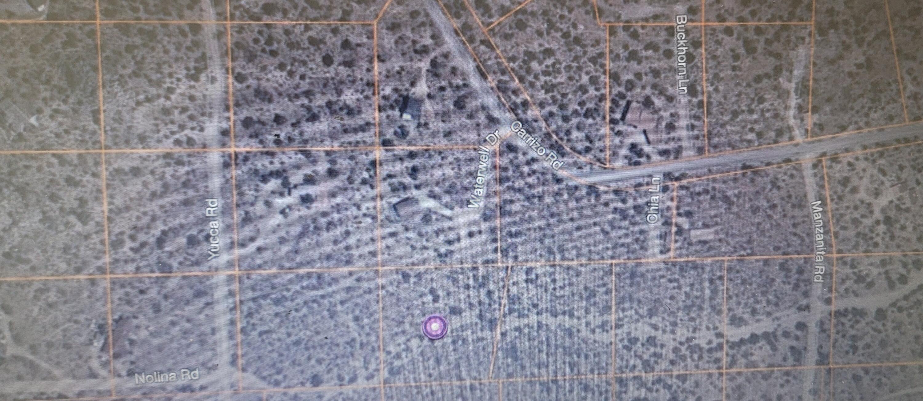 Take CA-74 W up the mountain and turn on Carrizo Rd. Take Carrizo Rd and turn left on Waterwell Dr. Subject parcel is located just passed the home on the right at the end round about. |