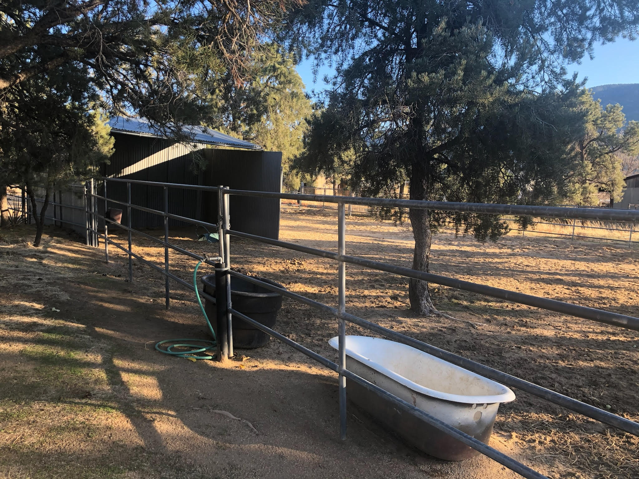 Nestled in the serene heights just a 20-minute drive from the desert.10.57 acres with electricity, well, storage tank & septic tank, The expansive horse property offers a unique blend of rustic charm & endless possibilities. With breathtaking mountain vistas as your backdrop, the property is perfectly equipped for both equine enthusiasts & those seeking a tranquil retreat. There is a 1-bedroom cozy & well-maintained, trailer providing a comfortable living space with all the essentials. Outdoor living spaces include an inviting outdoor kitchen, gazebo with firepit & dual outdoor bathrooms, each complete with showers, sinks, & toilets, ensure comfort & convenience amidst nature's beauty. The equestrian facilities include two spacious horse paddocks with covered area, a well-constructed round pen, & additional space tailored for goats or other animals offer ample room for your livestock to roam & thrive. The large acreage holds great promise for further development, including the potential to build a custom home & barn, making it a blank canvas for your dreams. Whether you're looking to develop the property further or simply enjoy its current array of features, this mountain retreat is a rare find. Embrace the opportunity to own a slice of paradise where peace, privacy, & possibilities abound.Interested in this Listing?