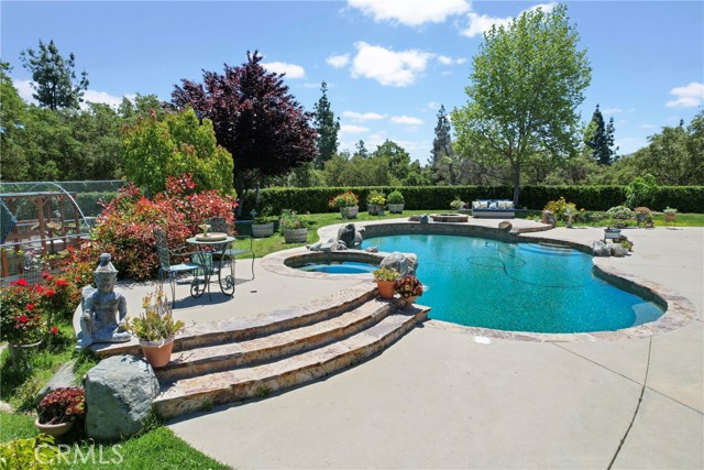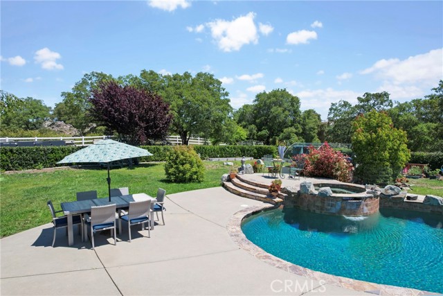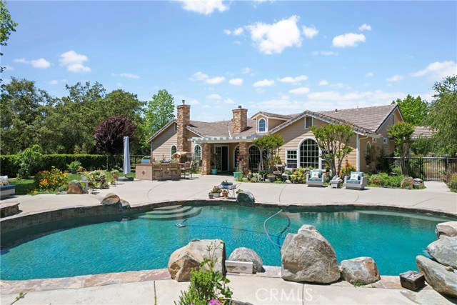 Welcome to this beautifully appointed single-story equestrian estate, tucked within the gated community of Meadow Oaks in the rolling hills of La Cresta. Surrounded by majestic oaks and peaceful pastures, the property has been thoughtfully upgraded for the sophisticated horse lover featuring a brand-new stable, private riding trail, multiple turnout areas, and full-perimeter fencing. The home offers a spacious 3-car garage with tandem parking and a bonus room currently used as a private office. Inside, you'll find elegant details like crown molding, a grand foyer, and a versatile flex room perfect for an office or music room. The open-concept family room is filled with natural light and anchored by a cozy fireplace and built-in entertainment center. A chef s kitchen awaits, complete with a 6-burner range, premium appliances, custom cabinetry, and granite countertops. All bedrooms feature ensuite bathrooms, and the luxurious primary suite boasts a fireplace and private patio access. The backyard is your personal oasis, with a sparkling pool, built-in BBQ, and plenty of room to entertain. With equestrian amenities, prime location, and a seller-offered rate buydown opportunity this home is the full package. Your La Cresta dream lifestyle begins here. Welcome home.Interested in this Listing?