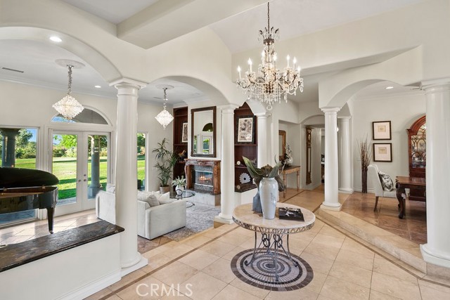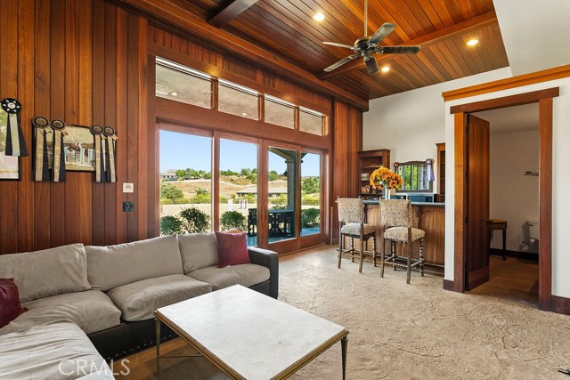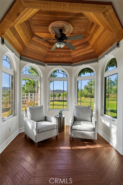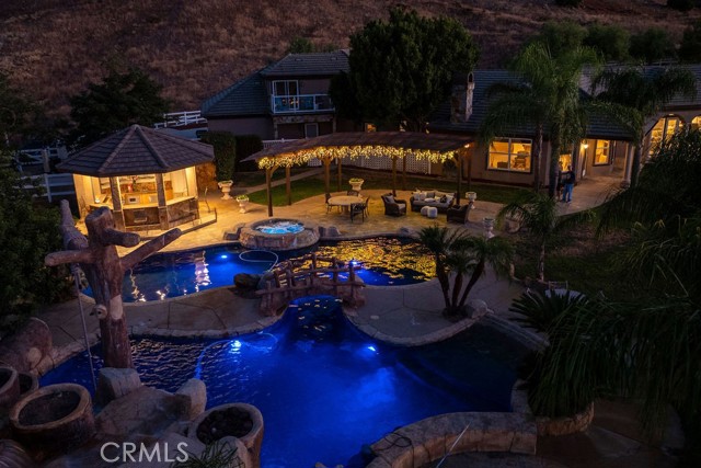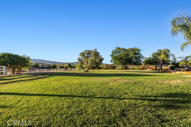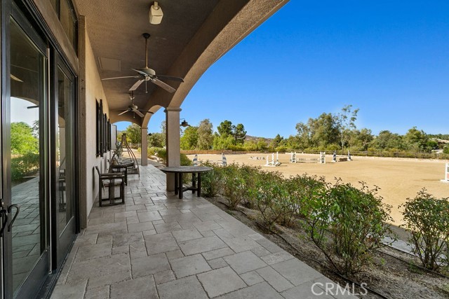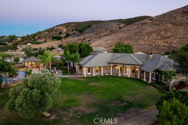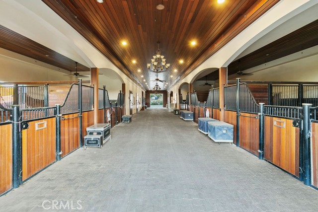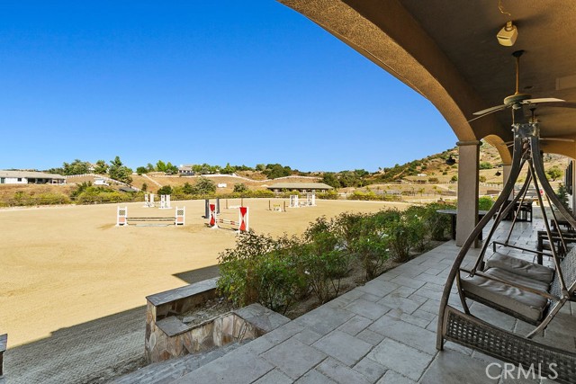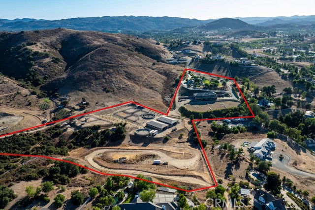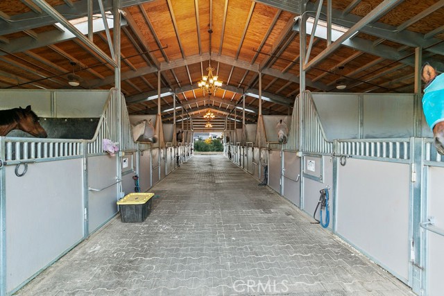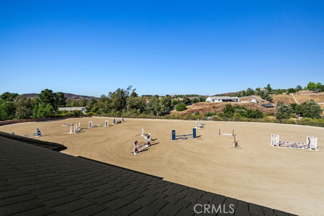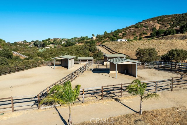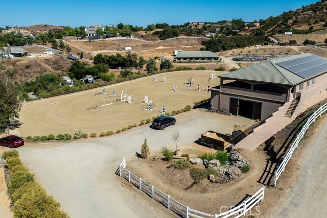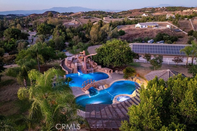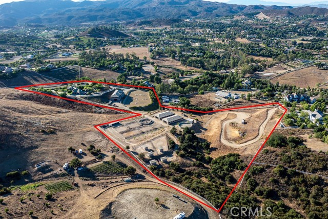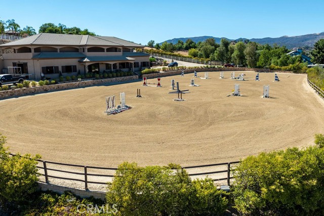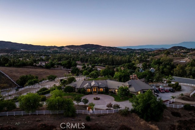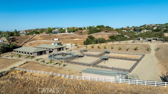 Welcome to Miracle Ranch a world-renowned equestrian training facility and luxury estate. Amazing opportunity to own one of the most prestigious panoramic view ranches in sought after La Cresta, high above Murrieta/Temecula, easy access to equestrian shows and events. This Equestrian Dream facility offers even the most discerning buyer an opportunity to have their own personal training center or run a business boarding for trainers and clients. Two separate lots total approx.14.9 acres. One lot can be used for an additional home, indoor arena, further pasture areas or sold off down the road. Enter this completely fenced estate through impressive double entry gates and driveway to a circular courtyard with sprawling single story home on expansive lot. Views from every window, endless lawns, elaborate amusement park type double pool with waterfalls, slides, cave, bridge Tarzan swing rope and more. Outdoor kitchen, huge patios and entertaining areas. Enter residence through double beveled glass doors to soaring entryway, beautiful formal living room with cozy custom fireplace and French doors to exterior. Large open floor plan, formal dining room for family parties, and spacious library/office area. Stroll along to massive family room with cozy custom fireplace, built-ins, bay window eating nook and chefs delight kitchen with top of line appliances (Wolf/Sub Zero), central island, breakfast bar and walk in pantry. Three secondary bedrooms and a 5th bedroom upstairs, presently used as apartment with bathroom, kitchen, balcony and more. The lavish primary suite sits in own private wing, offering large sitting area, private deck, double closets, soaking tub, and shower. 4/5 car garage completes the residence. The equestrian facilities are unsurpassed. Main mahogany-built barn with European fronts, 8 stalls: 5 stalls 16x20 and 3 stalls 16x16, double doors each end, top of the line finishes, fire sprinkler system, Nelson Auto waterers, speaker system, chandeliers, grooming stalls, utility area. All stalls have mattress flooring, offer exterior open windows with shutters, fans, barn aisle with rubber flooring, fly system, tack room, alarm, cameras office/feed room, lounge, bar, powder bath and viewing deck overlooking stunning 100 x 350 arena, Ebb & Flow under footing watering system, GGT footing. Two additional center aisle barns offer 14 stalls each with similar amenities. Total of 36 stalls. See amenities list for additional information.