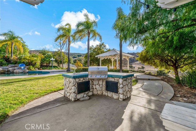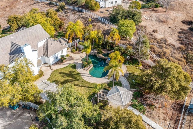This stunning 5-bedroom, 4.5-bathroom estate features a loft, small office space, stunning pool and hot tub, newly redone herringbone tile flooring, rough edge granite countertops, remodeled showers & bathtubs, with extensive wall treatments adding charm throughout.The spacious downstairs primary suite provides a luxurious retreat with a walk in shower and large primary closet. It has fully paid-off solar panel system with two backup batteries for energy efficiency and energy reliability. Well on property - not currently connected as the owner used public water connection. Enjoy soaring ceilings, a fantastic layout, and a seamless flow from the circular driveway to stunning front entry, dramatic staircase, living room with bar, formal vaulted ceiling dining room, chef's kitchen with a bright breakfast nook and large family room. Three of the secondary bedrooms have en-suite bathrooms. Light and bright, this home has recently been refreshed. Beautiful backyard oasis with a pool, spa, outdoor kitchen, gazebo, and stunning La Cresta valley views. With a large, usable front area, the possibilities are endless horse property, vineyard, orchard, or recreational space. Ample parking includes a spacious three-car garage and additional concrete parking areas. La Cresta offers a peaceful lifestyle with breathtaking scenery, private hiking and equestrian trails, and proximity to Murrieta s top-rated schools, shopping, dining, and medical facilities. Just minutes from Temecula Wine Country, this exclusive community provides a perfect blend of seclusion and convenience.Interested in this Listing?