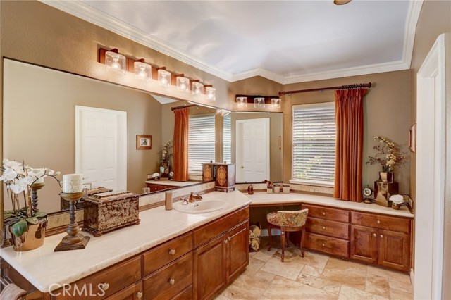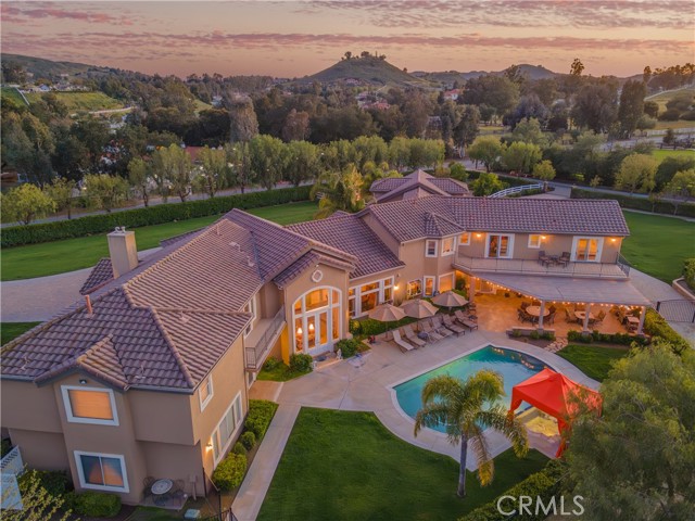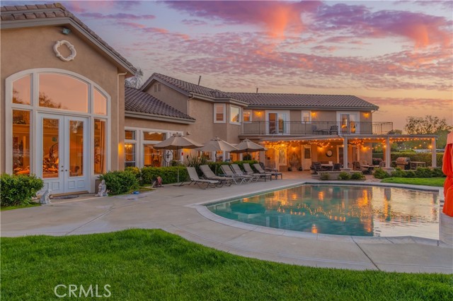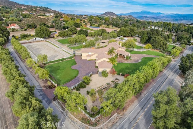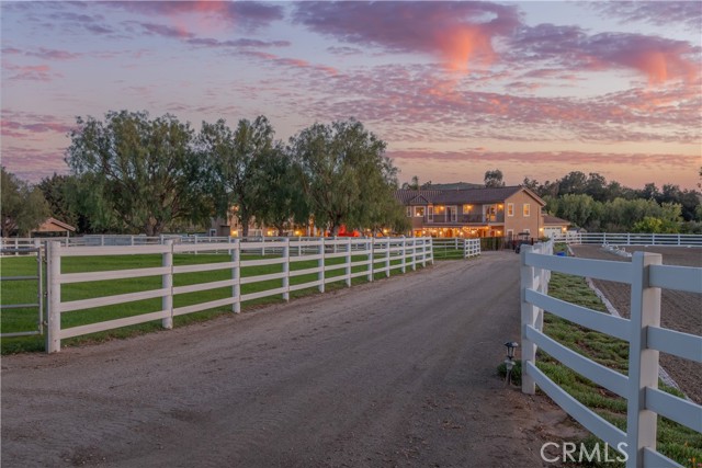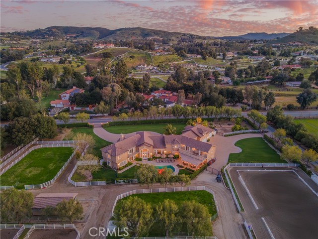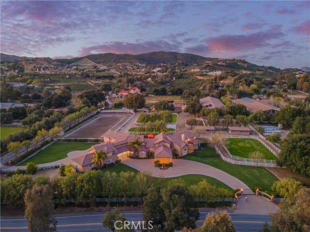 Welcome to this stunning gated equestrian estate that sprawls over 5 acres and offers an unparalleled blend of luxury and tranquility with over 8,500 square feet of living space. This horse lovers paradise epitomizes luxury living in the prestigious La Cresta Estates. An impressive motor court and covered loggia welcome you into a world of refined living. Upon entry, the formal living area boasts a gorgeous fireplace, soaring ceilings, and French doors that open to the expansive yard, pool, and entertaining area. The gourmet kitchen has dual Cove dishwashers and a large walk-in pantry with additional refrigeration and wine cabinet. The formal dining area serves as a natural extension of the living space and provides a perfect setting for intimate dinners or formal festive gatherings. The main level also offers a living suite, two offices and a large bonus room complete with cinematic entertainment and a full bar. Upstairs, a massive gym features floor-to-ceiling mirrors and a ballet barre. The primary suite is a sanctuary of indulgence, featuring a wet bar, fireplace, and two balconies with panoramic views of the estate and hills. The primary bathroom has an oversized soaking tub, dual sinks, vanity, heated stone floor, two walk-in closets, and a steam option in the shower. The outdoor oasis is a haven of leisure featuring a beautiful paver-stone driveway, a solar-heated pool, spa, and a sprawling area for al fresco entertaining. An equestrian training facility showcases an Olympic-level outdoor and covered arena. The covered arena is state-of-the-art and equipped with mirrors and premiere footing. This estate offers an 8-stall breezeway barn with indoor/outdoor box stalls, Mare Motel" with 4 indoor/outdoor stalls, and a 70-foot roll-up garage perfect for horse trailers, RVs, boats, or storage. Additional features include a tack room, washroom, feed room, laundry room, barn restroom, and detached cover hay barn. 3 grass pastures and 2 dirt turnouts provide ample space for horses to roam. You ll also find a gorgeous garden and orchard with over fifteen mature fruit trees. Extras include a 4-car garage with EV charging station, built-in full-house gas generator, and water well systems. Murrieta, California offers both private and public well-regulated schools that are known for their rigorous curricula and active community involvement. Additionally, the property is a short drive to the Temecula Wine Country with over 40 wineries to enjoy.Interested in this Listing?