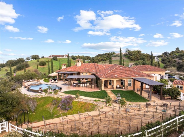 Set on 5.65 acres of rolling hills in the serene community of La Cresta, 21051 Via Sevilla is a luxurious 5,152-square-foot single-story estate that perfectly blends elegance, privacy, and the beauty of Southern California s countryside. With five spacious bedrooms, five bathrooms, an office, a game room, a library and an exercise room, this home was thoughtfully designed with every space in mind. Inside, the home impresses with its coffered lighting & natural flow. The gourmet kitchen is equipped with top-of-the-line appliances, ample storage in the oversized walk-in pantry, and a large center island, making it ideal for both everyday living & entertaining. The kitchen connects seamlessly to the generously sized living and dining areas, where large windows invite in natural light and showcase stunning views of the surrounding landscape. The wet bar includes a temperature-controlled wine room that holds up to 400 bottles of your favorite wine. Retreat to the luxurious primary suite, which features two fireplaces, a spa-like bathroom, and two spacious walk-in closets. Each additional bedroom offers en-suite bathrooms, walk-in closets, with thoughtful details throughout the home that reflect quality craftsmanship and design. Step outside to the resort-style pool, spa, and outdoor kitchen area that blends perfectly with the beautifully landscaped grounds and stunning views. The estate includes a charming boutique vineyard a rare and delightful feature for wine enthusiasts or those who appreciate the art of winemaking. Water your grapes and fruit trees with the home s 100 GPM well. There s plenty of space and flat land to add equestrian facilities, a guest house, ample parking, or simply enjoy the open space and tranquility. La Cresta is known for its peaceful, upscale living, and this property embodies that lifestyle. With breathtaking sunsets, mountain views, and ample room to roam, this estate offers a unique opportunity to live in harmony with nature without sacrificing comfort or sophistication. Adjacent to La Cresta lies the Santa Rosa Plateau, a protected ecological reserve encompassing approximately 9,000 acres of preserved land. This sanctuary safeguards diverse ecosystems and local wildlife. The Santa Rosa Plateau s commitment to conservation ensures that these landscapes remain undisturbed, offering a peaceful retreat and a glimpse into California s natural heritage. Come see what La Cresta has to offer with nearby hiking, biking & horse trails.Interested in this Listing?