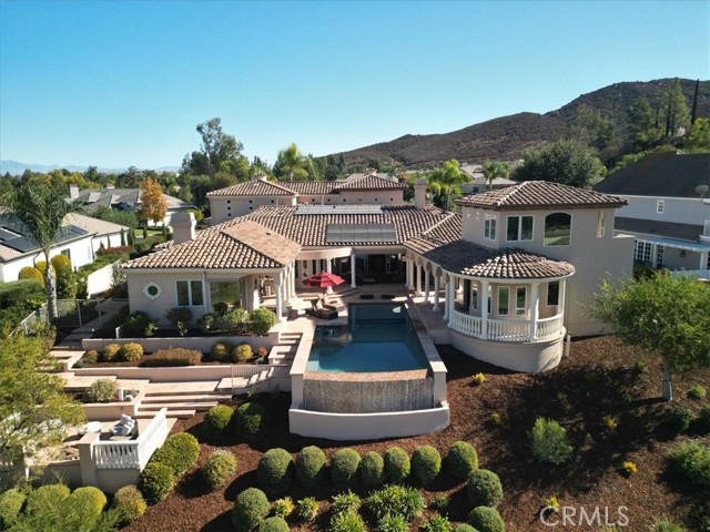 Welcome to the best of luxurious gate-guarded Bear Creek. Nestled in a prestigious, gated community, this exceptional Mediterranean-style residence offers unparalleled luxury and stunning panoramic views of the surrounding hills and award-winning Jack Nicklaus Bear Creek Golf Course. Boasting a timeless Tuscan design with a double-tile roof and Romanesque columns. This estate features 4 spacious bedrooms, 5.5 elegant bathrooms, and meticulously crafted living spaces. Oiled white oak floors, dramatic arches, and high ceilings enhance the home s elegance throughout. The grand entry sets the tone with an impressive, curved staircase leading to a second-floor loft and two bedrooms, each with a custom bath. The main level includes a gourmet kitchen equipped with top-of-the-line Viking appliances, including a double oven, 6-burner stove, center island with popup ventilation, Gaggenau grill, wok station, and fryer. The chef s kitchen seamlessly flows into the expansive living and dining areas, perfect for entertaining. The primary bedroom suite is a serene retreat with stunning views of the infinity pool and golf course beyond. It features a luxurious bath with a large walk-in shower, separate soaking tub, and a huge custom walk-in closet. In addition to the main residence, this estate includes a detached guest house with private bath, and a detached two-story office with a living area, fireplace, and a half bath, plus an upper-floor workout room with walk-in shower. For ultimate convenience, the property is equipped with a state-of-the-art Savant lighting system and electronic controls for media, all accessible via cell phone or panel. Entertain in style with an infinity pool with waterfall, a large Viking BBQ with vent hood, a cozy gas firepit area, and a 10-seat Italian glass-wrapped family room wet bar with a central fireplace. Enjoy your very own soundproof movie theater, complete with a 120 projection screen and custom sound system. Recent upgrades include over $50,000 in electrical enhancements, 5 HVAC systems (new in 2023), and a fully owned $60,000 solar system with 62 panels. This estate is part of a private, gate-guarded community with exceptional amenities including pickleball, hard court and clay tennis courts, a big fitness center, heated Olympic pool, and a rentable community center. Don t miss this rare opportunity to own this breathtaking estate at a reduced price.Interested in this Listing?