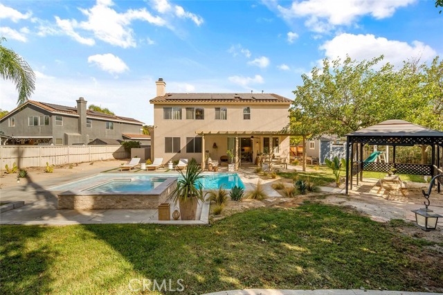 THIS WEST MURRIETA POOL HOME IS A WOW FROM THE MOMENT YOU ENTER! And an even bigger WOW when you see the epic back yard with brand new pool & spa, storage outbuilding, gazebo, custom lighting, water-efficient landscaping, outdoor living space and ROOM FOR AN ADU! If you are looking for a totally turnkey pool home, with fresh designer touches, lots of space, huge lot, and a pool that will make you the envy of all your friends, this is it! With solar, low taxes and NO HOA, you will save thousands of dollars per year living in one of the best west-side locations, biking distance to Historic Old Town Murrieta and close to everything - Award winning schools (including the renown Cole Canyon Elementary), shopping, parks, hospitals, restaurants, and even hiking on the Santa Rosa Plateau. The West Murrieta vibe exudes a sense of peace, with mature trees, wide streets, very little traffic, quiet neighborhoods, the conveniences of town, and a natural backdrop of the Murrieta foothills and Santa Rosa Plateau Ecological Reserve. The star of the show, though, is this gorgeous home on over ¼ acre, which has been meticulously remodeled, providing exciting, designer-detailed spaces & plenty of room for all even room for an ADU! Through the charming front courtyard, you will enter to a dramatic 2-story ceiling and staircase leading to a huge bonus room, perfect for kids playroom, media room, or whatever you need it to be. The primary bedroom with retreat, ensuite bathroom, soaking tub, separate shower and huge walk-in closet are just across the hall. Make the primary bedroom retreat with its wall of built-in cabinetry an office, library, craft room or even a baby s room. So many options! The 2nd & 3rd bedrooms have a Jack-n-Jill bathroom and downstairs is the 4th bedroom. Head outside to the backyard for your next treat! The oversized corner lot (12,000+ sf) has been impeccably designed, providing open usable spaces, mature trees, a built-in sitting area, large covered patio, storage, beautiful lighting, and wait for it a brand new designer pool with osmosis filtering & 12-person spa. Every day, you can enjoy your own private luxury resort! *****West Murrieta is a very special place with low tax rates, very little traffic and an easy lifestyle. Nearby are schools, restaurants, hospitals, shopping, Santa Rosa Plateau Nature Reserve, 15 Fwy and the famous Temecula Wine Country. All less than 1.5 hours from LA, SD, OC, Palm Springs & Big Bear.Interested in this Listing?
