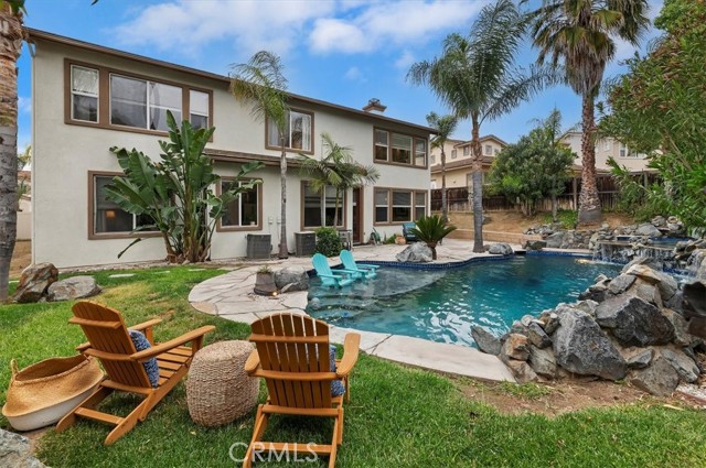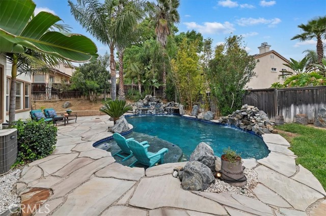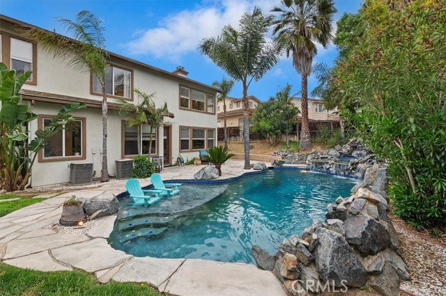 Nestled in the highly sought-after Copper Canyon neighborhood, WITHIN WALKING DISTANCE TO COLE CANYON ELEMENTARY SCHOOL, this beautiful POOL HOME offers 3,441 square feet of living space and 8,276sf lot with an extra large side yard to expand outdoor living. It features 4 Bedrooms plus an Office (potential 5th Bedroom on the main floor), a spacious Loft, 2.5 Baths, and both a 2-car and separate 1-car Garage (ideal for potential rental income by converting the single car garage into a casita/ADU). The private, courtyard entrance adds to the home s appeal. The chef s Kitchen boasts granite countertops, a large island, stainless steel appliances, double oven, walk-in Pantry, and a built-in desk area, all open to the Family Room with a stone surround fireplace. The first floor also includes a formal Dining Room, Living Room, Office, half Bath, and Laundry Room. Upstairs, you ll find the expansive Primary Suite featuring two large walk-in closets, soaking tub, walk-in shower, and a private balcony with scenic mountain views. The second floor also includes three additional Bedrooms, full Bath, and a generous Loft. The backyard is your own private oasis, complete with a custom 11-foot deep SALTWATER POOL, an oversized 10-person SPA, three waterfalls, a shallow wet deck with Tennessee blue flagstone, and lush tropical landscaping. This home is ideally located near walking trails, parks, top-rated schools, shopping, and Temecula Wine Country just down the road.Interested in this Listing?