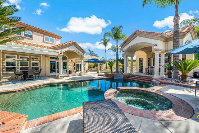 PRICE REDUCED. Discover the perfect blend of country charm, city convenience, and a dash of glamour at this breathtaking 4-bedroom, 3.5-bathroom estate located in the heart of Murrieta. Every inch of this home reflects the original owner and designer s meticulous attention to detail, creating a space that's both stylish and functional. Step into your own private paradise, featuring an entertainer's dream backyard complete with a sparkling POOL, relaxing SPA, built-in BBQ, and a standalone patio structure with a cozy fireplace. Whether hosting friends or enjoying a quiet evening, this backyard is sure to impress and deliver lasting memories. The journey begins as you drive through a private security gate and pass the front yard, which is a peaceful, landscaped retreat . As you enter, you re greeted by a stunning open floor plan revealing a home designed for ultimate comfort and convenience. The DOWNSTAIRS primary suite is a luxurious sanctuary, complemented by a beautifully upgraded bathroom. The HUGE kitchen is a chef s dream, featuring a gorgeous granite island, SubZero refrigerator, and top-of-the-line appliances. Upstairs, you ll find a theater room with a balcony and a secret door leading to a private, spacious bedroom. Two additional bedrooms and bathrooms ensure ample space for family or guests. A small loft and bonus room, along with an attic for additional storage, complete the layout of this exquisite home. Outside, an additional driveway offers ample parking for RVs, boats, or recreational vehicles. Two RV clean-out stations are conveniently located along this secondary driveway that winds around the front of the property and leads to a standout feature, which is the massive 2,400 sq ft (60x40) steel building, discreetly tucked away from view. Ideal for an entrepreneur, or for storing recreational toys, exotic cars, or other valuable belongings or to use as a complete workshop powered by 220 amp service. With ample space, this versatile building enhances the property s functionality. The home is truly special, where you can live, work, entertain and store all your prized possessions in style. With over 4,000 sq ft of living space on a 2.16-acre lot, there is a high-producing well to meet all your water needs. Conveniently located just 20 minutes from the Temecula wineries and Old Town Temecula, within an excellent school district, and only minutes from the I-15 and I-215, this home offers both serenity and accessibility.Interested in this Listing?