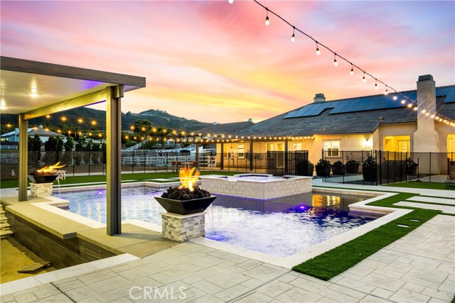 Welcome to luxury living in Wynfield Estates gated community, located in West Murrieta. This grand 4,086 sq ft home offers a comfortable lifestyle on 2.85 acre lot, ensuring privacy. Property offers four car garage with ample storage. For your peace of mind and entertainment the pool is gated for safety and includes a TV and sunken bar area. The home is equipped with solar panels, two back up batteries tankless water heater and water filtration system. Backyard is fully fenced and secured. Step inside to find elegant Travertine floors and 10 foot ceiling with crown molding. A bar and serving area right off the family room. Extra large kitchen island with granite countertops and abundant storage. There are four bedrooms, each with walk in closet and individual bathrooms. A convenient half bath is located near the laundry and mudroom. Luxurious primary suite offers two large closets with amply area to place all your items, large windows that overlook your gorgeous pool /spa and private fireplace. The formal living room also features a grand fireplace with large french doors leading to a comfortable patio area with fireplace. For those who work from home. A office space is located in front of home with access to the large front porch. Last but not least a play ground area for the children. MURRIETA A FAMILY ORIENTED CITY WITH EVERYTHING A FAMILY WILL NEED PARKS AND REC HIKING ,GREAT SCHOOLS ,3 HOSPITALS, AND IS RANKED ONE OF THE SAFEST CITYS IN CALIFORNIA . WYNFIELD ESTATES IS A COMMUNITY THAT EMPHASIZED EXCLUSIVITY... YET, ONLY 15 - 20 MIN FROM OLD TOWN TEMECULA, AND ITS FAMOUS WINERIES, PECHANGA CASINO, SHOPPING AND ENTERTAINMENT.Interested in this Listing?