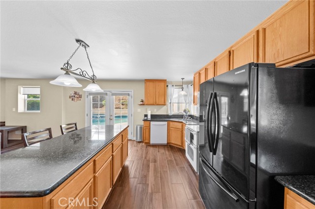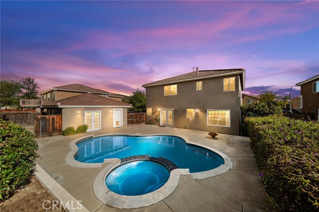 Tucked away at the end of a quiet Murrieta cul-de-sac, this move-in-ready pool home delivers the SoCal lifestyle without the HOA. A long driveway leads to a detached garage ideal for a workshop, gym, or future ADU and a private, oversized lot where a sparkling pool and raised spa anchor the backyard oasis. Inside, you ll find zero carpet: dark wood-look laminate grounds the open main level, while lighter tones brighten the upstairs. The chef-friendly kitchen flows effortlessly into the family room and out to the patio, perfect for seamless indoor-outdoor entertaining. A full bathroom on the main level opens up the potential to add a fifth bedroom. Upstairs, four generous bedrooms include an expansive primary suite with dual walk-in closets and a spa-inspired bath. Pair a tranquil, low-traffic neighborhood with top-rated Murrieta schools and quick access to I-215, shopping, and Temecula wine country, and you have the ideal spot to settle in for summer. Come see why this property is the total package space, style, and a resort backyard all in one.Interested in this Listing?