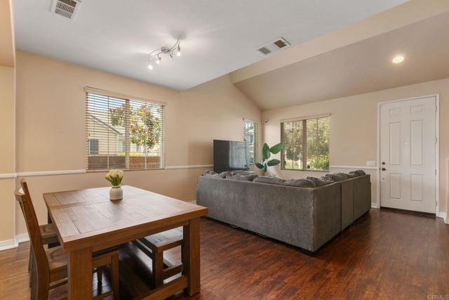 Beautiful 4 bedroom and 2.5 bathroom home located on a corner lot. Enjoy fireplace in living room. Kitchen with ample amount of storage offers a breakfast bar and opens up to a dining area. All bedrooms are located upstairs. Great size primary bedroom offer an ensuite bathroom with a separate tub and shower as well as a large walk in closet. Laundry room is conveniently located on the second level. In addition, you will find a 3 car tandem garage for extra storage and a low maintenance backyard. This homes offers a community pool, club house and a tot lot with low HOA fees. Centrally located close to schools, shopping and access to 215 freeway.Interested in this Listing?