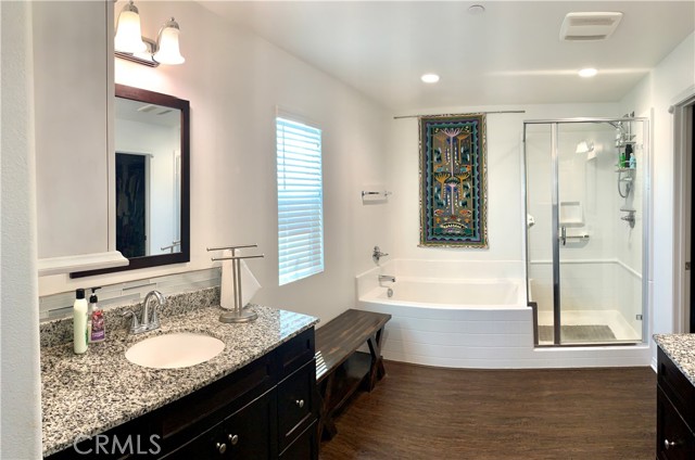 Gorgeous Murrieta Home with No HOA & Owned Solar. This Stunning Home has been Professionally Landscaped and Features a Formal Entry, 5 Large Bedrooms, Den/Office (possible 6th bedroom), Cozy Loft (possible 7th bedroom) , Expansive Great Room with Spacious Living Room, Kitchen, Dining Area and Luxury Vinyl Plank Flooring Throughout. There is a Large Downstairs Bedroom and Full Bathroom. The Kitchen includes Upgraded Cabinets, Granite Counters, Custom Tile Back Splash, Stainless Steel Appliances, the Impressive Island includes a Stainless Steel Sink, Water Filtration System, Dishwasher, Custom Lighting and Seating space for your guests. The Walk in Pantry has Custom Built-ins for all your storage needs. The Luxurious Master Bedroom has a Large En Suite Bathroom with Large Soaking Tub, Walk in Shower, Double vanity, Walk in Closet with Custom Built-in Organizers. All additional Guest Rooms are Quite Large and have Custom Built-in Closet Organizers and All bathrooms have Upgraded Tile and Cabinets. The Cozy Loft is an added bonus! The Great Room and Dining Room have 3 Sets of French Doors that lead out to the Private Back Yard that has been Professionally Landscaped with a Large Custom Patio, Insulated Aluminum Patio Cover, Remote Controlled Sun Shades, Custom Pavers, Custom Lighting, Fountains, Vibrant flowers, Plants, Trees. This Serene Yard is Perfect for Entertaining! The 3 Car Garage has a Utility Sink, Tankless Water Heater and Plenty of Room for Storage! The Owned Solar will provide Energy Cost Savings! This Amazing home is located near Schools, Parks, Shopping, Wineries, Costco, Loma Linda University Medical Center , Kaiser Permanente and the 215 & 15 freeways for an Easy Commute. This home is a Must See!Interested in this Listing?