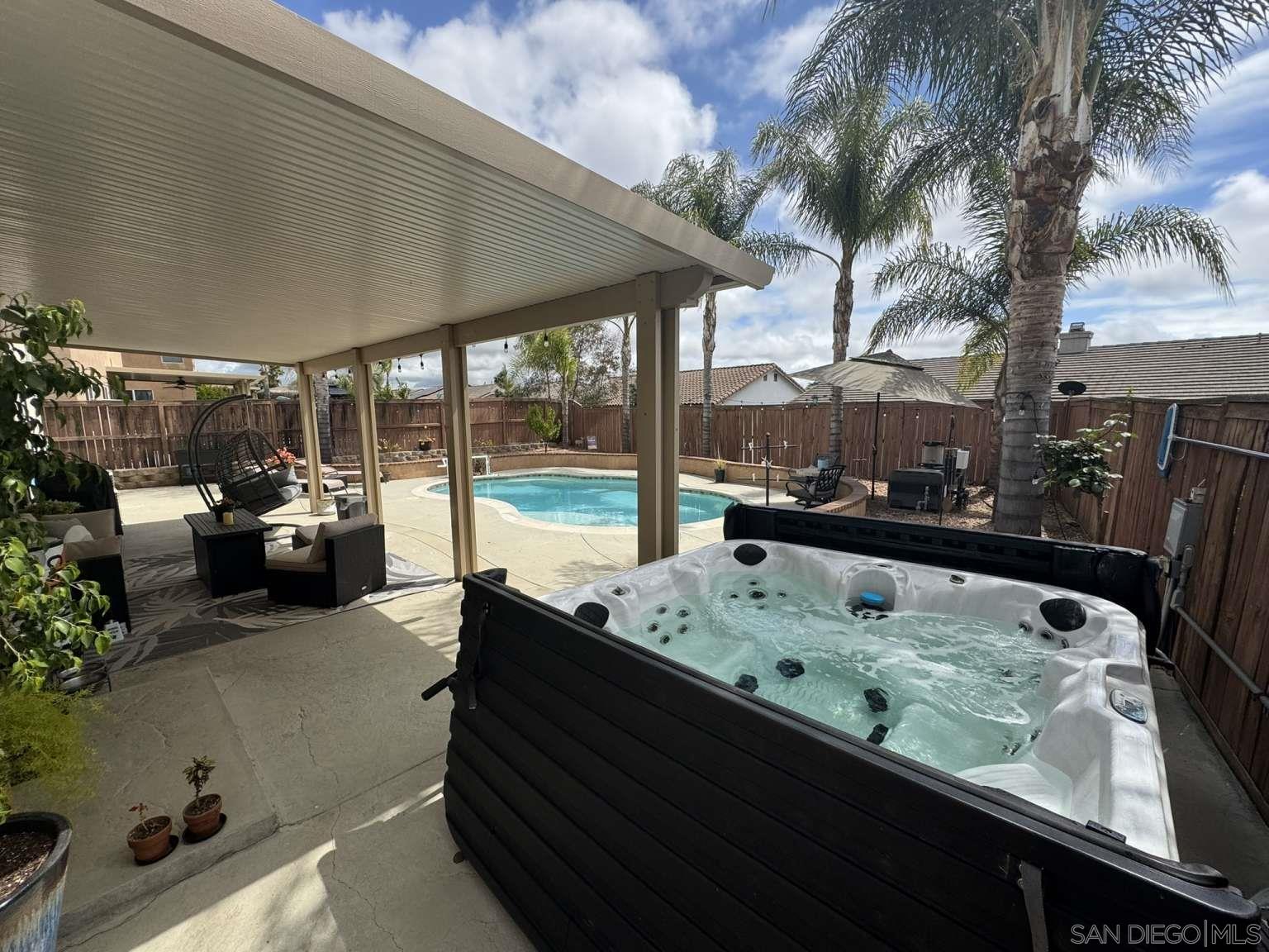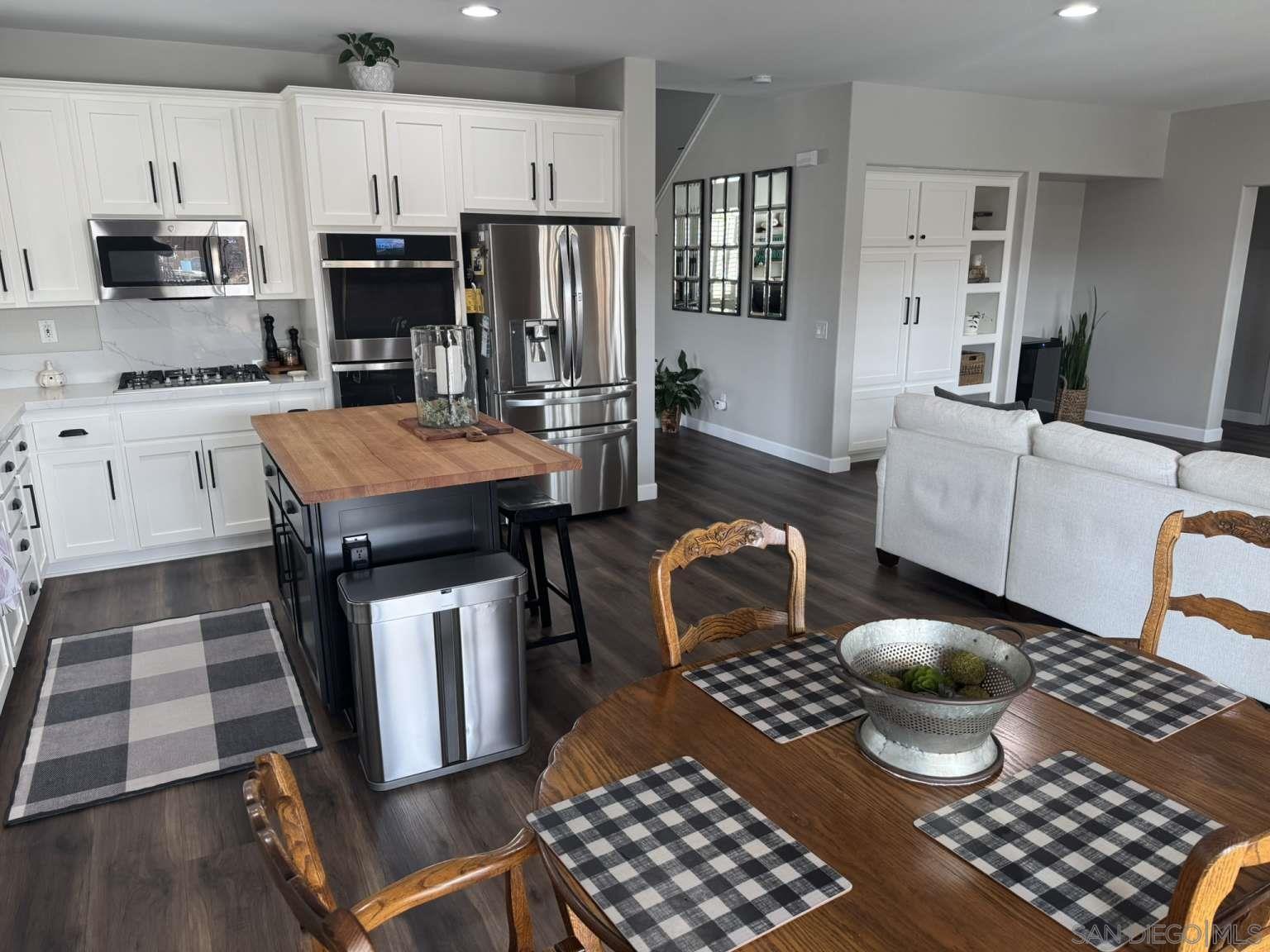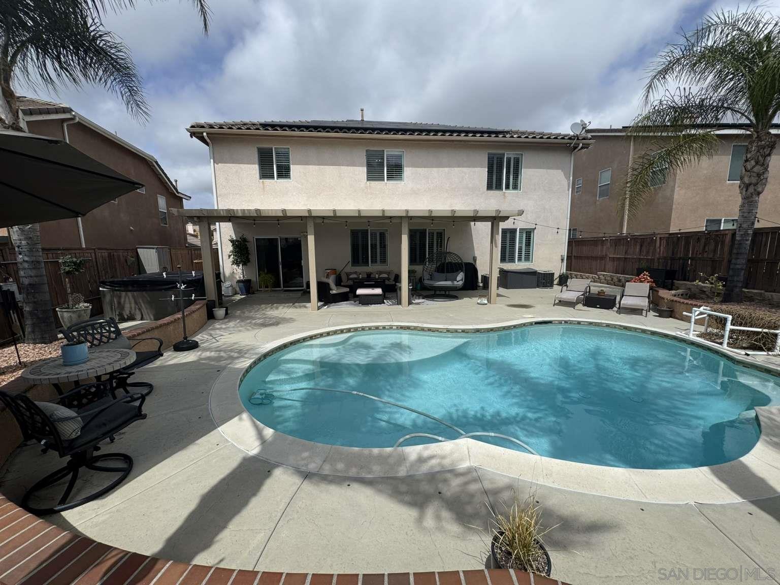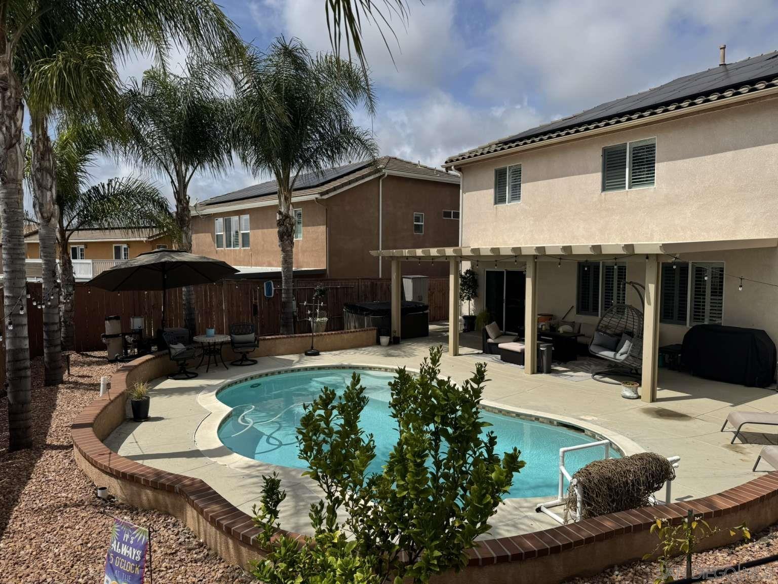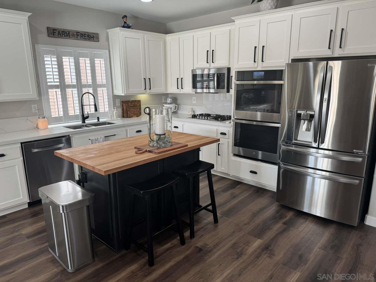 The heart of the home features a spacious raw Boos Butcher Block, perfect for meal prep or entertaining. Brand new quartz countertops provide an elegant touch, while the upgraded 5-burner gas stove with cast iron grates elevates your cooking experience. Enjoy convenience with a dual oven system that includes an air fryer, proofer, and Wi-Fi connection for remote operation, making mealtime a breeze. A timeless look with high-quality shaker-style cabinets and ample storage throughout. Premium Bosch dishwasher ensures efficiency, and the brand-new microwave provides convenience. A large pantry with stylish smoked glass doors offers both functionality and a sleek look. Enjoy laminate flooring throughout the home, paired with elegant 4 3/4" baseboards. Thoughtfully designed custom built-ins in the living room provide both style and storage. Elegant shutters throughout. The 2 master walk-in closets include custom built-ins and a convenient hamper. The entire home has been freshly painted, and ceiling fans are installed throughout for optimal comfort. Enjoy the Southern California weather under the patio cover or take a dip in the pool and unwind in the jacuzzi. The home comes equipped with solar panels and 2 Tesla Powerwall whole house batteries, ensuring you have reliable electrical backup for peace of mind. Situated in the highly sought-after Vista Murrieta High School zoned. This meticulously updated home blends modern features with timeless style perfect for anyone!Interested in this Listing?