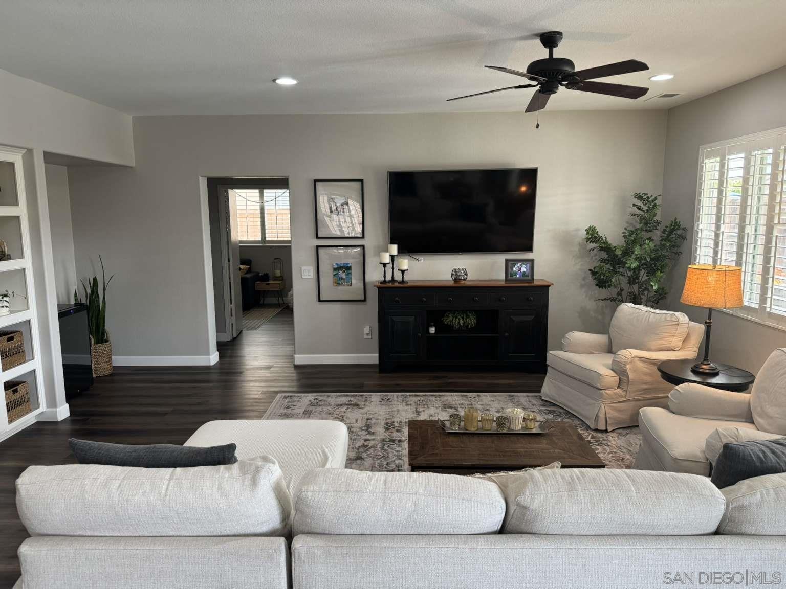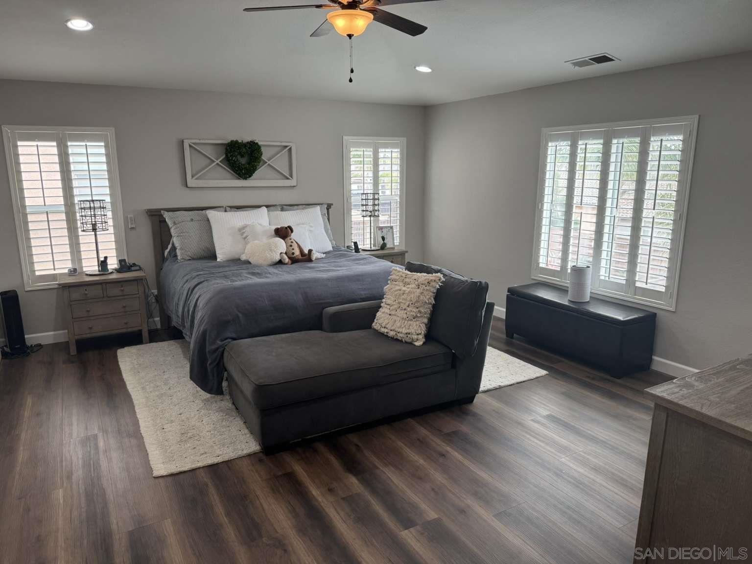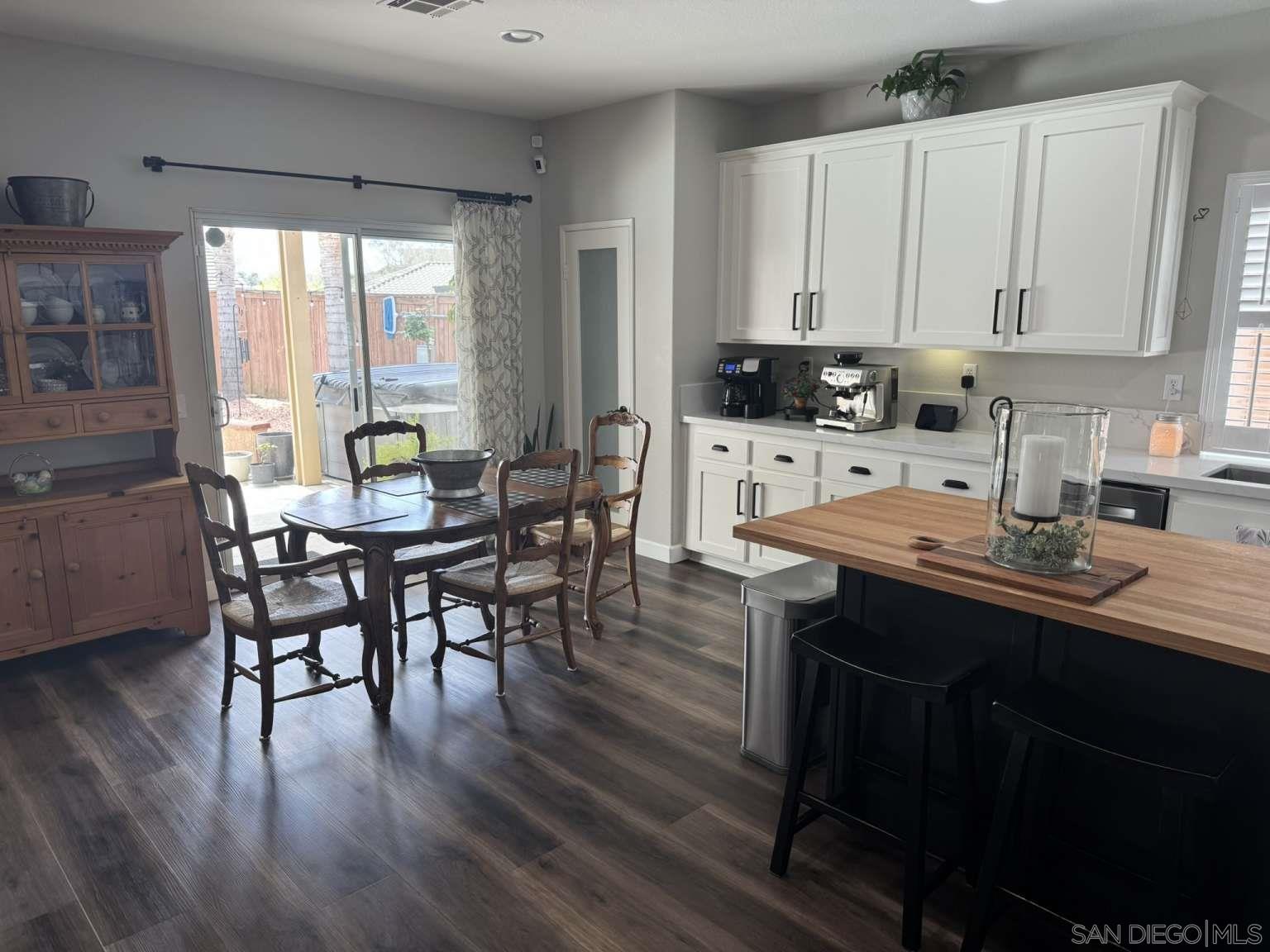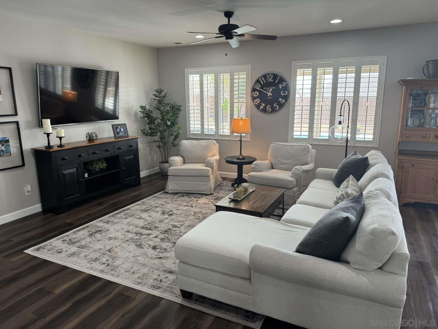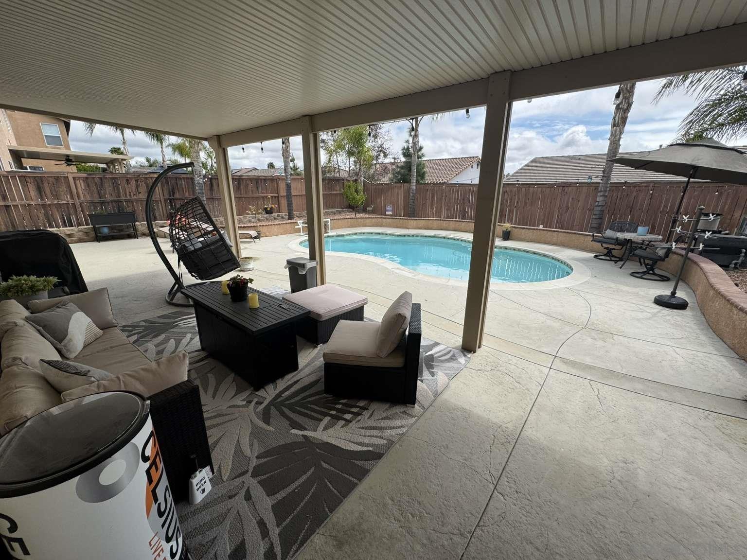 The heart of the home features a spacious raw Boos Butcher Block, perfect for meal prep or entertaining. Brand new quartz countertops provide an elegant touch, while the upgraded 5-burner gas stove with cast iron grates elevates your cooking experience. Enjoy convenience with a dual oven system that includes an air fryer, proofer, and Wi-Fi connection for remote operation, making mealtime a breeze. A timeless look with high-quality shaker-style cabinets and ample storage throughout. Premium Bosch dishwasher ensures efficiency, and the brand-new microwave provides convenience. A large pantry with stylish smoked glass doors offers both functionality and a sleek look. Enjoy laminate flooring throughout the home, paired with elegant 4 3/4" baseboards. Thoughtfully designed custom built-ins in the living room provide both style and storage. Elegant shutters throughout. The 2 master walk-in closets include custom built-ins and a convenient hamper. The entire home has been freshly painted, and ceiling fans are installed throughout for optimal comfort. Enjoy the Southern California weather under the patio cover or take a dip in the pool and unwind in the jacuzzi. The home comes equipped with solar panels and 2 Tesla Powerwall whole house batteries, ensuring you have reliable electrical backup for peace of mind. Situated in the highly sought-after Vista Murrieta High School zoned. This meticulously updated home blends modern features with timeless style perfect for anyone!Interested in this Listing?