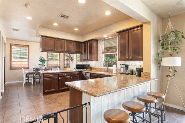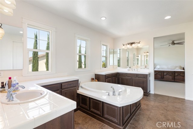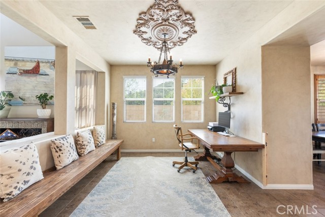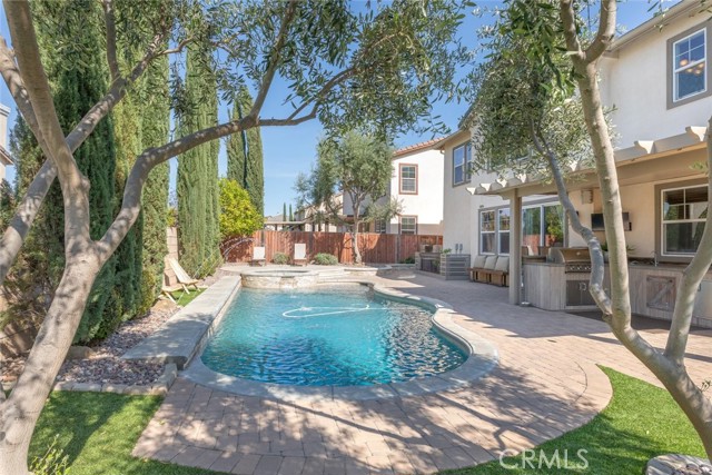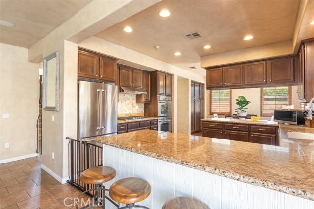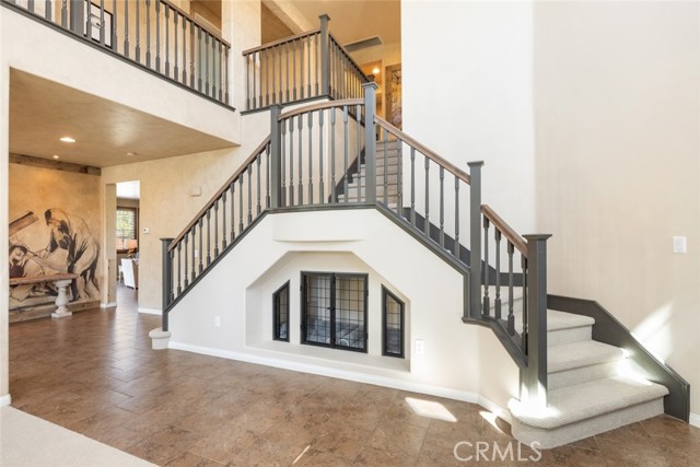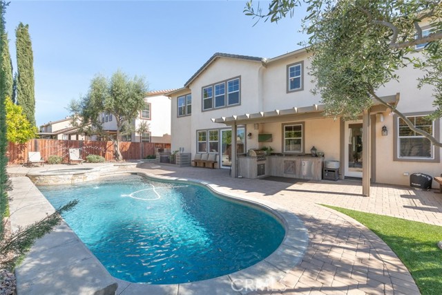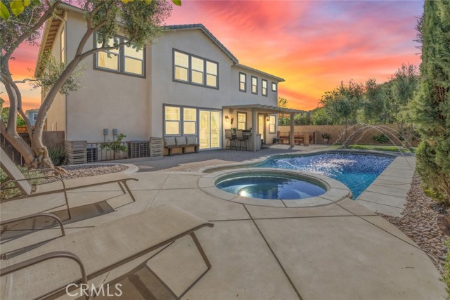 Seller is motivated!! Step into timeless elegance with this Old World-inspired masterpiece that exudes luxury from the moment you arrive. Situated on a coveted corner lot in a charming cul-de-sac, this 5-bedroom,3.5-bath home blends rich architectural character with modern functionality for a truly elevated living experience. An extended front patio welcomes you into soaring two-story ceilings and an abundance of natural light that pours through expansive windows, casting a warm glow across the Old World finished walls, detailed gallery hall overlook, and elegant tile flooring.Brand new (2024) LifeProof carpeting enhances the grand living room and continues upstairs, offering both comfort and durability. Downstairs, the oversized bedroom offers a private retreat with luxury vinyl plank flooring and a spacious walk-in closet perfect as a guest suite or a grand office. Tucked beneath the split staircase, a built-in dog crate doubles as a clever storage nook. Throughout the home, you ll find luxury paint, textured wall plaster, custom wainscoting, and detailed window casings that elevate every corner. At the heart of the home lies a beautifully designed kitchen and great room, perfectly positioned between the dining room and family room for seamless entertaining. Granite countertops, a custom backsplash, 6-burner gas cooktop, double oven, and ample cabinetry make this kitchen a dream for any chef all overlooking a backyard oasis. The family room features a built-in entertainment center, surround sound, and a gas fireplace with a custom mantle. Upstairs, boasts overly generously sized bedrooms including one with its own ensuite ideal for guests. A gallery hall overlook offers space for reading or display, leading to the expansive primary suite with plantation shutters, dual walk-in closets, an oversized shower, soaking tub, and dual vanities. The laundry room includes abundant storage and a utility sink. Outside is your private resort-style backyard, complete with a gated concrete dog run, AstroTurf for low-maintenance greenery, paver hardscape, built-in BBQ, Alumawood patio cover, and a sparkling pool/spa with a tranquil fountain features. Additional highlights include: 3-car tandem garage with epoxy flooring and overhead storage, dual AC units, and a QuietCool whole house fan. Located in a highly desirable neighborhood with quick access to I-215 or Hwy 79, top-rated schools, shopping, dining, and hospitals... Mauroux delivers the full lifestyle experience!Interested in this Listing?