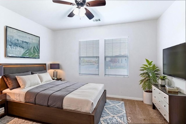 This beautiful single-story home in Mahogany Hills offers 4 bedrooms, 3 bathrooms, and 2,894 Sqft of well-designed living space. Situated near the community park, it boasts impressive curb appeal with drought-tolerant landscaping, artificial turf, and a custom concrete entrance. The open-concept floor plan is perfect for modern living, with the kitchen seamlessly flowing into the dining and living areas. The kitchen features granite countertops, stainless steel appliances, and a spacious pantry. The living room is bright and inviting, offering plenty of space for relaxation and entertaining. The primary suite is a true retreat with ample room, while the custom built-in closet provides organized storage. The en-suite master bath offers dual sinks, a soaking tub, and a separate shower. A bonus is the secondary suite, complete with an attached full bath perfect for guests, extended family, or as a private office space. The home also includes a roomy laundry room and a tandem 3 car garage. With low HOA fees and great community amenities, this is a must see. Don t miss out schedule your private showing today! Virtually staged to maximize the ideas of this beautiful blank canvas. Unlimited opportunities to stylish living.Interested in this Listing?