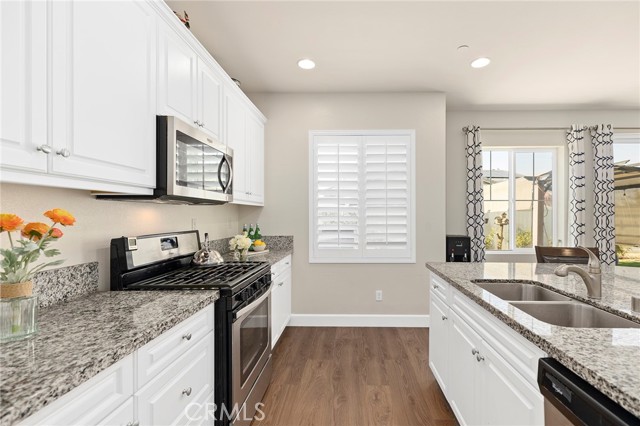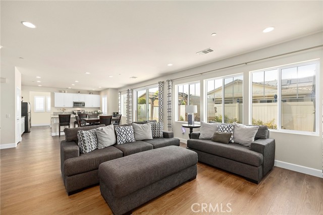 Welcome to the very best of both worlds in one of Murrieta s most sought after locations in Mahogany Hills, where you can enjoy peaceful living in a beautiful modern community and live just a few minutes away from shopping, entertainment and walking distance to several parks! There is also a walking trail located a stone s throw away from this home. This rare floor plan has thousands in upgrades and the most beautiful curb appeal with a custom front porch with two sitting areas and is also low maintenance with artificial turf and a drip system. This home features 5 bedrooms, a loft, 4 full bathrooms, plus a separate office! As you enter the home, you will notice beautiful wide planked LVP flooring, upgraded plantation shutters, and designer touches throughout. The formal living room is combined with a spacious dining room that leads you into the family room with a cozy fireplace and opens up to the heart of the home where a chef s kitchen features an eating area, large pantry, huge island with granite counters and stainless steel appliances. There is also a downstairs bedroom along with a full bathroom and also a separate office area that can function as an office/tech area/playroom. Upstairs features an expansive bedroom suite with two closets, a custom barn door that leads to a bathroom with dual sinks, vanity space, shower and separate bathtub. The upstairs loft is spacious and separates the other rooms, another bedroom suite with private full bath and two additional bedrooms share another additional bathroom. The backyard is complete, private and peaceful with a gazebo for those warm summer days and is very low maintenance with a drip system and several trees (Jasmin, lemon, orange and lime!). Other features include separate upstairs laundry room, a widened driveway, new vinyl fencing , attached 3 car tandem garage with built ins for extra storage & plenty of space to park a large SUV/pick up truck.Interested in this Listing?