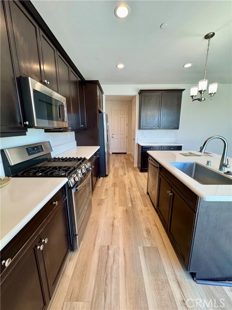 Wow, look at this Gorgeous Spencer's Crossing home with beautiful new Luxury Vinyl Plank flooring and paint downstairs and large backyard. Perfect for all your needs! It's a must see!!! You're right near the 215 to travel and near the best Schools! No other HOA community compares with only 99 starts in June! Welcome to this lovely family home, nestled in the highly desirable and family-friendly Spencer's Crossing community. Perfect for relaxation and entertainment. This community features amazing pools, spas/hot tub, fire pits, barbecues, outdoor cooking areas, picnic areas, playgrounds, sport courts and dog parks everything you need to enjoy the California lifestyle to the fullest. Entering this lovely home, you ll be greeted by 10-foot ceilings and an inviting open floor plan with new LVP flooring and paint downstairs, and a first floor full bath and a bedroom, ideal for guests or family. The separate formal dining room sets the stage for memorable meals, while the beautiful kitchen is a chef's dream with its large island, dark brown cabinets, and spacious pantry, perfect for all your culinary needs. There is an oversize slider off the kitchen that opens up to the newly finished backyard with concrete and artificial turf, creating an ideal space for entertaining, relaxation, or enjoying quiet moments with family. The finished garage offers not just parking but also potential for a creative workshop or additional storage. Upstairs, you ll find a large loft area that provides flexible space for your needs. The master suite boasts a dual vanity in the bathroom, a huge master closet, and ample space to unwind. Plus, the upstairs laundry room adds convenience for busy families. There are so many bonuses to this home, including solar. Designed with style and functionality in mind, this is the perfect place to call home. Don t miss the chance to experience all that this stunning property and the Spencers Crossing community have to offer! Near Great Schools and an amazing community, easy access to freeway, you dont want to miss it,. Schedule a tour today and make this dream home yours!Interested in this Listing?