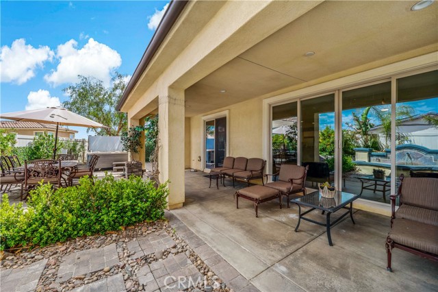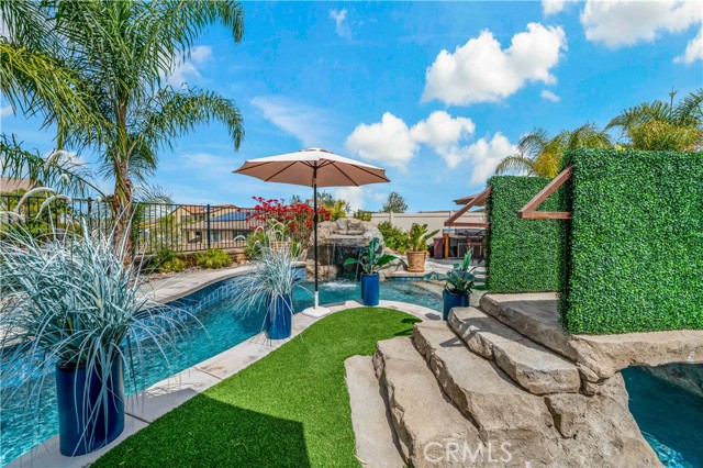 Welcome to your dream retreat in the heart of Murrieta's premier Spencer's Crossing Community! This luxurious single-story sanctuary boasts an impressive 3,462 sq. ft. of modern elegance. Step into a backyard that s pure magic a tropical paradise complete w/ a lazy river - where relaxation flows as effortlessly as the water. Backing to a picturesque paseo, offering the privacy you want. Step through the stunning gated courtyard and private entrance and enjoy all the wrought iron features that allow natural light to flood into the grand entrance. Greeted by elegant Travertine flooring, this thoughtfully designed floor plan features 4 spacious bedrooms and 3 bathrooms, providing ample space for family and guests. The gourmet kitchen is a chef's dream, complete w/ stainless-steel appliances, white cabinetry, an oversized island, and a walk-in pantry. It seamlessly flows into the open-concept living and dining areas, making it an entertainer's paradise. Enjoy 2 sliding glass doors that lead to the backyard retreat. The primary suite is a private retreat, showcasing a spa-like ensuite bathroom w/ dual vanities, a walk-in custom tile shower, dual showerheads, and two generous walk-in closets The secondary bedrooms are equally impressive, located away from the primary, offering comfort and versatility to meet your needs. Two of the bedrooms share a Jack and Jill bathroom and across the entry hall is another great bedroom, full bathroom and a Massive Laundry room with a sink and tons of storage space. Step outside into your own tropical oasis. The centerpiece of the backyard is the stunning lazy river pool, with jets to propel you into relaxation mode. Swim over into your grotto and enjoy a soothing, cascading waterfall. Step over the bridge and catch some sunrays on the island or step into the in ground spa. You are surrounded by lush tropical landscaping that creates a resort-like ambiance. This outdoor space is perfect for unwinding after a long day or hosting gatherings. Additional features include outdoor kitchen featuring BBQ and smoker grill with outdoor refrigerator. A covered California Room that runs the entire length of the back of the home, and an above ground jacuzzi, a serene fountain and plenty of room for outdoor dining and lounging. Conveniently located near major freeways, this home offers easy access to shopping, dining, and entertainment options, including the charming Old Town Temecula and the renowned Temecula Wine Country.Interested in this Listing?