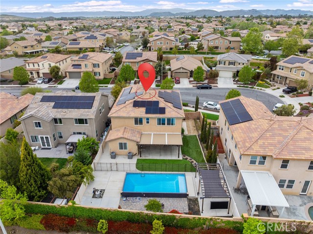 Welcome to your dream home in the heart of Murrieta, California! This impressive 2-story residence offers 3,187 square feet of luxurious living space, perfectly situated on a spacious lot in a serene cul-de-sac. With 5 bedrooms and 3 bathrooms, this home is designed to meet all your family's needs. Step inside and be captivated by the expansive floor plan that features a bright and airy atmosphere with recessed lighting, ceiling fans through out, huge kitchen with plenty of cabinets, granite countertops and backsplash, walk-in pantry, stainless steel appliances, and double ovens. Entertain in style in the inviting living areas or step outside to the sparkling swimming pool, perfect for those warm sunny days and memorable poolside parties. Retreat to the master bedroom suite, a private oasis featuring ample space and comfort, ensuring a peaceful sanctuary at the end of the day. The huge loft area offers versatility, whether as a game room, home office, or additional entertainment space. This remarkable property also comes equipped with 44 solar panels and Tesla batteries(power purchase agreement), providing energy efficiency and cost savings for years to come. Enjoy the added benefit of a water softener system, enhancing your daily living experience. Located within the highly acclaimed Temecula school district, this home is also close to shopping, dining, outdoor recreational activities, and just minutes away from award-winning wineries making it an ideal family-friendly neighborhood. Don't miss your chance to own this stunning property! Schedule your private showing today and make this Murrieta gem your new home sweet home!Interested in this Listing?