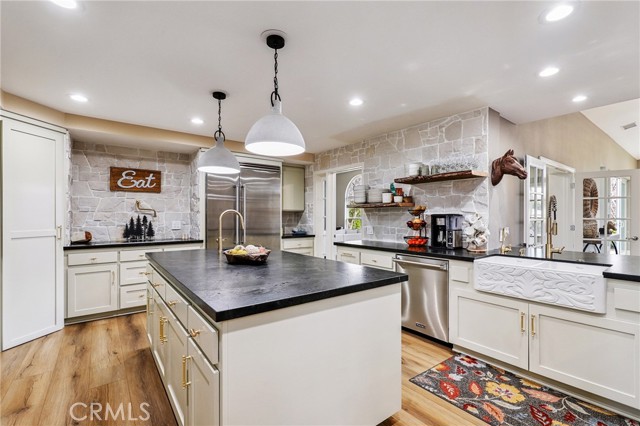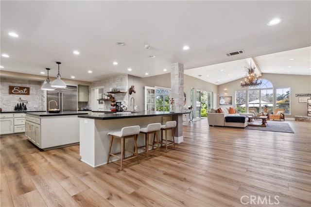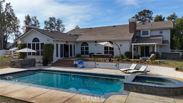 Welcome Home to this expansive casual country estate. The home's interior has been tastefully remodeled and sits on a park like, serene, flat/usable 5 acres. It is perfect for horse enthusiasts. There are 4 expansive paddocks/stalls, a tack room, large arena to accommodate any discipline, a round pen and washing station. There is access from the property to 30 miles of riding trails within La Cresta and the Santa Rosa Plateau. On City water but includes a well for irrigation. The house includes 2 large Primary suites with well appointed ensuite bathrooms. There are 3 full bathrooms, 1 half guest bath. 3 wood burning fireplaces. The kitchen opens to the great room and has been updated with stone backsplash, stone counters, new soft close cabinets and features a large island and ample counter space. The backyard has a large grass area, lemon, orange and grapefruit orchard, and sparkling salt water pool and built in BBQ. The perfect entertainment house. All of this and to top it off - Paid off Solar and a Tesla charging station.Interested in this Listing?