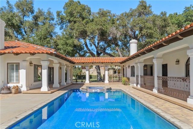 Huge price reduction,,, Nestled among the majestic oak trees, this extraordinary property presents a rare opportunity to own not one but two homes on a picturesque one-acre lot. This estates exterior is characterized by its classic Santa Barbara architecture whos design is a masterclass in understated elegance. The homes one acre property is a tranquil oasis with massive ancient oaks, a sprawling patio with pool, spa and seated fire pit. The interior is timeless with optimum entertaining opportunity enhanced in the great room by large built-in cabinets, open beam ceilings, with wood casings, trim and wood flooring. A fireplace and beautiful arched windows with built in window seats enhance this setting. The formal dining room features glass built in cabinetry. This stunning kitchen is a true masterpiece of design and functionality providing the perfect blend of style, elegance and performance. A chefs dream! There are two bedrooms in the main house (with potential for three bedrooms), a private primary bedroom including fireplace, two large walk- in closets and gorgeous bathroom. A private office offers beautiful built-in cabinets. The guest house offers a living room with fireplace, game room and two bedrooms with kitchenette with access to the pool and spa. A rare oversized four car garage with tons of cabinets and work bench are accessed from the breezeway to the expansive laundry room complete with spacious cabinetry and hobby station.Interested in this Listing?