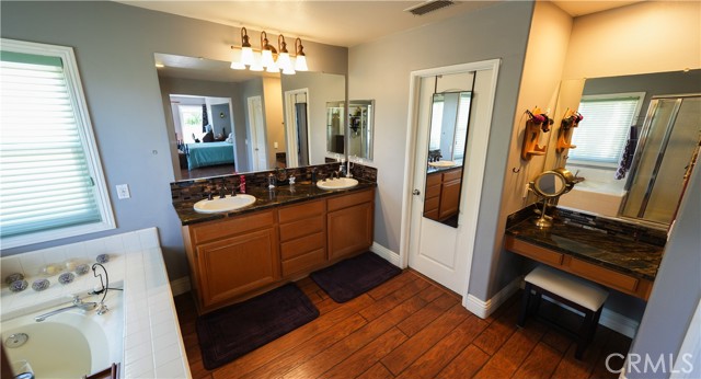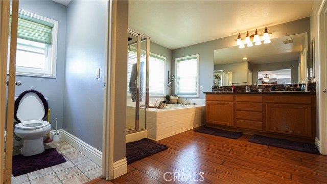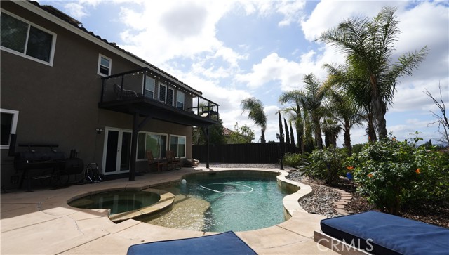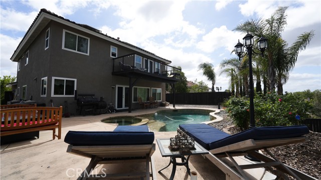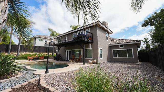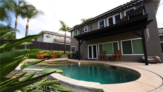LOCATION, LOCATION, LOCATION! Move-in ready beautiful Barratt Home located in the prestige neighborhood of Murrieta. This 5-bedroom, 3 bath elegant home has been thoughtfully updated through the years, including the remodeled gourmet kitchen, flooring and solar panels, which are paid off. Upstairs, you ll find the best view in the city, from both the spacious primary bedroom and private balcony, high ceilings and abundant natural light. Property features an open kitchen floor plan with center island, walk in pantry, wine cooler, granite, special cabinetry lighting. French double door leading to the tropical looking back yard, fully landscaped, heated custom pebble tech pool with spa. Enjoy the fire place located in the large dining room, leading to the family room. Dramatic staircase leading to the extra large bedrooms on the 2nd floor (including 2 twin suite bedrooms). Master Bedroom delights with its own fireplace and private balcony with Trex-composite decking, walk-in closets ( his & hers), luxury bathroom. Laundry room strategically located. All new windows (Anlin-double strength-Low-E) . Double front entry door -Therma-Tru. Newer 5 ton furnace. 2024 tile plank flooring. Redwood stained fence. 2021 Electrical panel. PEX plumbing re-piped. Two separate thermostats (one upstairs / one downstairs). Exterior outlets. Too many amenities to mention !! One of its kind with over 3,200 square feet of living space.!! This can be your next home and this beauty will not last!!Interested in this Listing?