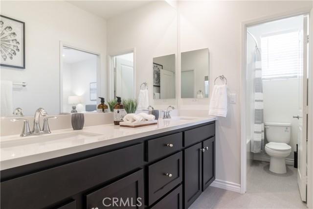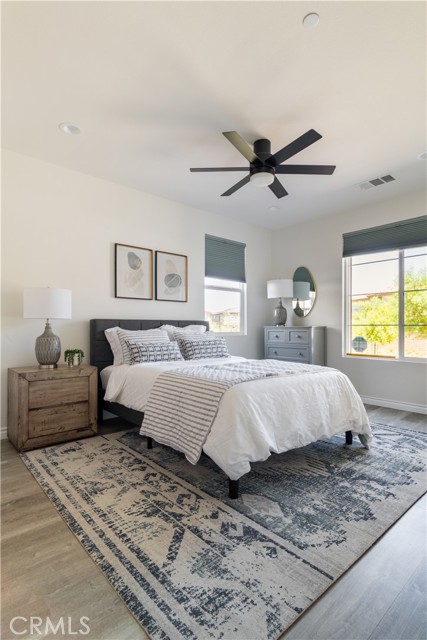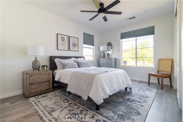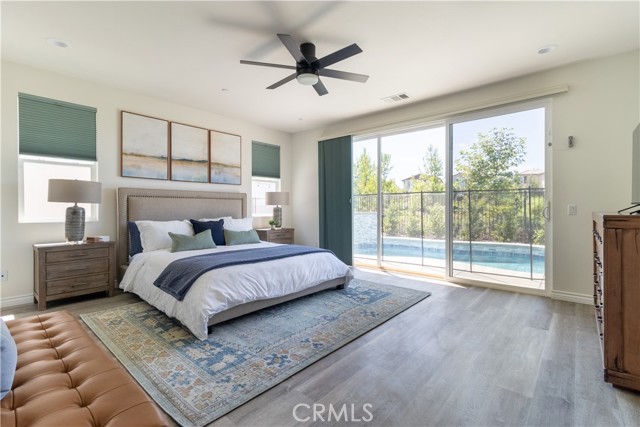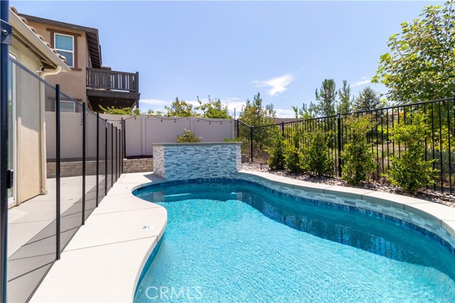 WELCOME TO THIS GORGEOUS CONTEMPORARY HOME! 4 bedrooms, 3 bathrooms, FULLY FURNISHED with a POOL & VIEW!! This home can easily function like a single-story with the primary suite and extra oversized guest bedroom on the main level. The primary suite features an expansive dual sink bathroom with luxurious tub & spacious walk-in closet. The chef's kitchen has high-end cabinetry, upgraded appliances, quartz countertops, chrome finishes, and custom backsplash! The natural light-filled home features many upgrades including built-in surround sound in the great room, high-speed internet and exterior security cameras, recessed lighting, ceiling fans in all bedrooms and loft, custom shutters and Hunter Douglas window treatments, plus Luxury Vinyl Plank flooring. A dedicated landry room with sink features an LG washer & dryer. Enjoy sweeping city views from the loft and backyard. Community amenities include 5 acres of private parks and over 100 acres of surrounding open space with multiple trails for biking & walking. Close to shopping, dining, Wine Country, the Promenade Mall, Old Town Temecula, hospitals, and 15 & 215 Freeways. Located on a prime view lot with panoramic views and no rear neighbors!! Backyard comes with patio furniture, dining table, corn hole, outdoor seating and cafe lights. Pool has 5 foot fencing for safety. Assitionally, both sliding doors are equipped with safety alarms.Interested in this Listing?