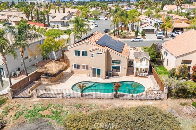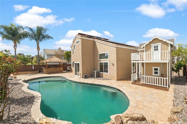 THIS HOME HAS GOT IT ALL. Perfect for relaxation and entertaining. The combination of a spacious interior with a backyard oasis is sure to impress. Here s a summary of the home s key highlights: Property Overview: 5 Bedrooms, 3 Bathrooms, 2,010 sq ft unfurnished home on a 7,405 sq ft lot. Direct Park Access: Enjoy Rancho Acacias Park just steps away with a baseball field, playground, walking trail, and frisbee golf. Interior Features: Living Spaces: Formal and informal living room areas. The informal living room with fireplace is open to the kitchen and has a slider that leads out to the pool area. The formal living room flows into the large dining area, which also overlooks the pool. Kitchen: Beautiful granite countertops, stainless steel appliances, soft-close drawers, ample cabinet space, and a kitchen island with a breakfast bar. Private Primary Ensuite Bedroom: Offers views of the incredible backyard and park, with huge walk-in closet, a full bath, and a commode closet. Backyard Oasis: Pool & Spa: Heated Pool with a waterfall, Baja shelf with umbrella holder, perfect for lounging. There s also a 7-seat above ground Spa with built-in blue-tooth speakers for ultimate relaxation. Outdoor Entertainment: Tiki bar with 5 burner BBQ, double tap kegerator with kegs, sink, fridge and ample storage. Also, a huge 2 story kids playhouse with built in AC. Low Maintenance Yard: The yard is designed to be easy to care for, so you can enjoy it without a lot of upkeep. And two generously producing lemon trees. Additional Features: Energy Efficiency: Solar panels for energy savings. Storage: An 8 x 12 Tuff Shed for extra space. Garage: 3-car garage with finished epoxy floors and direct access to the home. Laundry: Convenient laundry room with washer and dryer included. Climate Control: Central heat and air, plus a whole-house fan for quick cooling. RV parking potential 11.5 x 40 space. Security Alarm System + Cameras. Location: Close to the 15 and 215 freeways, near Award Winning Schools, Shopping, Dining, Walking Trails, Murrieta Hot Springs, Los Alamos Hills Sports Park, Pond Park, The Golf Club at Rancho California. A short drive to Old Town Temecula and Wineries. This property has everything: ample space, modern amenities, conveniently located and a fantastic backyard setup. Simply an amazing home!Interested in this Listing?