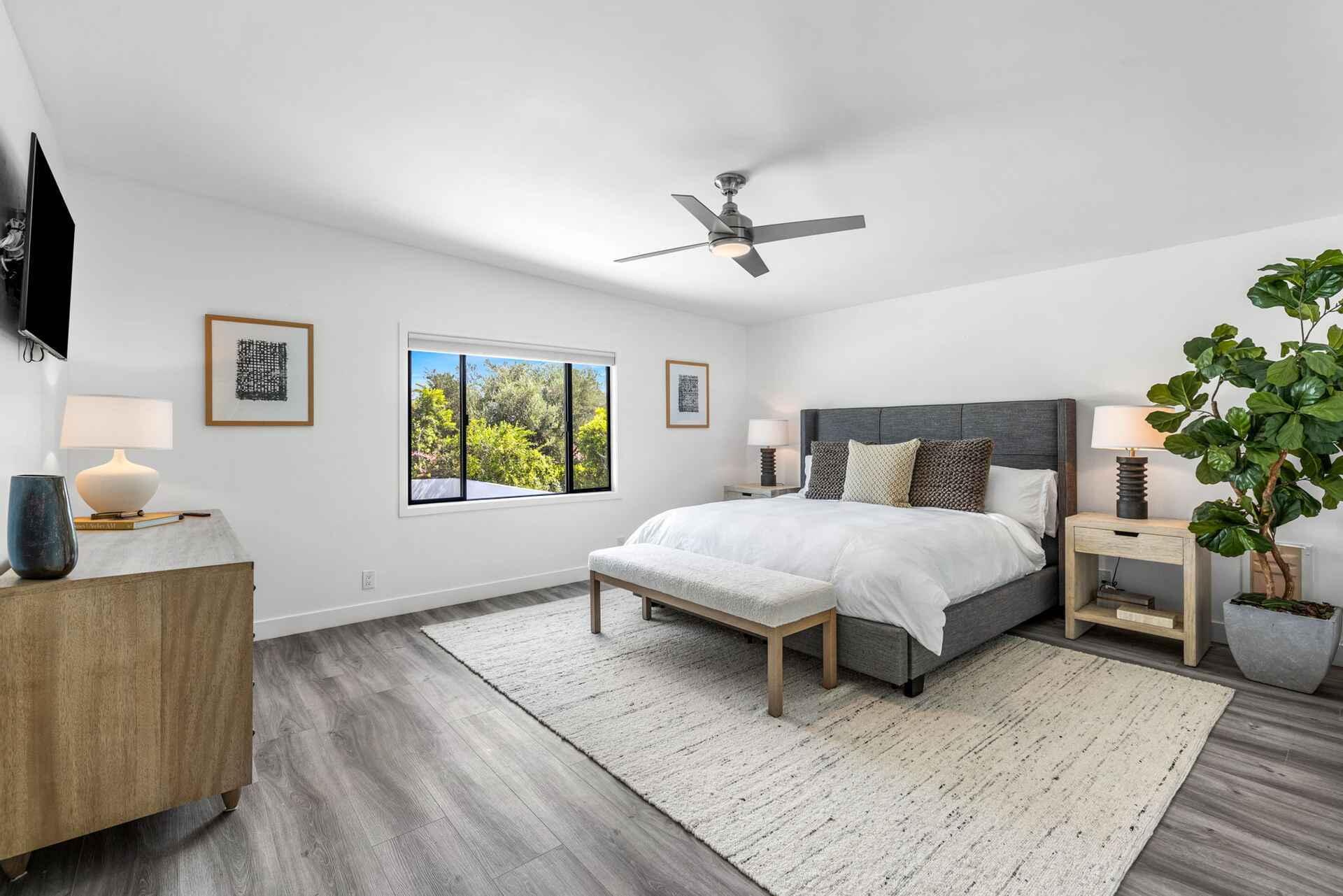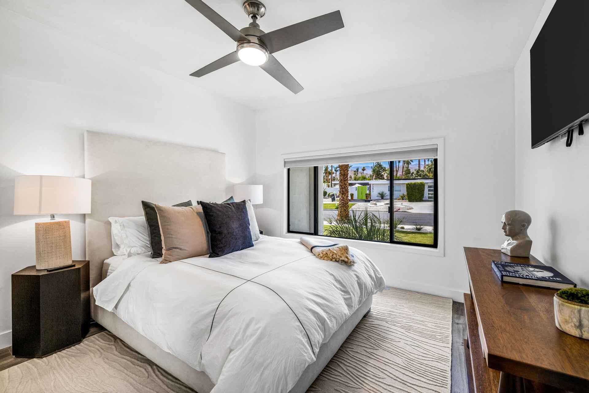 New co-ownership opportunity: Own one-eighth of this turnkey home, professionally managed by Pacaso. This fully renovated contemporary home offers magnificent views of the Santa Rosa Mountains, an inviting pool and spa, and a private casita. The open floor plan has a huge entertaining space and a kitchen with marble slab countertops and waterfall island, wine fridge and stainless steel appliances. The adjoining dining room has a built-in desk and opens to a covered patio.The spacious primary bedroom features an en suite bathroom with a striking tiled shower for two and a dual-sink vanity. The private casita offers a full kitchenette, a beautiful bedroom and bathroom, plus its own entrance and patio.The beautifully landscape home, set on a third-acre, has a backyard pool and custom fire pit. The home, close to El Paseo shopping and dining, and a golf cart ride away from Ironwood Country Club, comes fully furnished and professionally decorated.Interested in this Listing?
