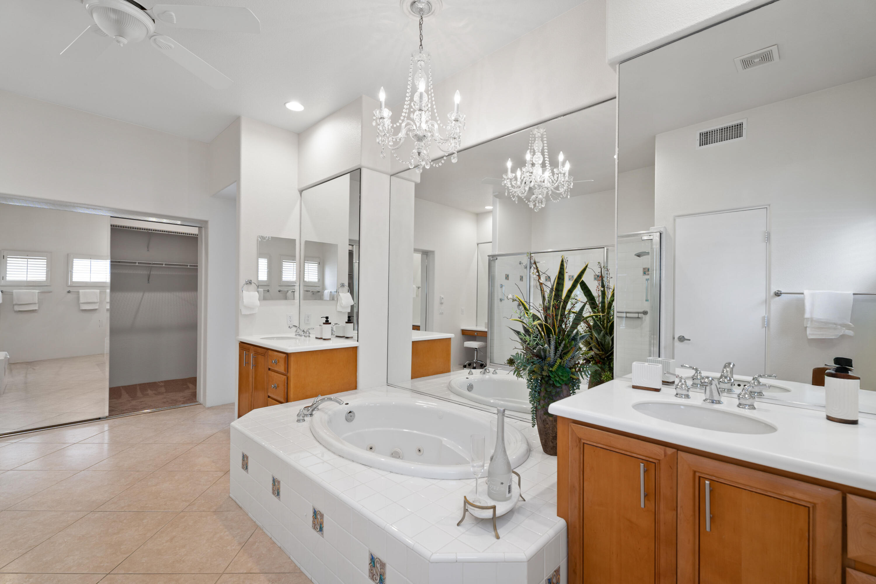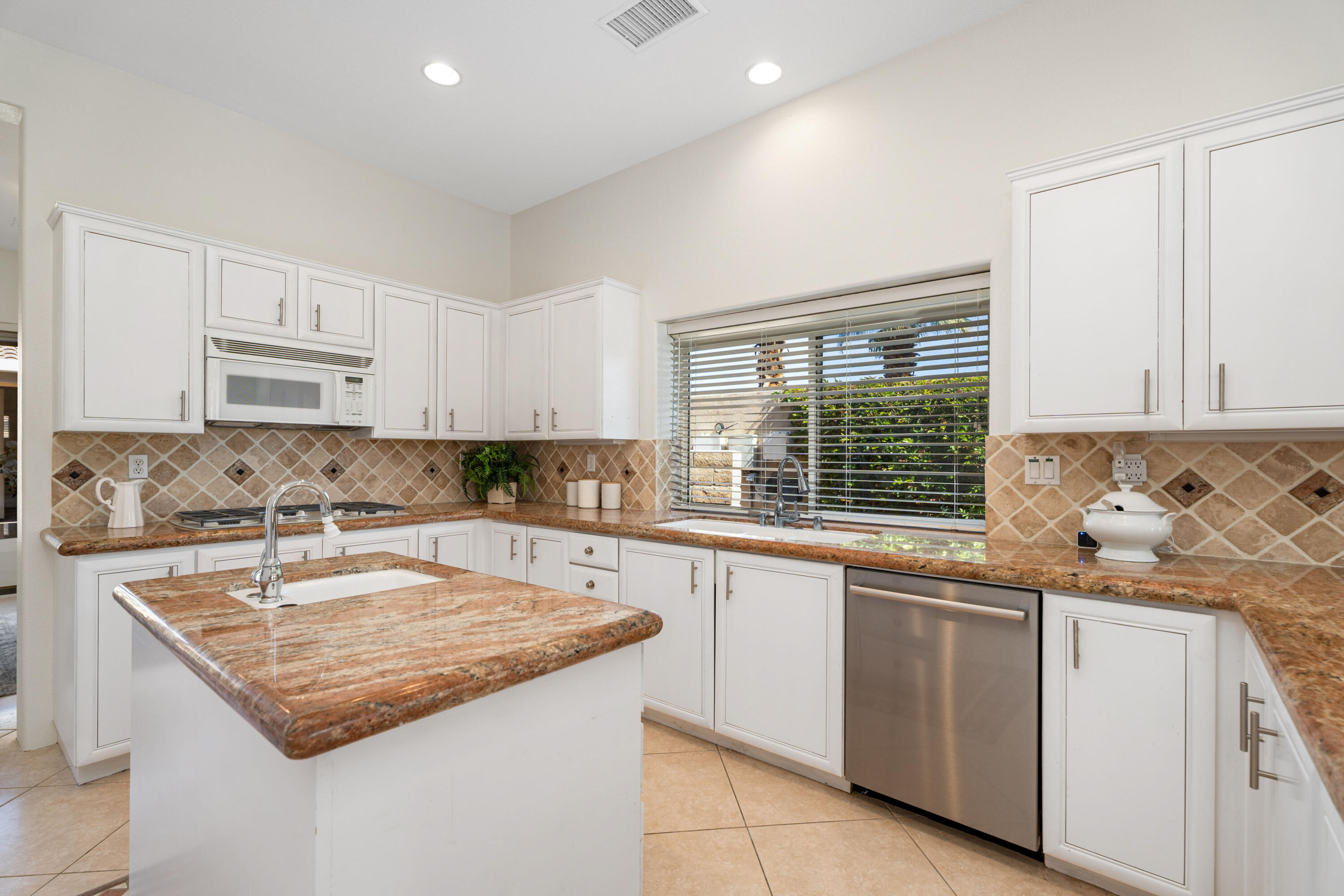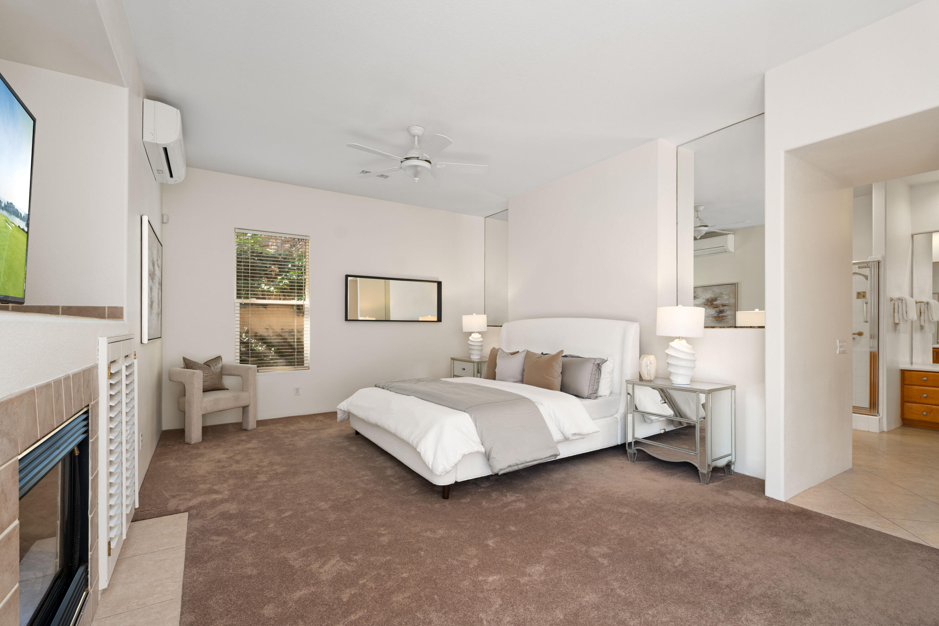 Indoor-outdoor living at its finest! This expanded Plan 4 Villa nestled in the exclusive gated Palmira community of Palm Desert offers ultimate privacy on a large corner lot. Designed for the relaxed Desert Lifestyle. From the private interior courtyard, there's a centerpiece Pebble Tec-style pool with waterfall, flanked by a covered entertainment area, and also a separate casita with its own bath--all framed by breathtaking Santa Rosa Mountain views. Once inside the home the extra high ceilings link the rooms with an open-concept style and easy transition from indoor to outdoor living. The kitchen boasts slab granite counters and a new Bosch dishwasher (2023). The expanded family room creates an airy, welcoming space. The 4th bedroom is an attached casita, while the 5th bedroom, currently used as a den/office, provides flexibility. Recent upgrades include a new HVAC system (Lennox 4 & 5 ton units, 6 years old, warranty remaining), Mitsubishi mini-split A/C in the primary bedroom, fresh interior paint (2025), new recessed lighting, repainted patios, a Wi-Fi-controlled garage door opener (2023), and an AquaLink pool system. Minutes from shopping, dining, golf, McCallum Theatre, and top-rated schools, this move-in ready oasis is an absolute must-see! Actual square footage of Family Room may be almost 300 SqFt larger than the 3401 SqFt shown as Seller had Builder build out the room by 5'; Buyer to verify square footage.Interested in this Listing?