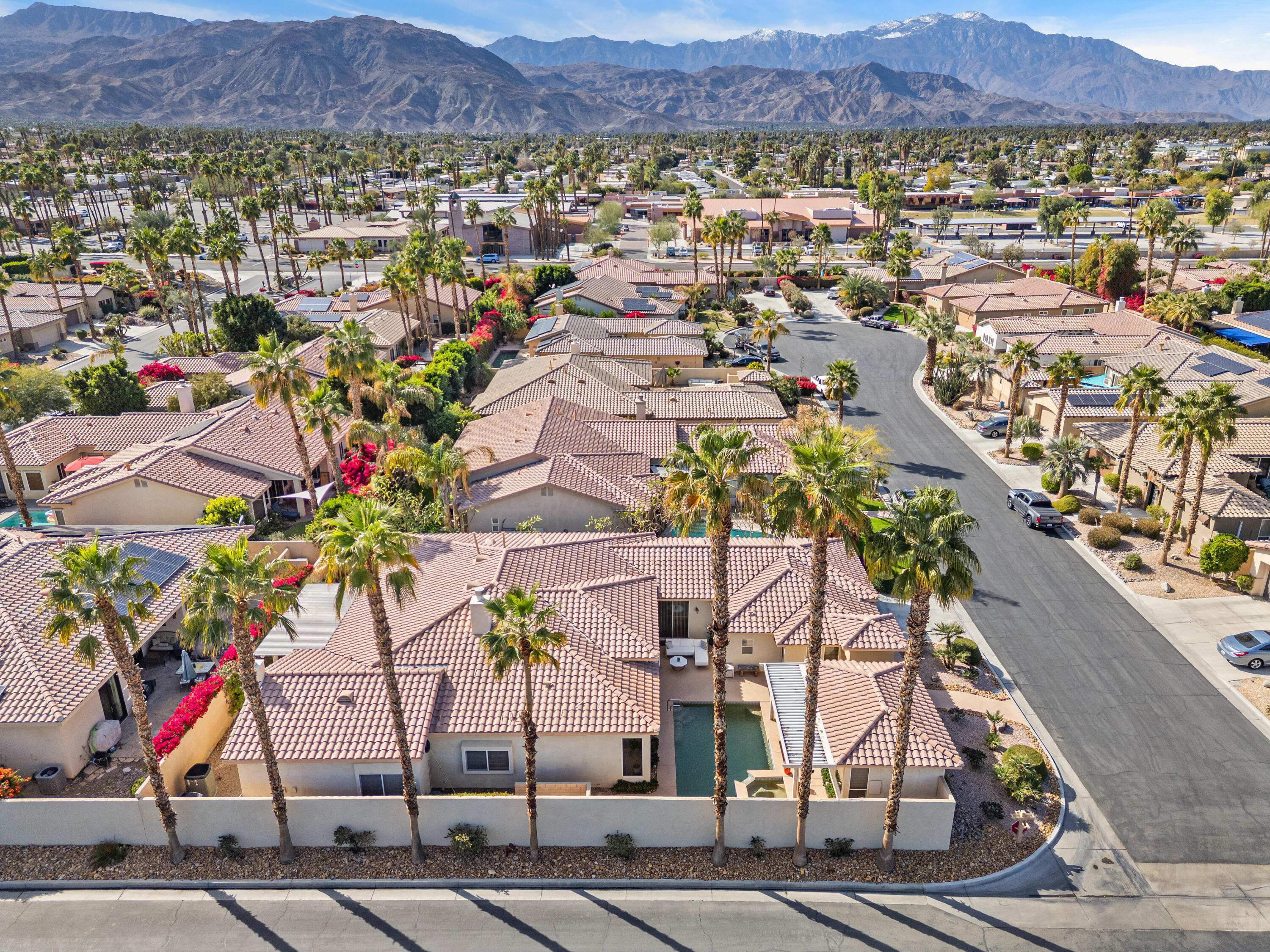 | Directions: | Head north on Deep Canyon from Fred Waring. First right at Palmira Gate. Once through the gate go to the end of the block and turn left. Home will be on the left corner of Via Cielo Azul. |