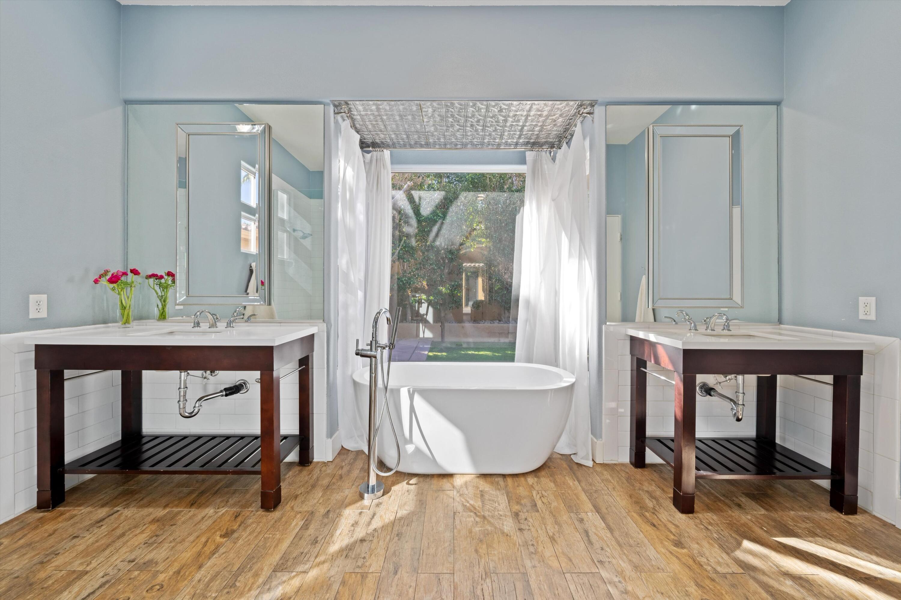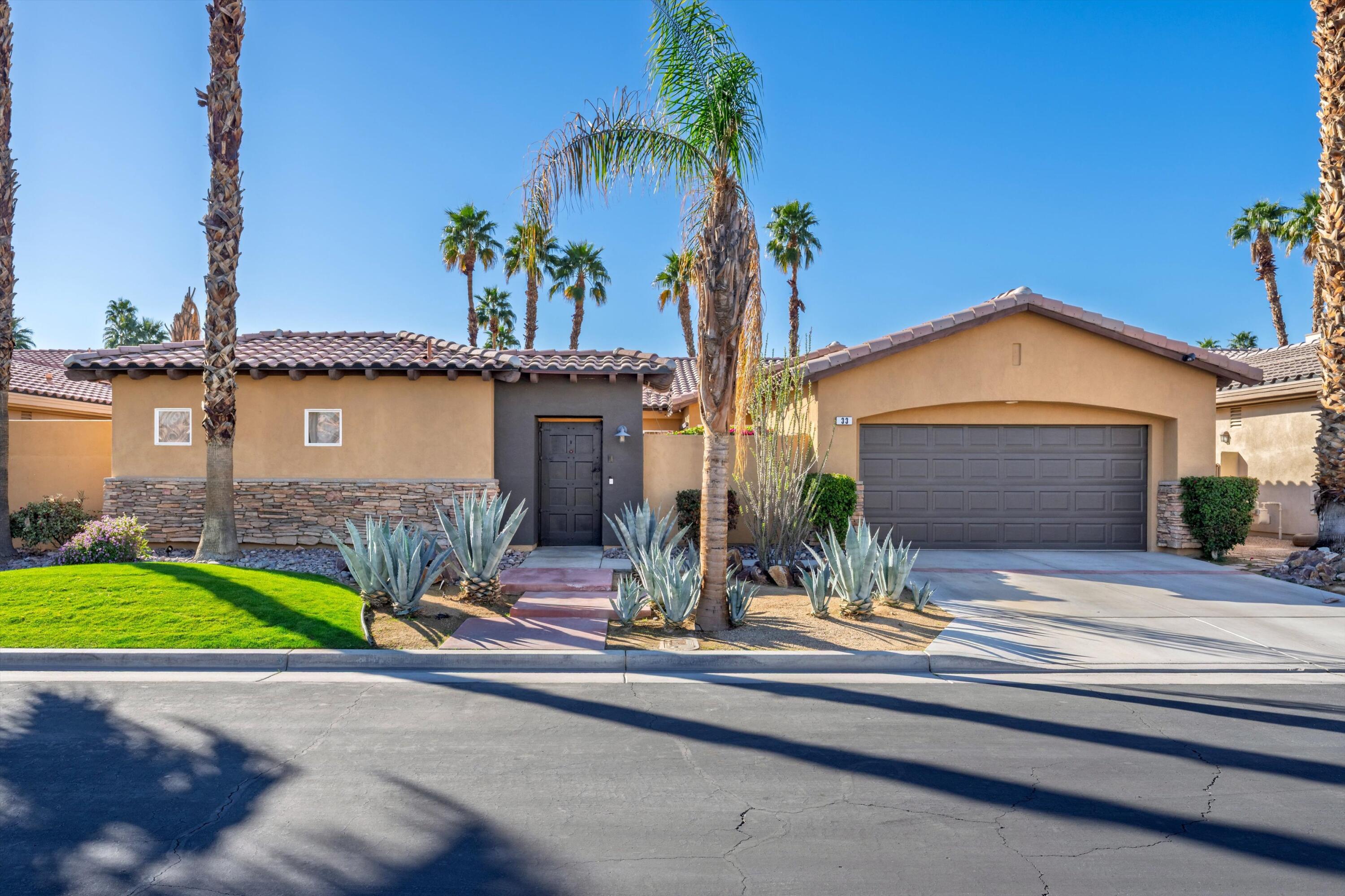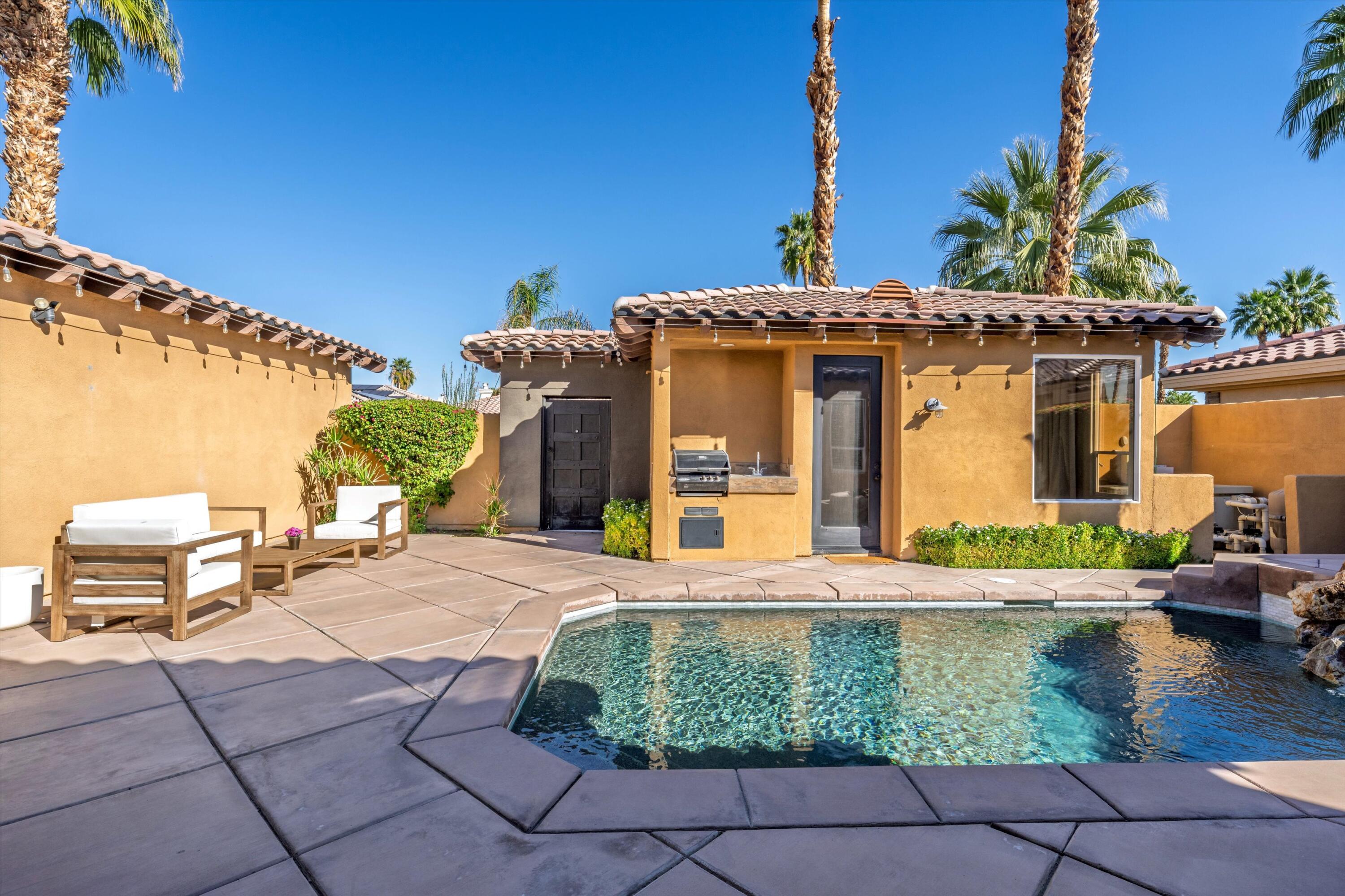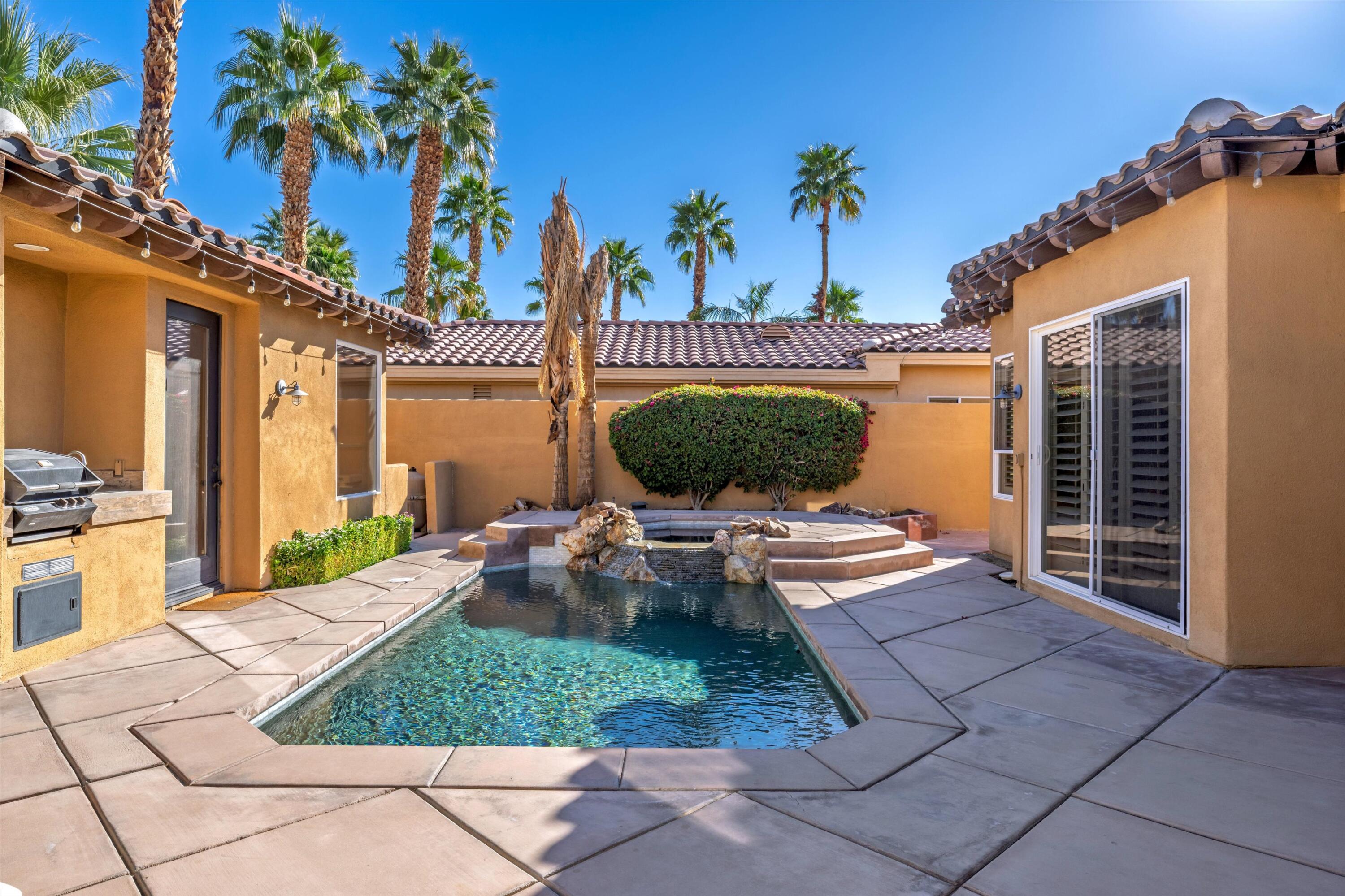 **OPEN HOUSE 10AM-12PM-May 24th-Nestled behind the gates of Palmira in the heart of Palm Desert, this exquisite residence offers the perfect blend of comfort, privacy, and desert living at its finest.This meticulously designed compound features 4 spacious bedrooms, including a detached private casita, and 3.5 baths. The home is centered around a large interior courtyard, complete with a Pebble Tec pool, raised spa, and built-in BBQ--ideal for both relaxation and entertaining.The open-concept design is flooded with natural light, highlighting soaring ceilings and expansive living areas that flow seamlessly for effortless functionality. The gourmet kitchen and adjoining family room are elegantly appointed, creating the perfect space for gatherings.The private primary suite offers a serene retreat with a walk-in shower and freestanding tub. The home is further enhanced by a large den/office/bonus room, providing versatile living options. Step outside to the backyard, where privacy and space for entertaining await, along with your own personal putting green. Energy-efficient upgrades include new solar panels installed in 2024 and two A/C units, ensuring comfort and sustainability year-round.This home truly embodies the best of desert living--an ideal sanctuary for those seeking style, privacy, and modern convenience. Just minutes away to El Paseo, shopping, fabulous dining, retail, golf courses and recreation. Low HOA fees.Interested in this Listing?